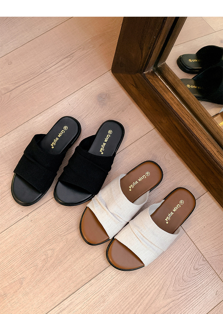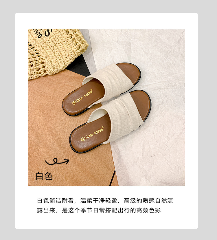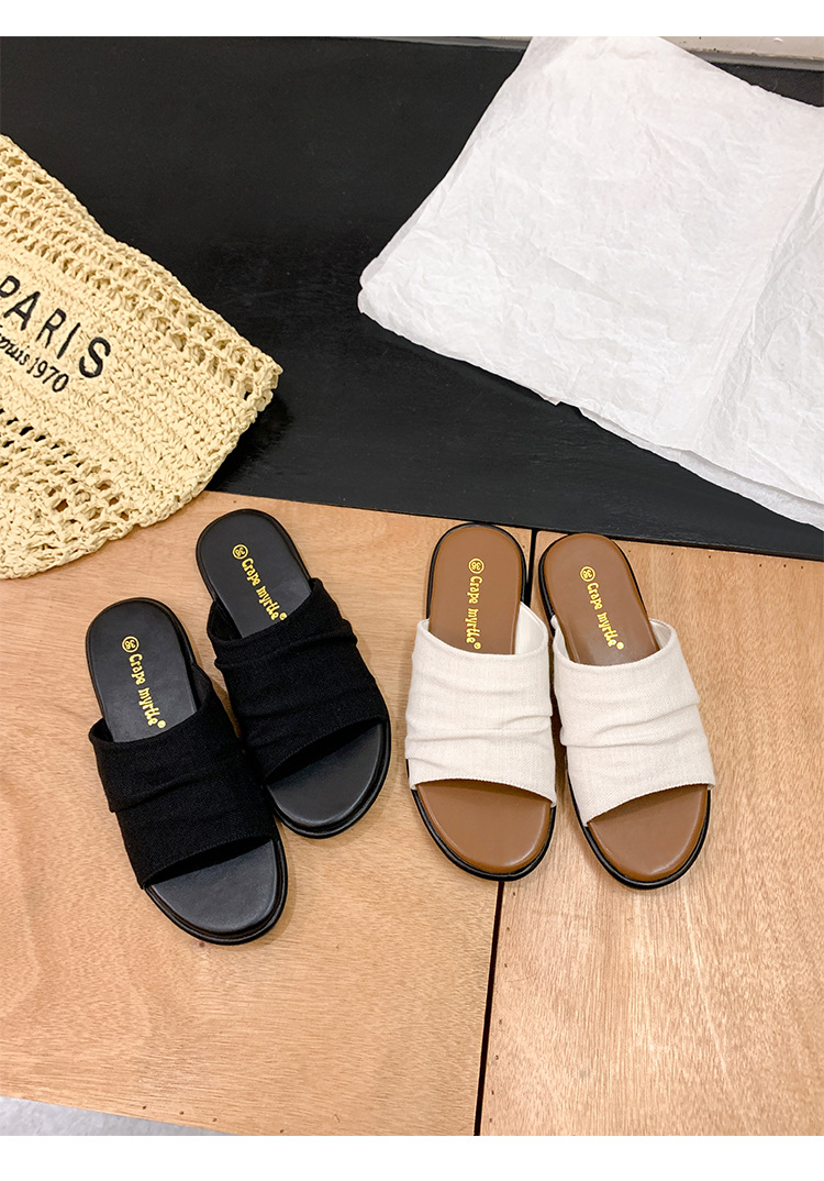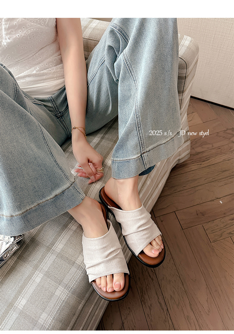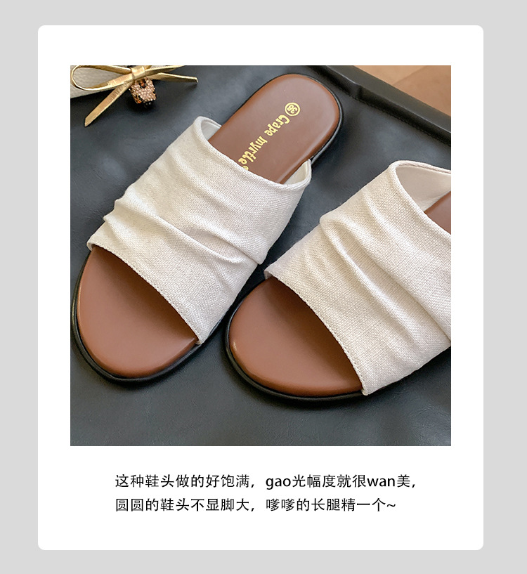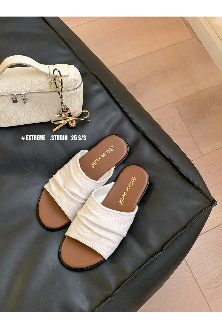 Su Yinyin mismo estilo en Bangkok ~ Sandalias planas plisadas de lino de playa estilo resort, zapatillas de mujer, verano