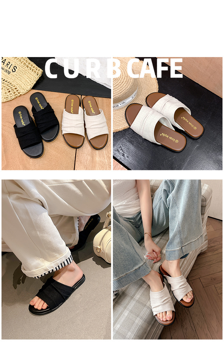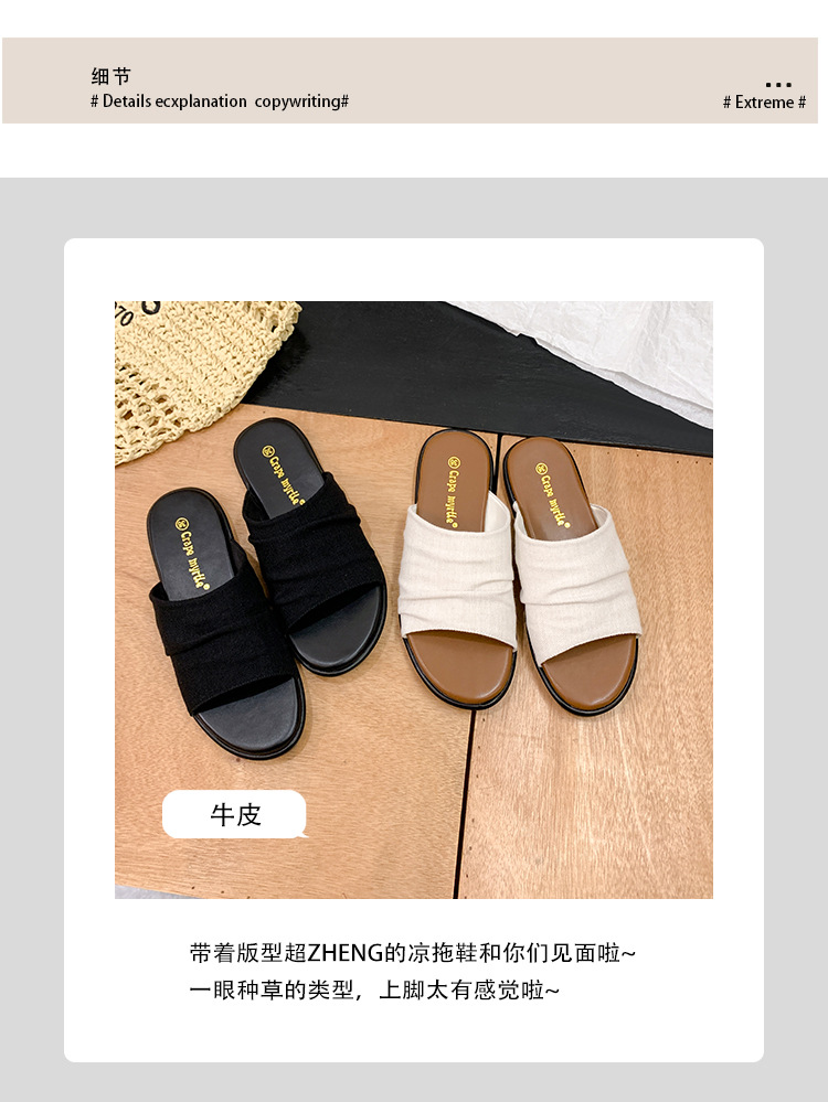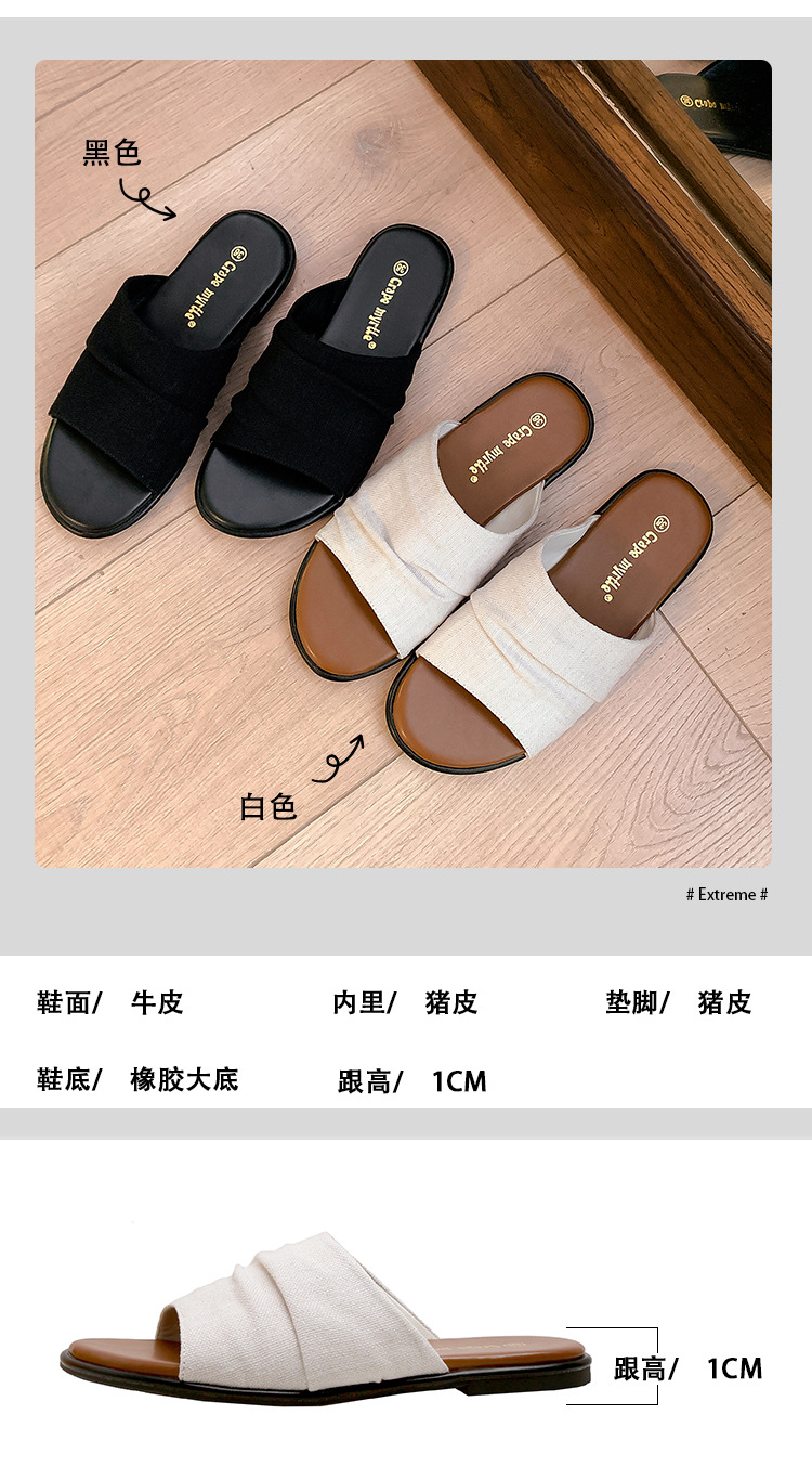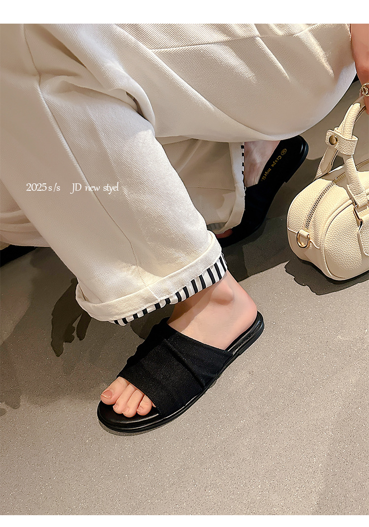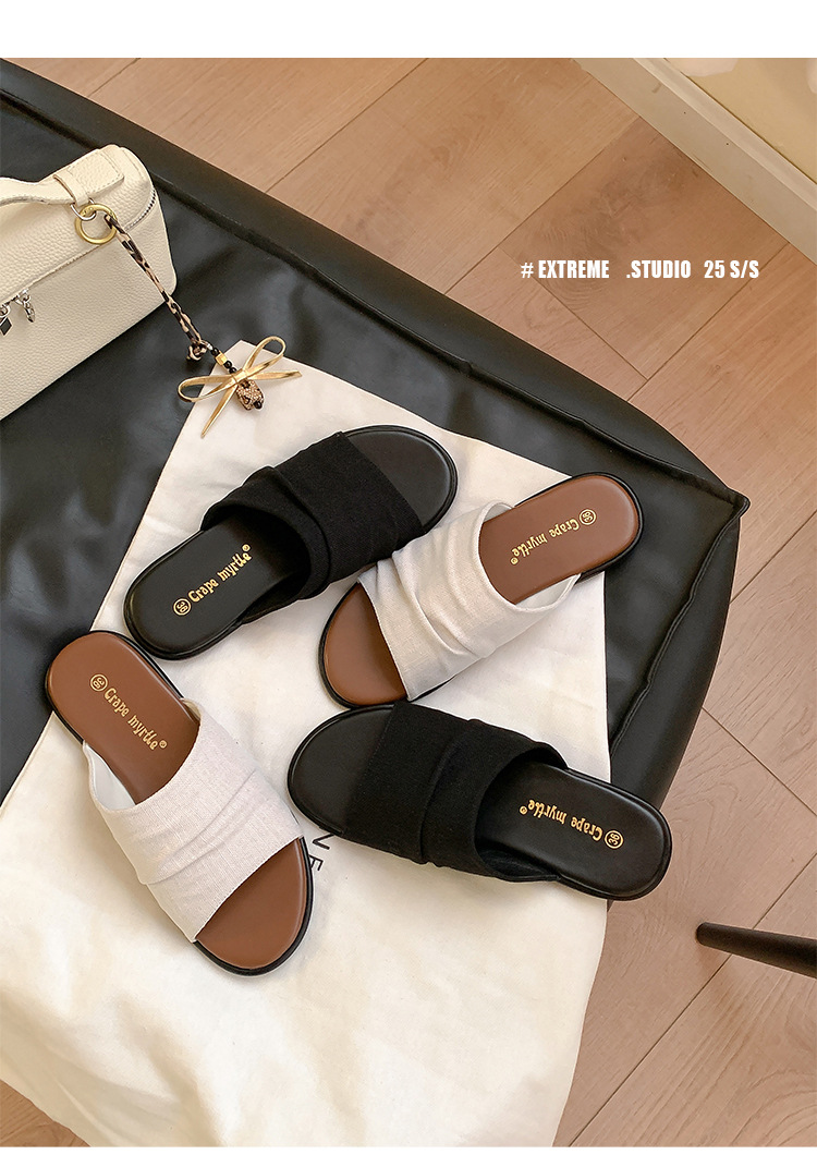 Su Yinyin mismo estilo en Bangkok ~ Sandalias planas plisadas de lino de playa estilo resort, zapatillas de mujer, verano