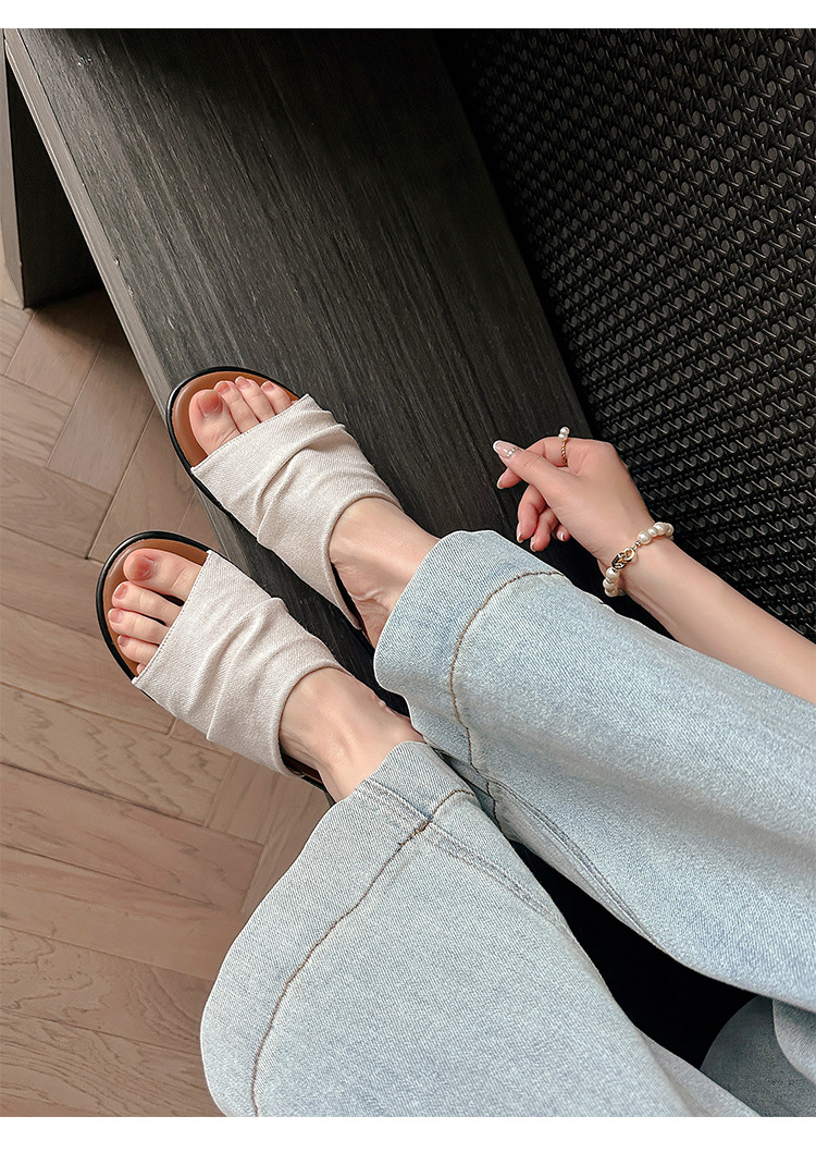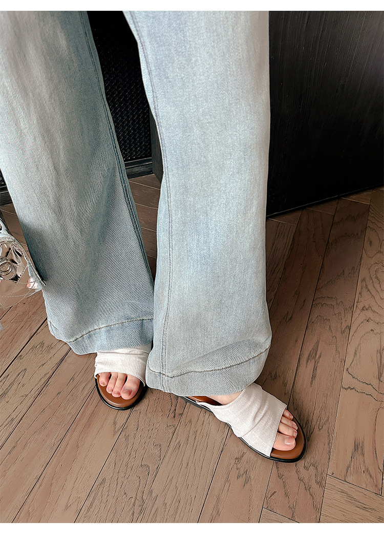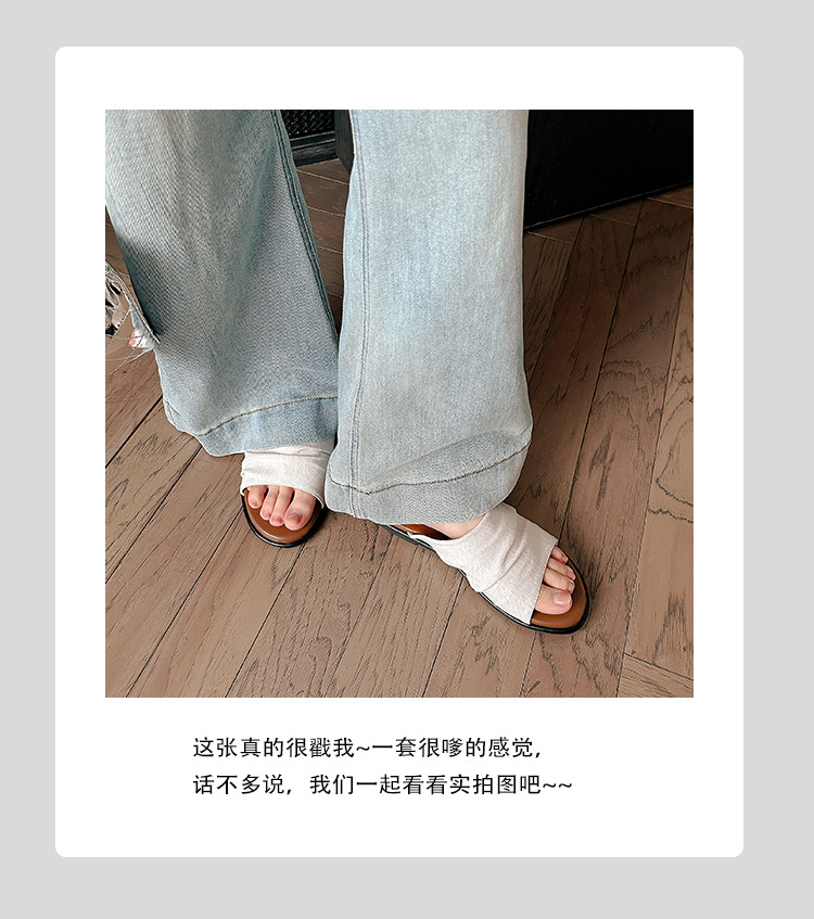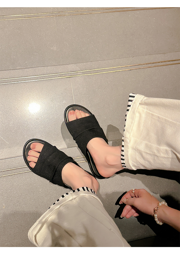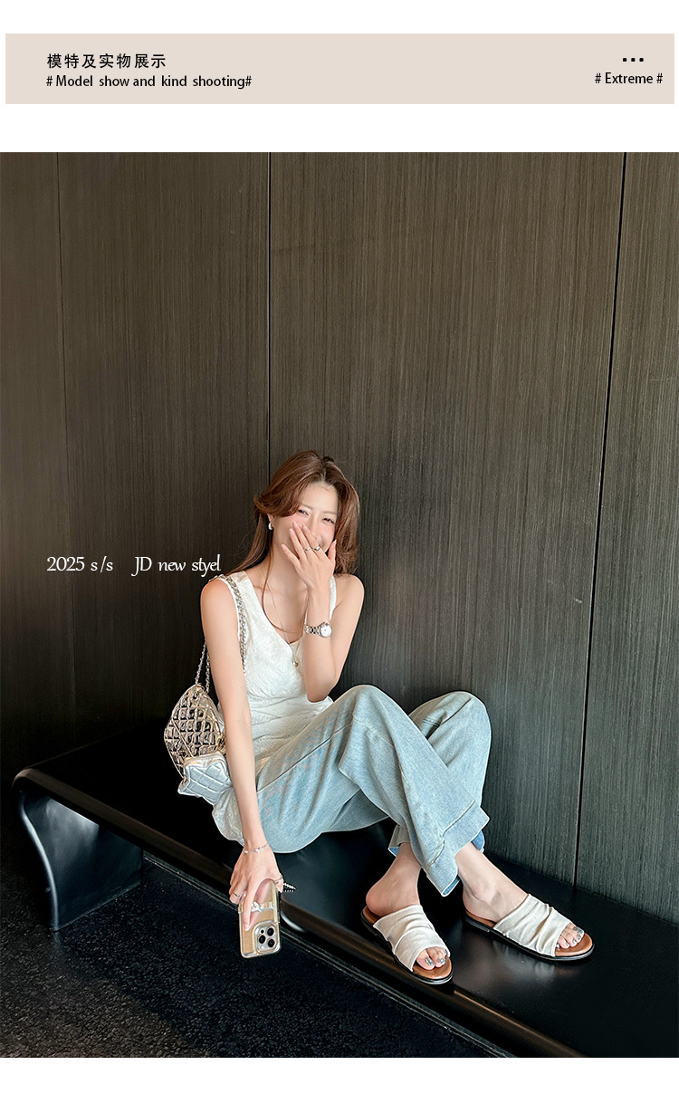 Su Yinyin mismo estilo en Bangkok ~ Sandalias planas plisadas de lino de playa estilo resort, zapatillas de mujer, verano