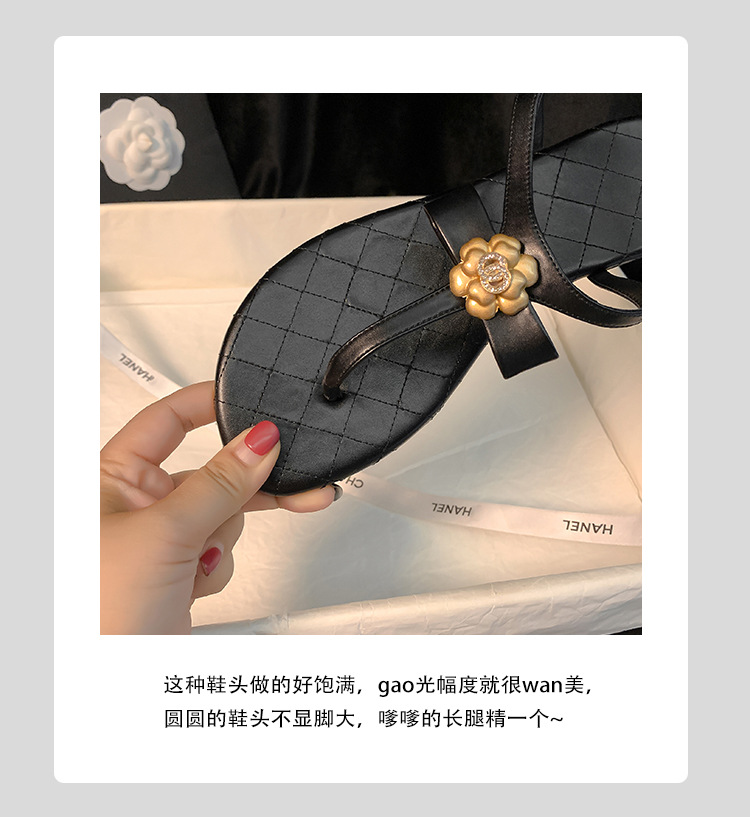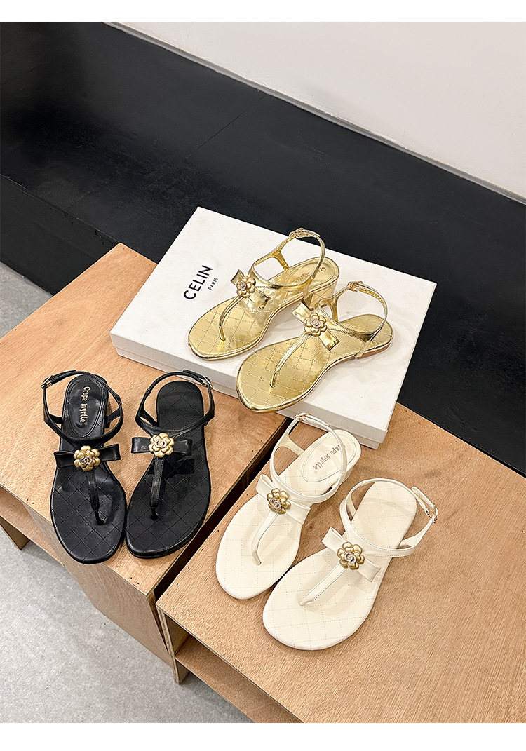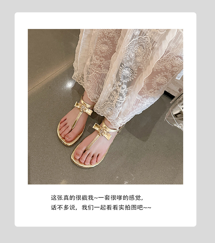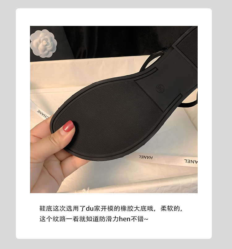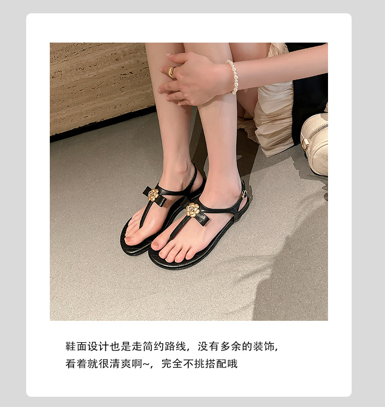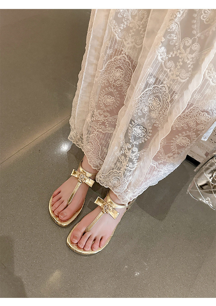 Sandalias planas tipo tanga con tiras finas y pedrería floral, estilo Chanel, como Moonlight Wonderland, para mujer.