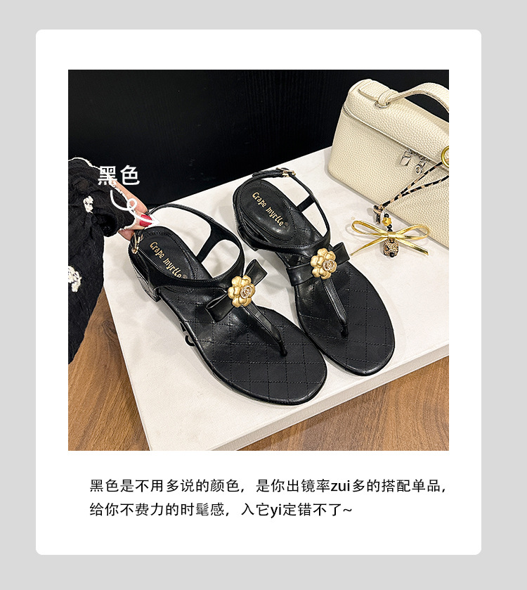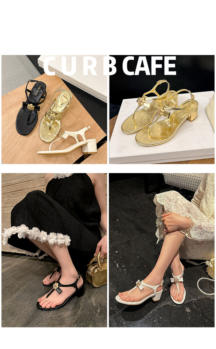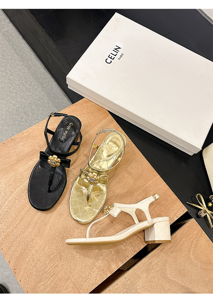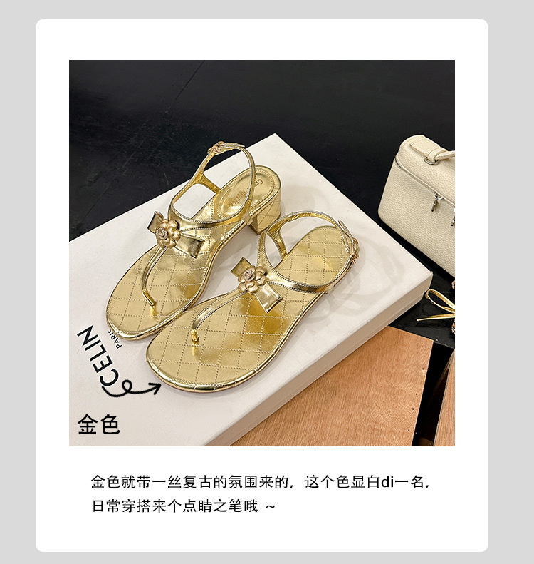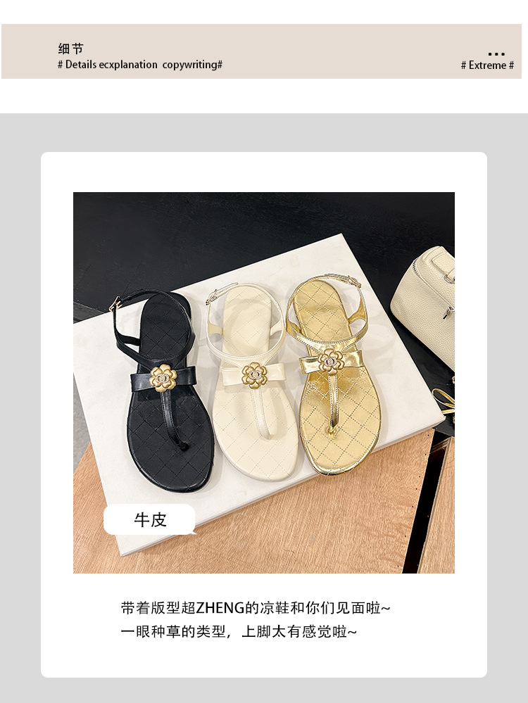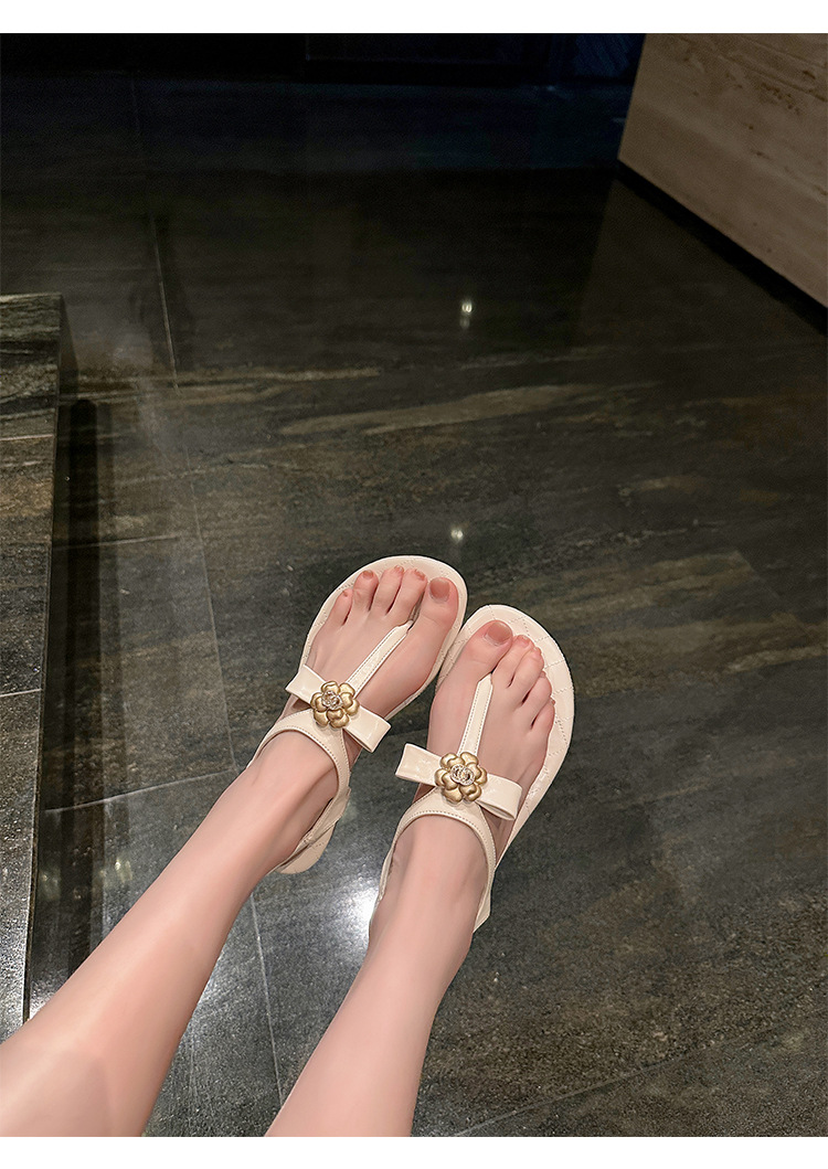 Sandalias planas tipo tanga con tiras finas y pedrería floral, estilo Chanel, como Moonlight Wonderland, para mujer.