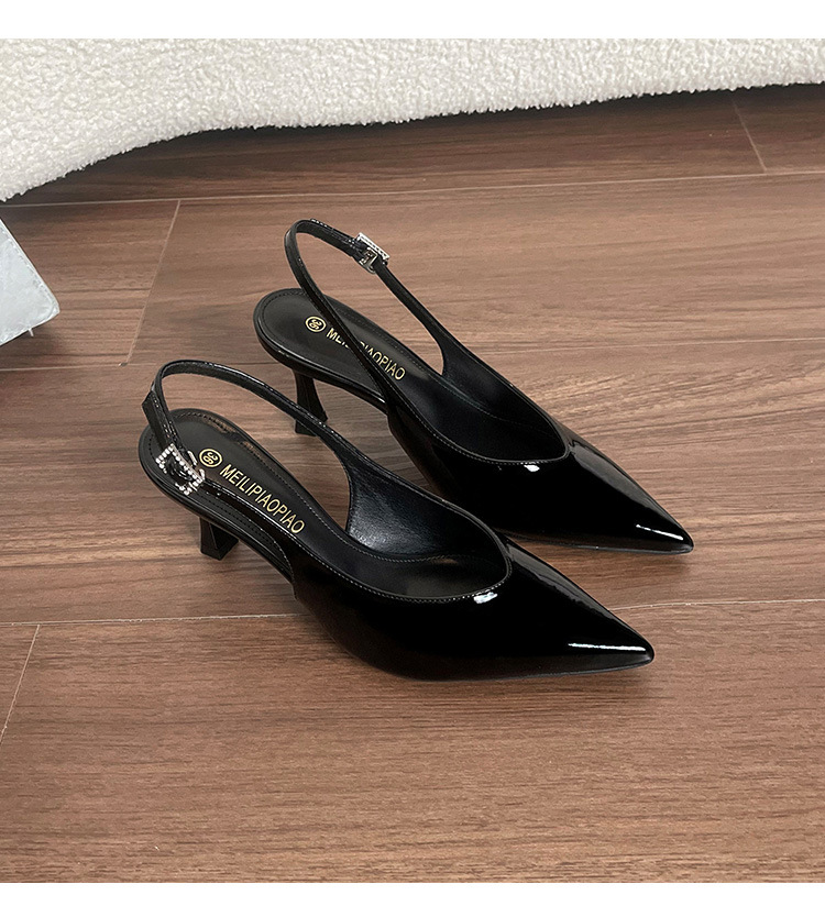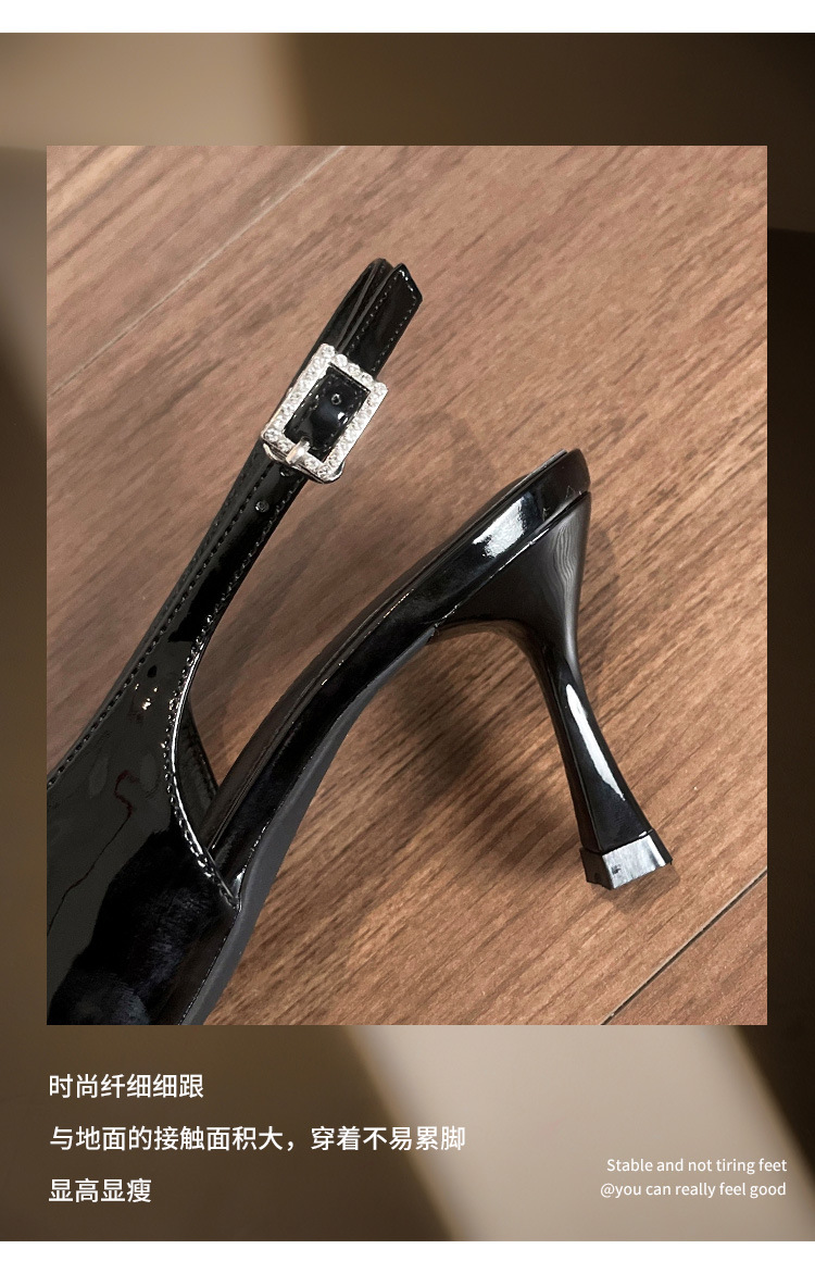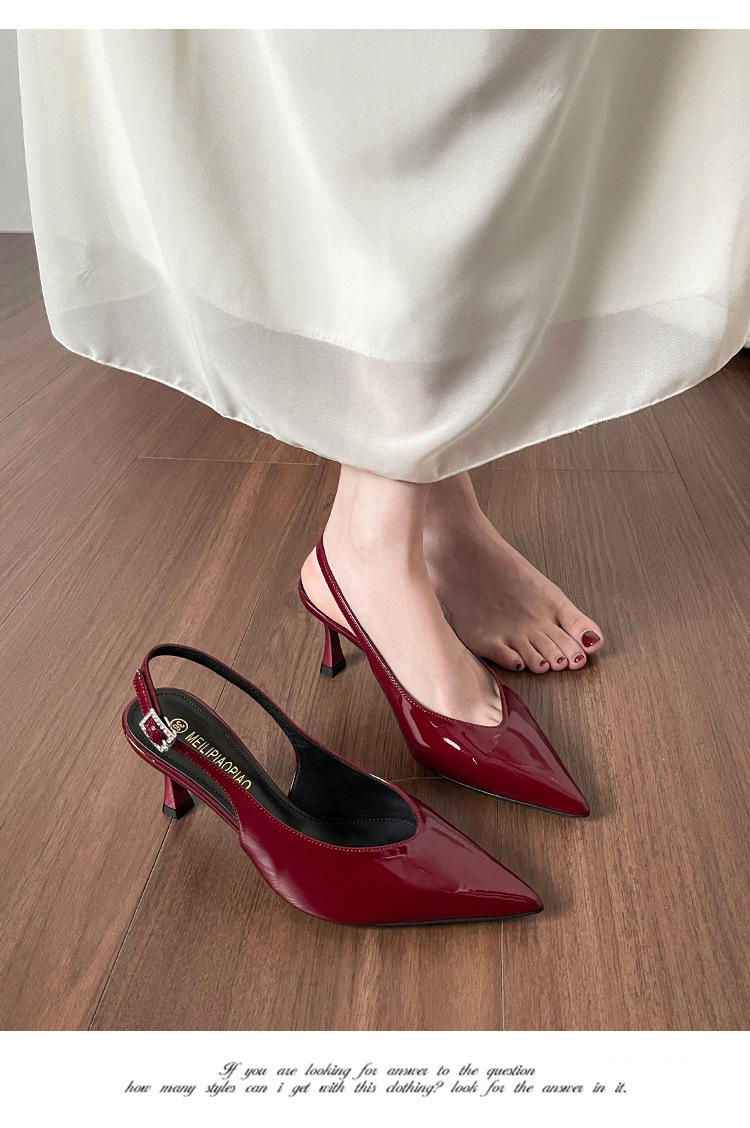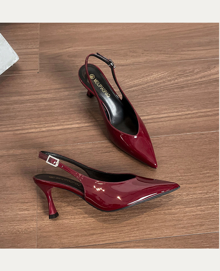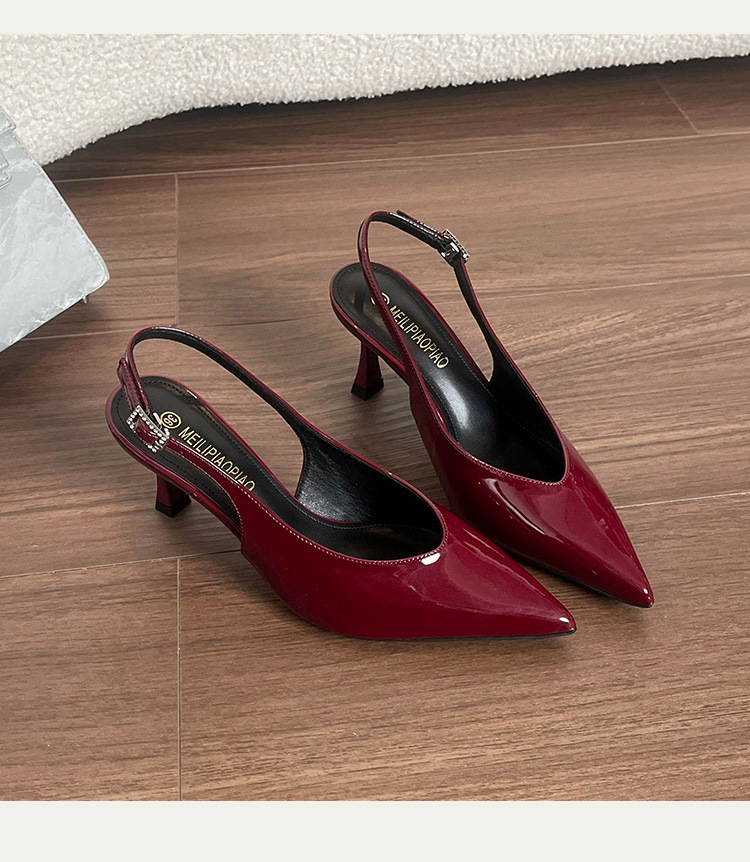 Sandalias de puntera sexy burdeos para mujer con cinturón de trazo trasero de charol todo fósforo sandalias de punta vacía para mujer