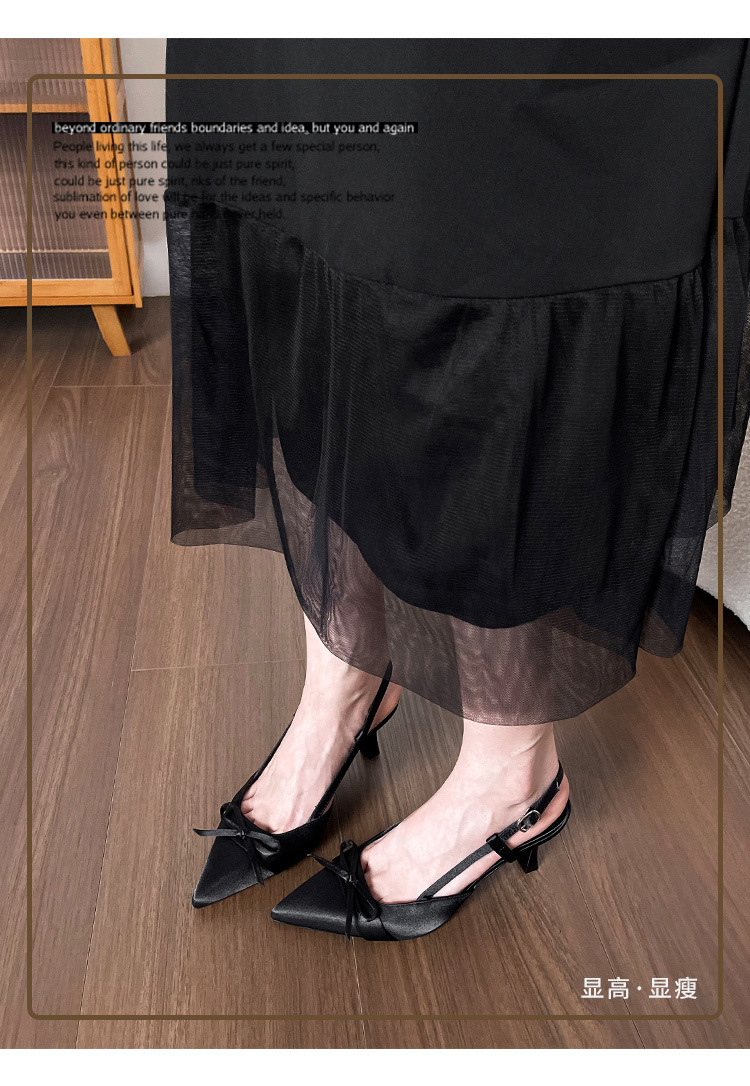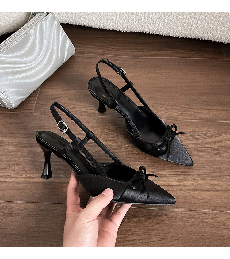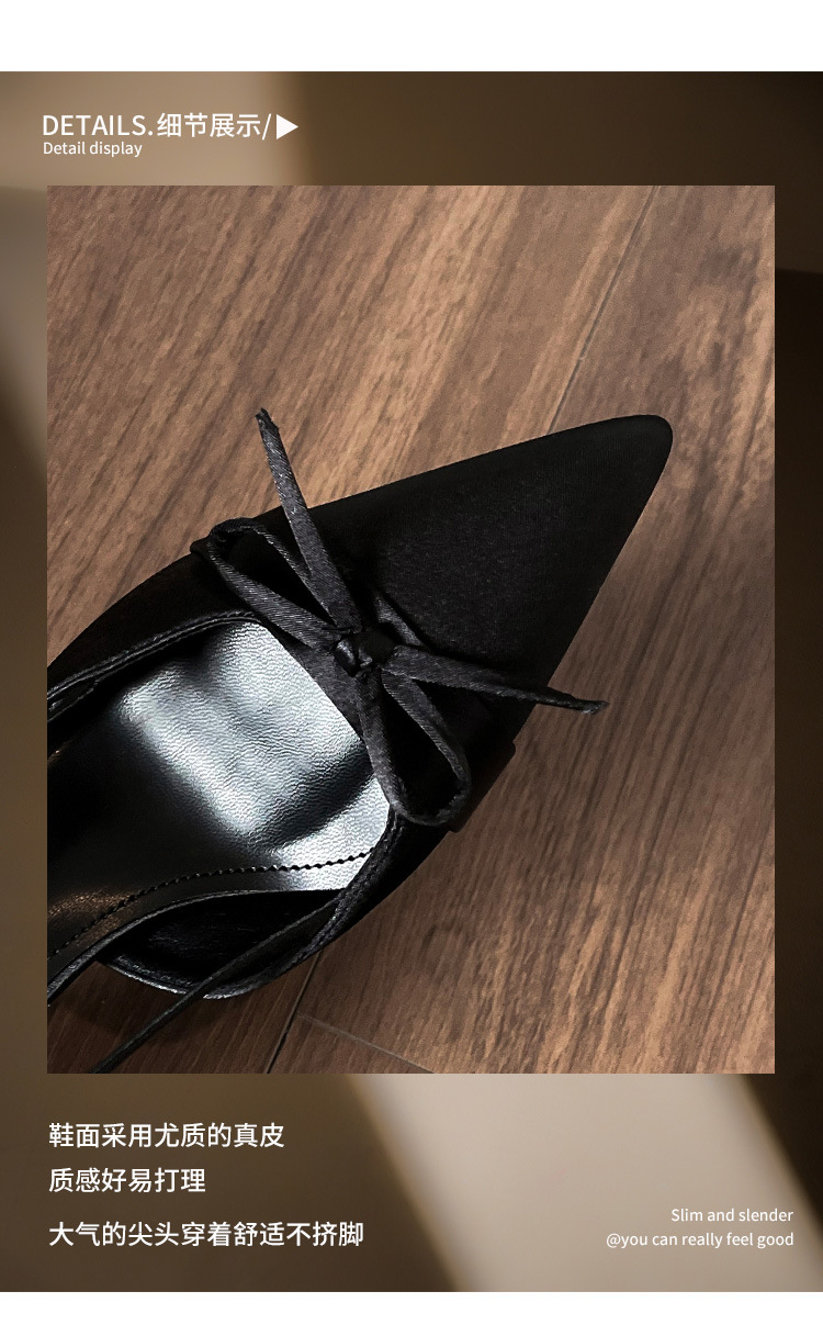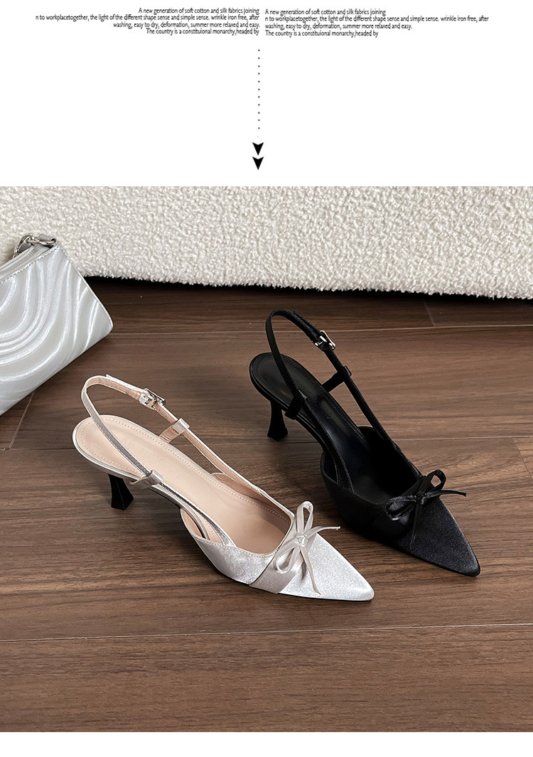 Sandalias interiores con bowknot francés y boca baja, sandalias de tacón alto con punta puntiaguda para mujer 2025 verano nuevo estilo zapatos de tacón alto