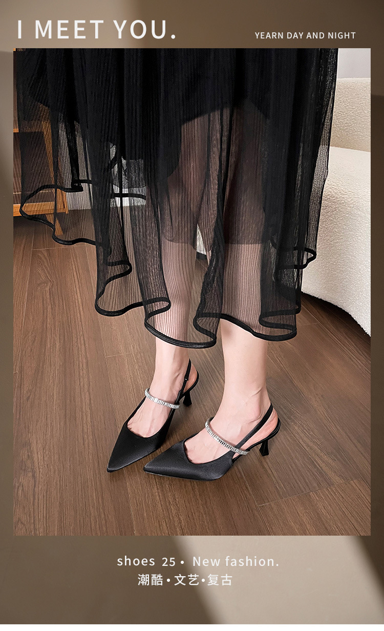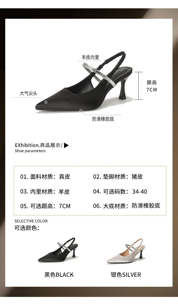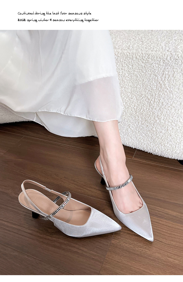 Verano hada noche viento de la noche sandalias de tacón alto plateadas puntiagudas de tacón de aguja para mujer