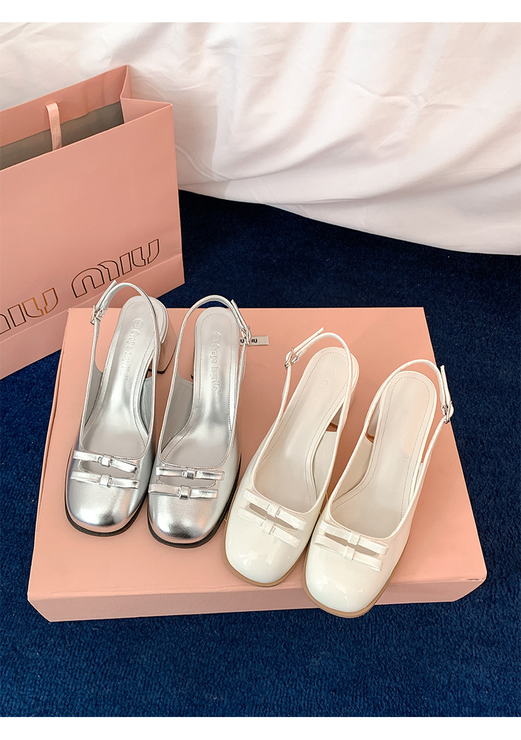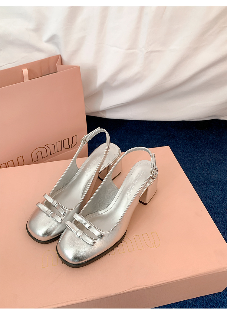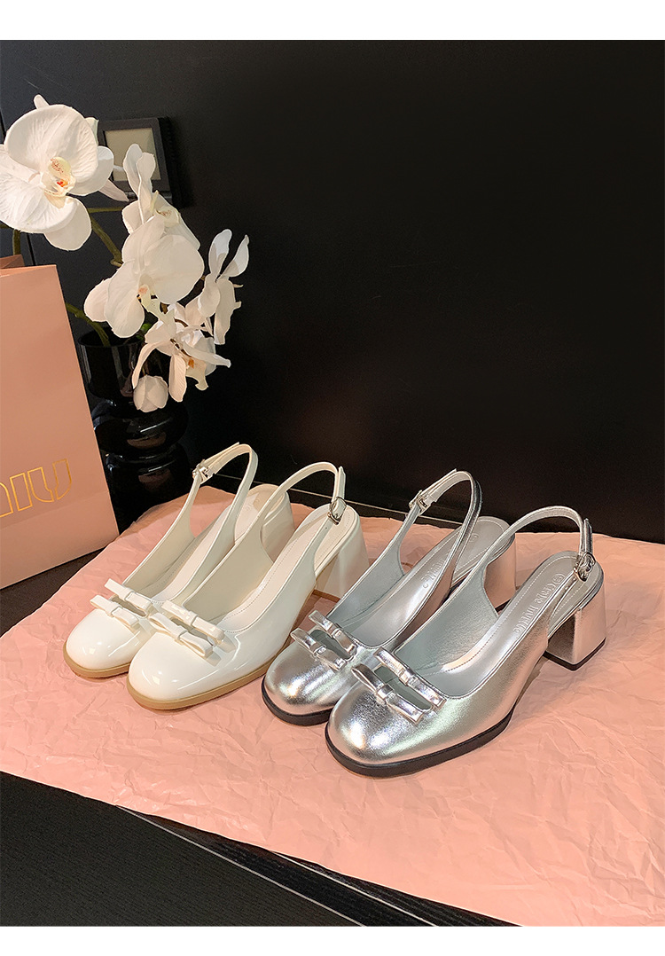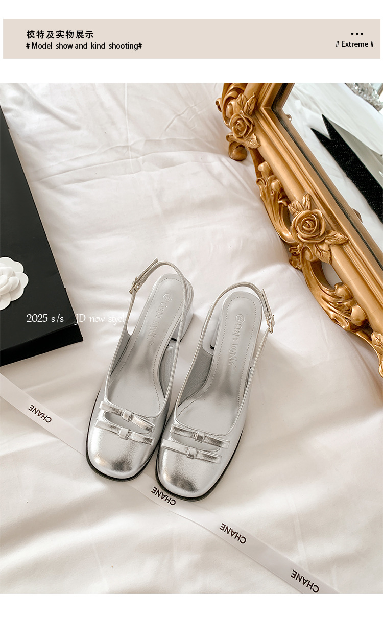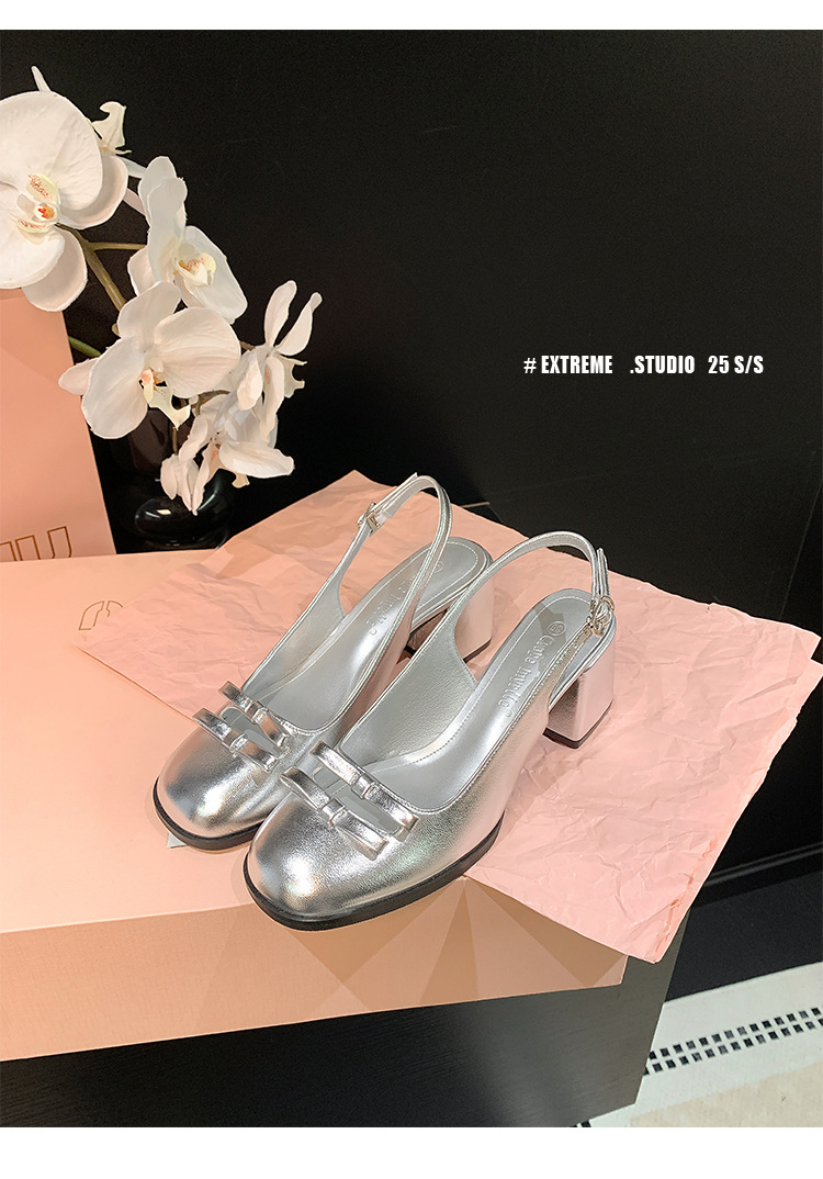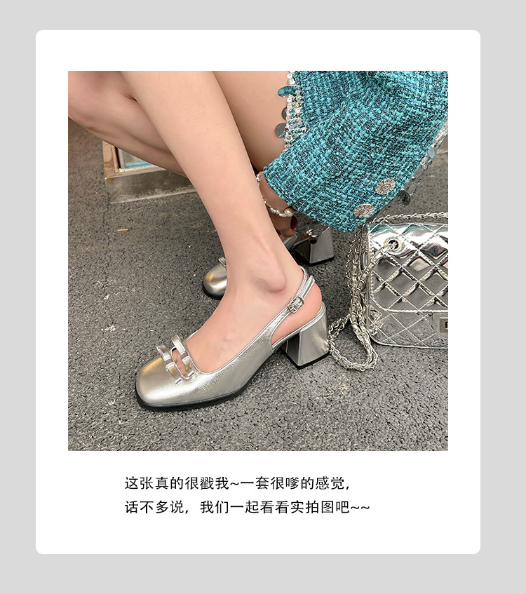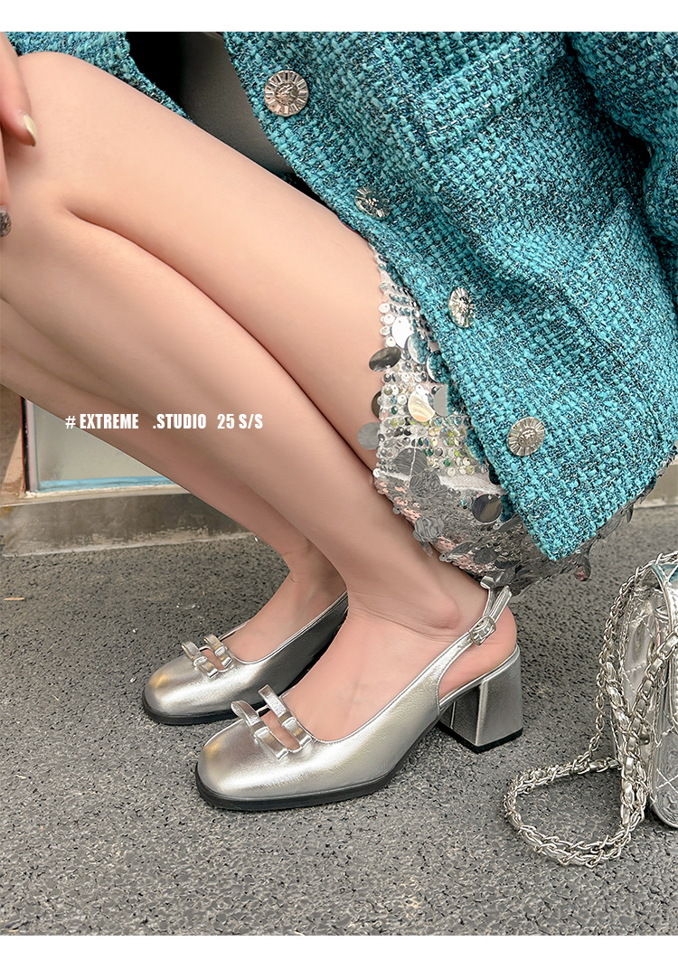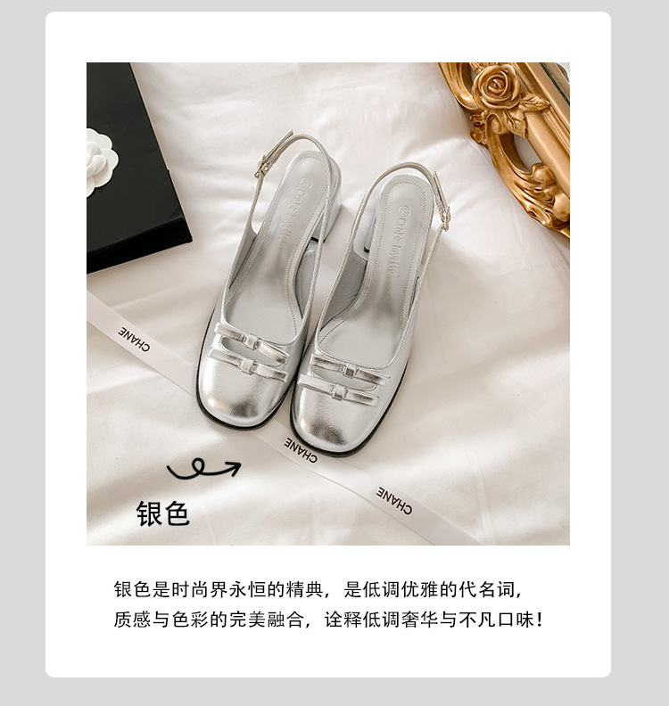 Baotou sandalias para mujeres verano 2025 nuevo tierno viento de hadas doble arco plateado marizhen detrás de sandalias vacías mujeres