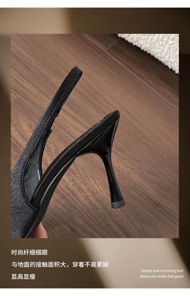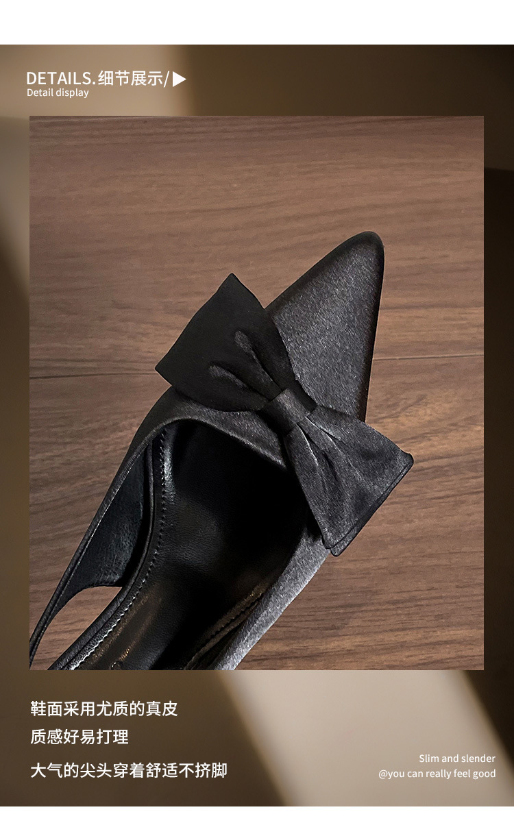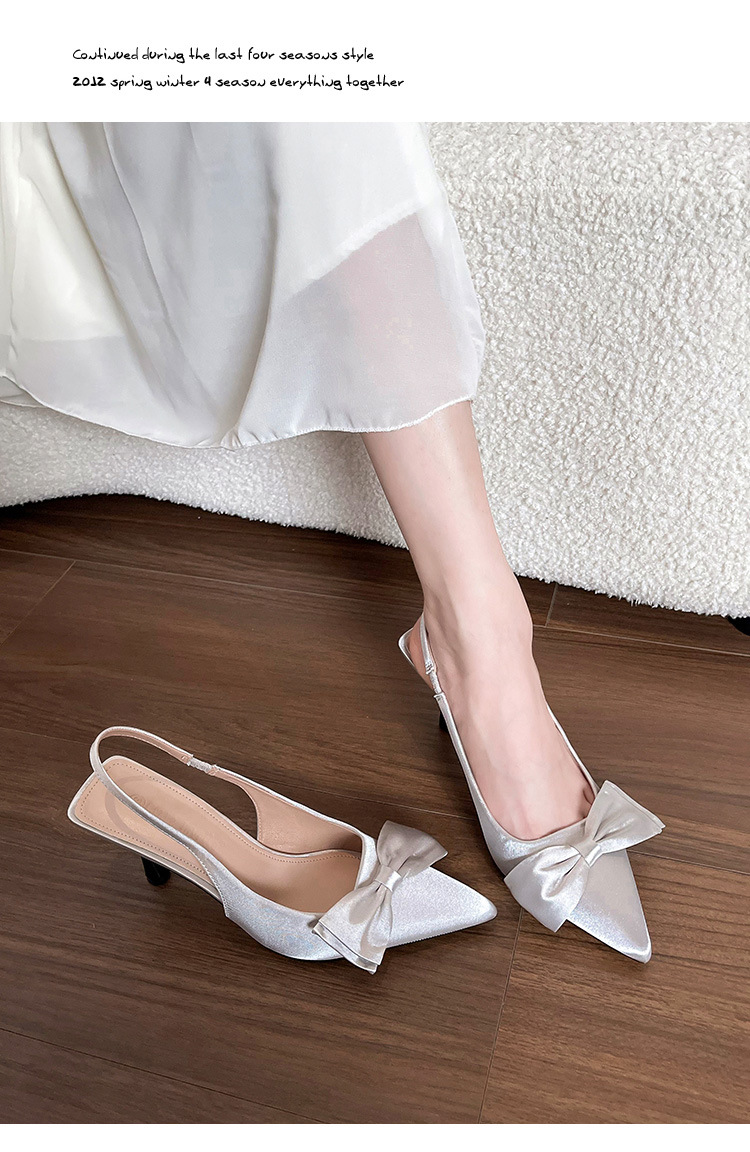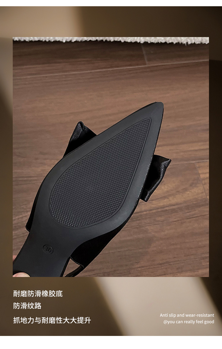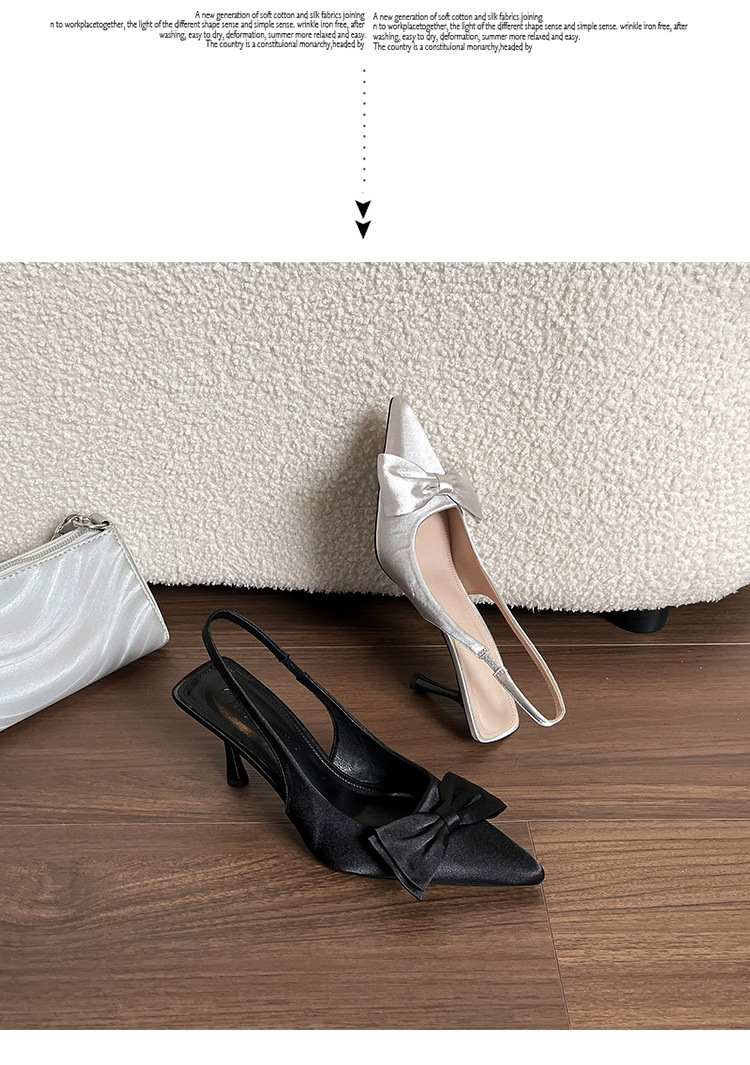 2025 verano nuevo estilo de seda francesa satén tacón de aguja sandalias mujeres temperamento dulce lazo zapatos individuales mujeres