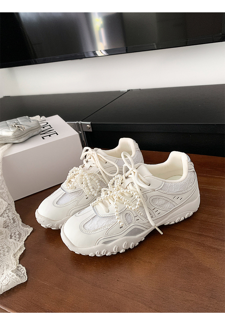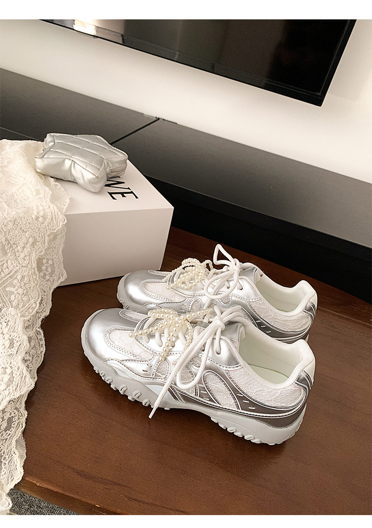 Nuevo aumento de altura de primavera de la uva de la madre ~ encaje de perlas casuales versátiles Agan De entrenamiento de skate para mujeres