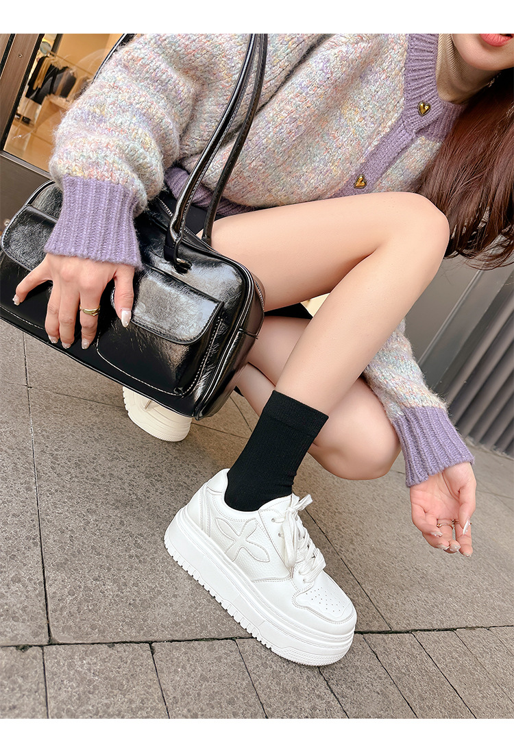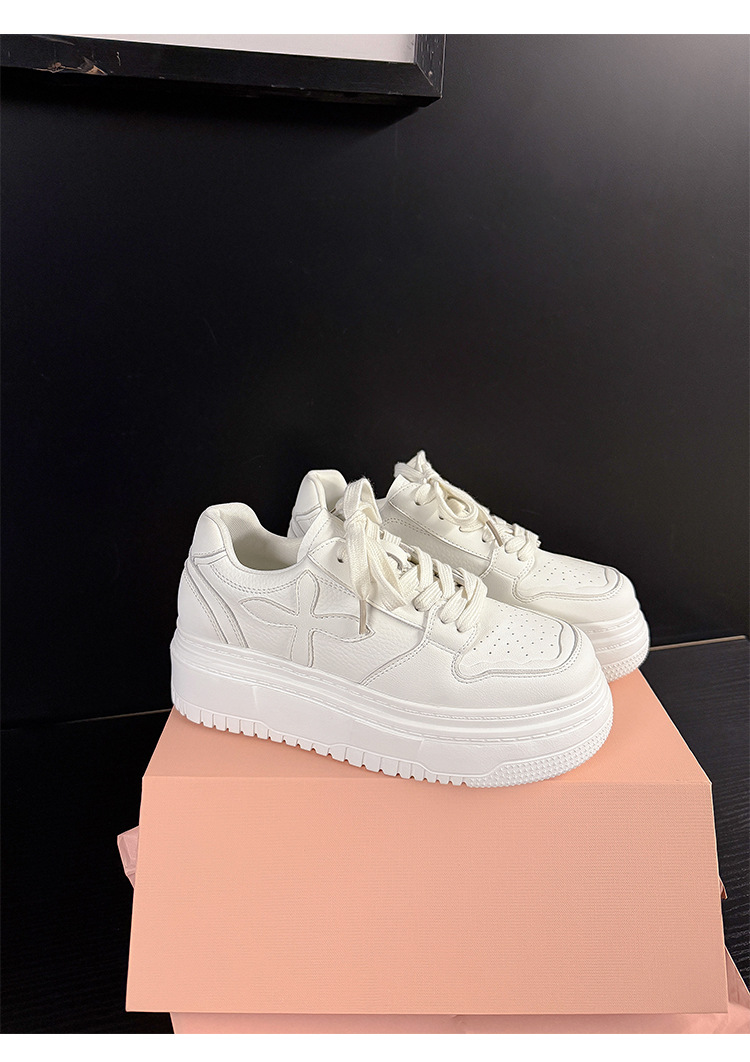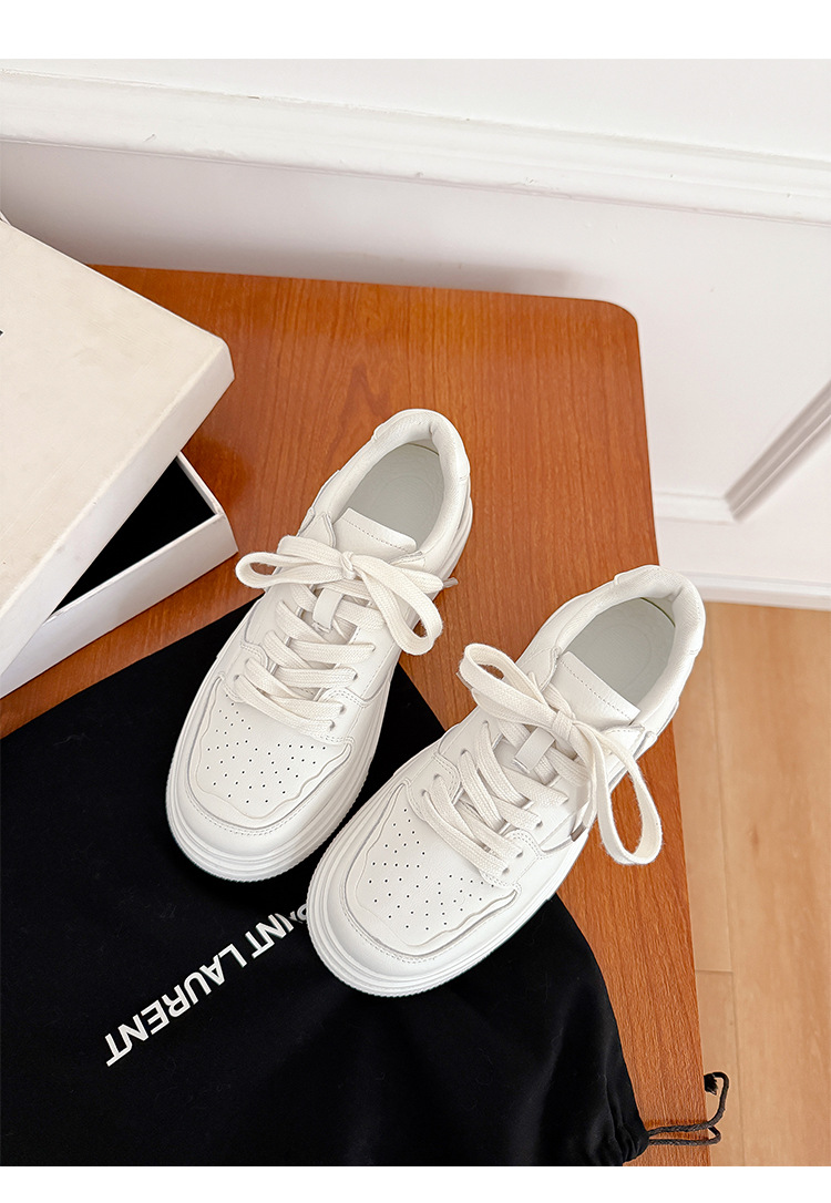 Zapatos de plataforma de punta redonda de cuero para mujer 2025 nuevo estilo de plataforma con cordones zapatos blancos deportivos y de ocio
