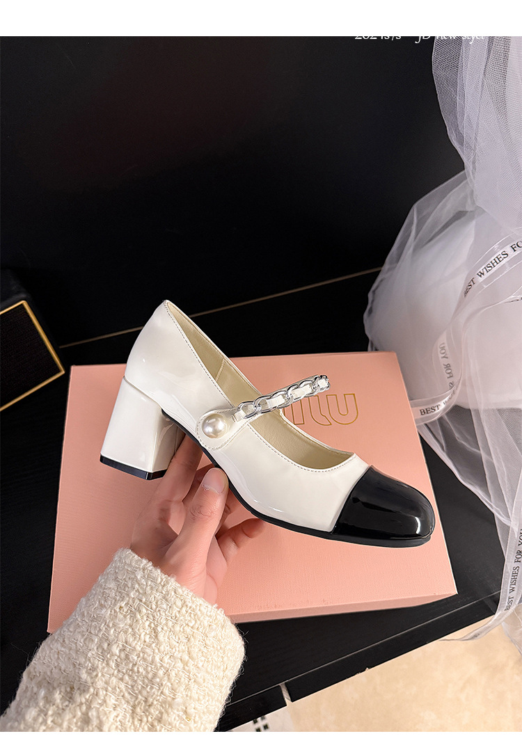 Sandalias de tacón grueso Baotou para mujer 2025 verano nuevo estilo de fragancia pequeña estilo francés de una palabra con sandalias de tacón alto para mujer