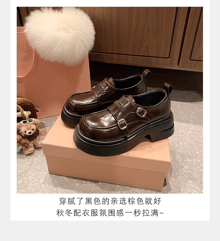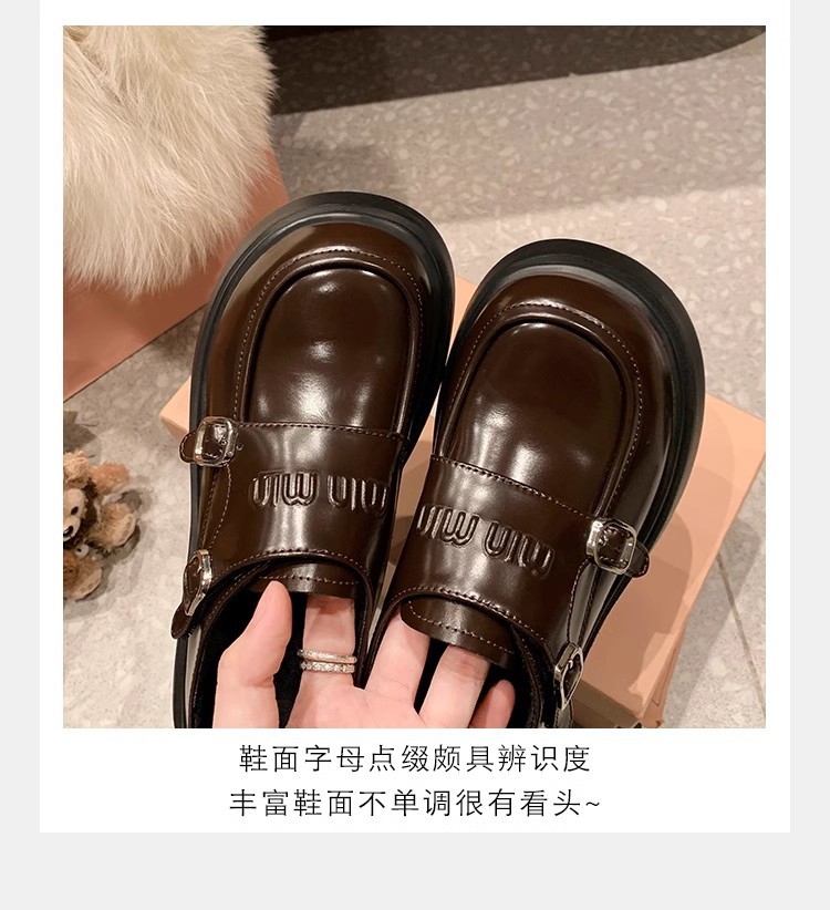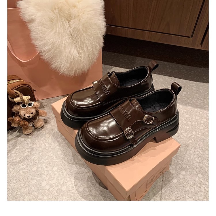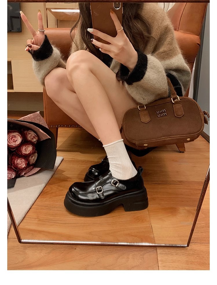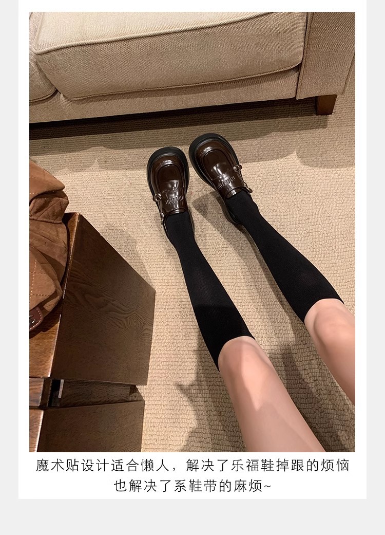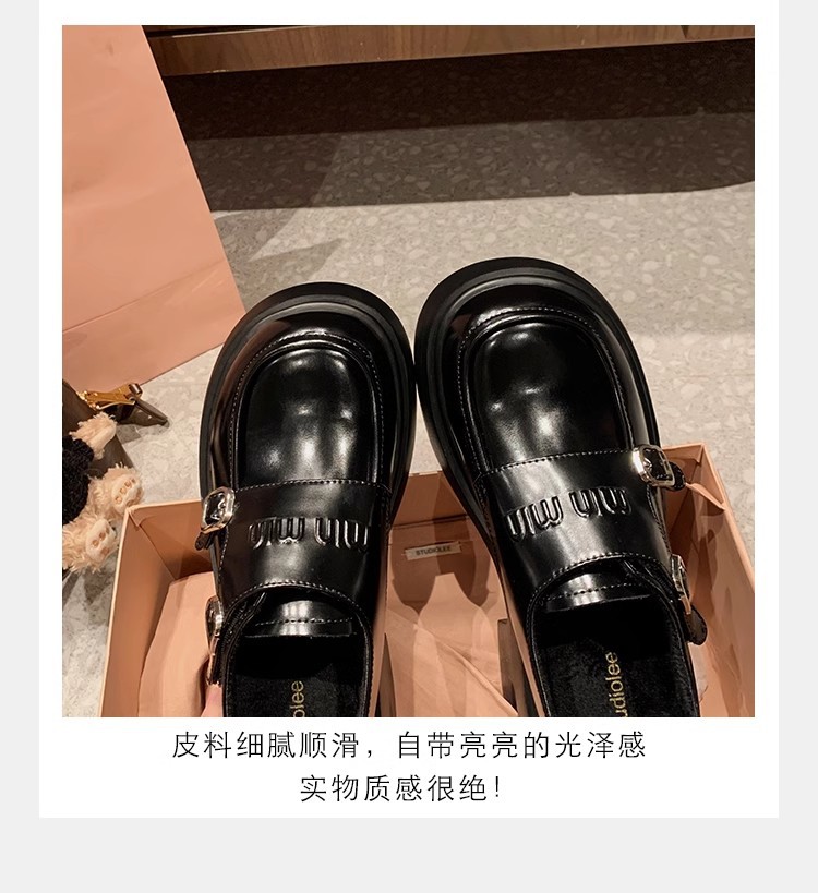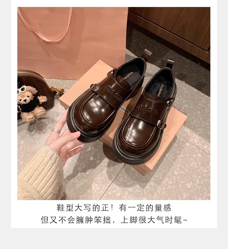 Grape Mom primavera nuevo estilo Amiu hebilla doble punta redonda estilo británico más plataforma de terciopelo Lefu zapatos de cuero zapatos individuales mujer