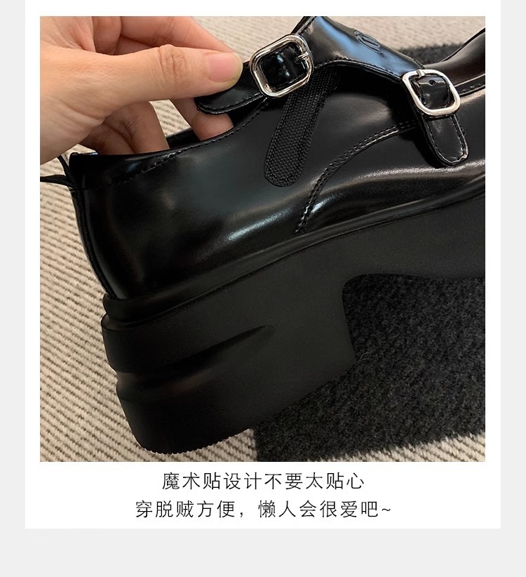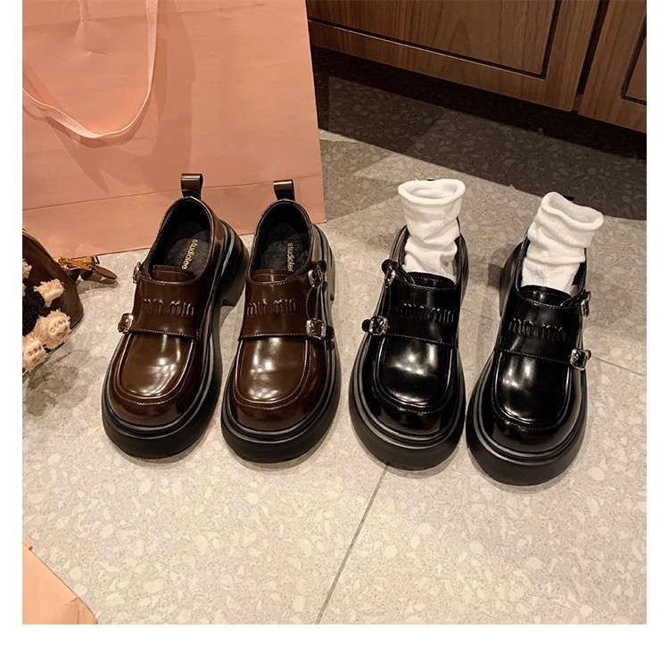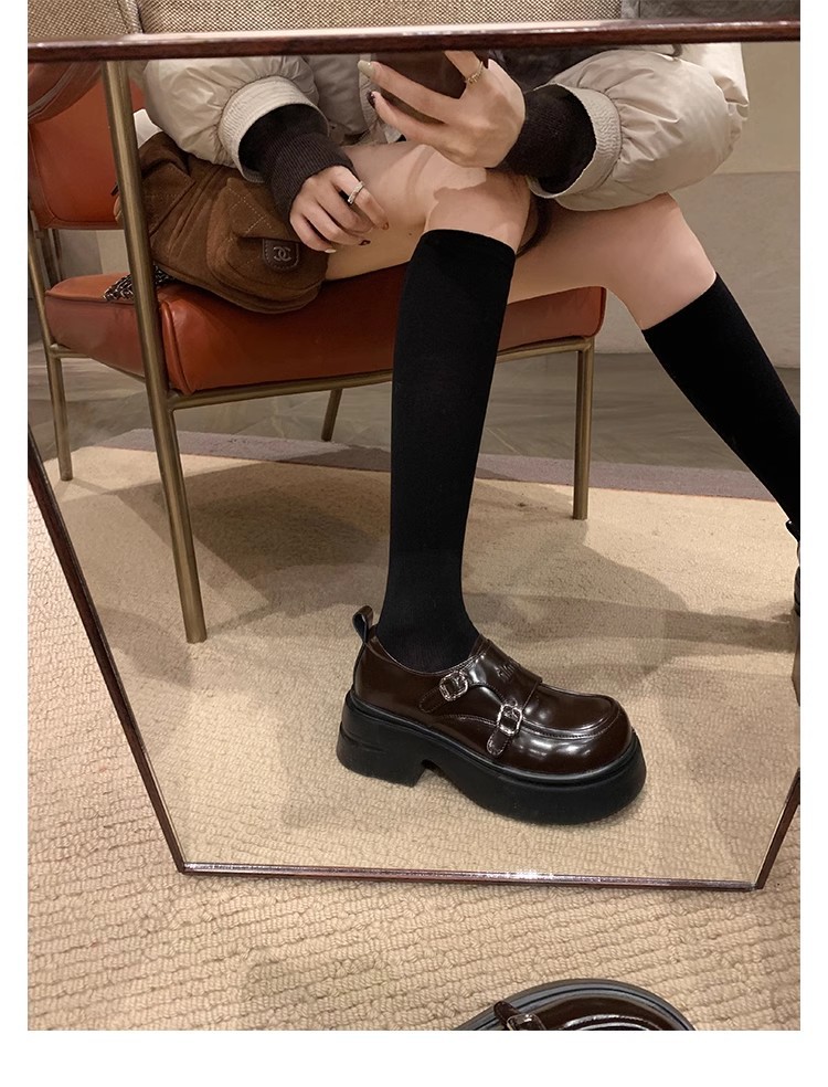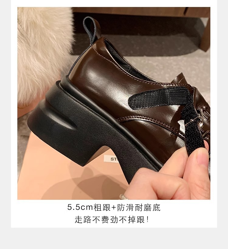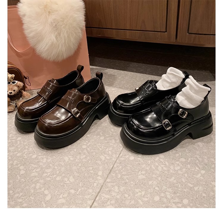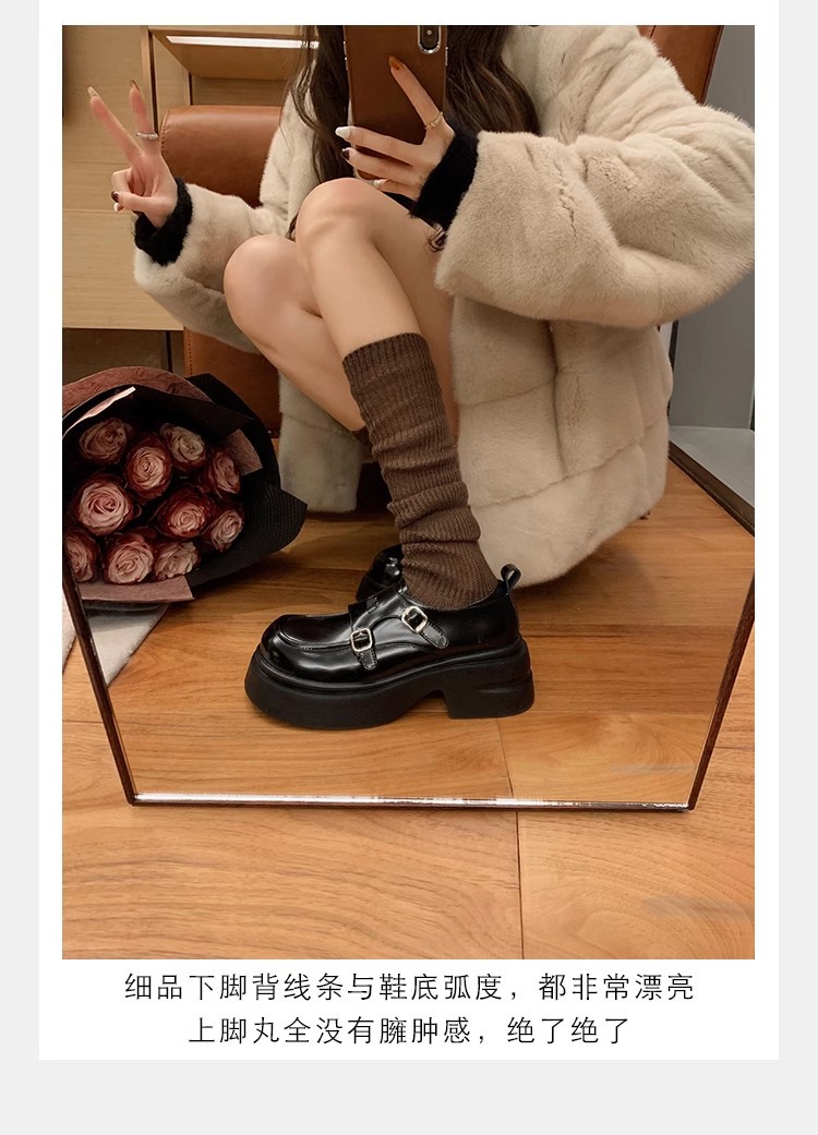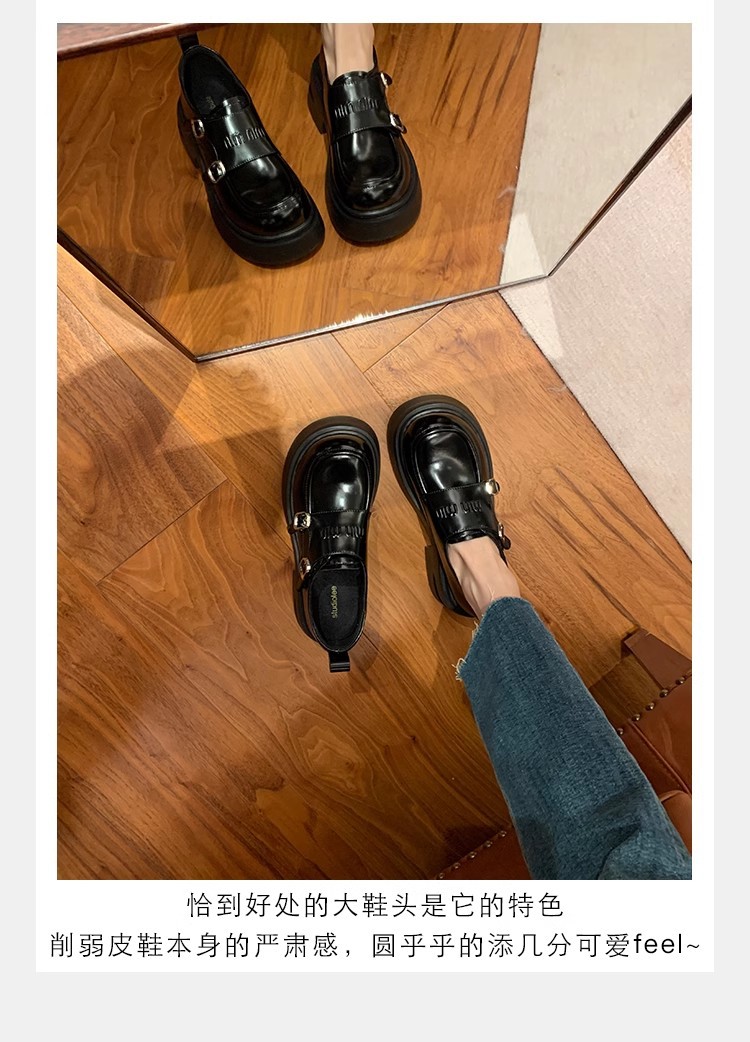 Grape Mom primavera nuevo estilo Amiu hebilla doble punta redonda estilo británico más plataforma de terciopelo Lefu zapatos de cuero zapatos individuales mujer