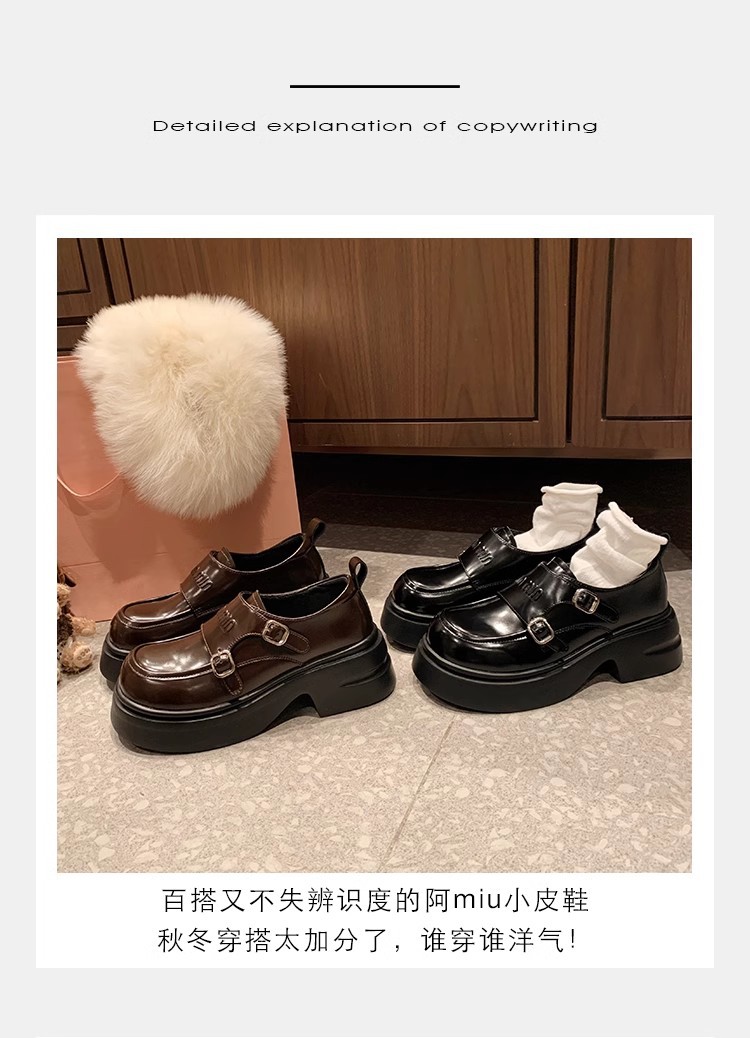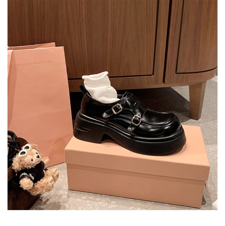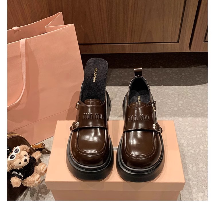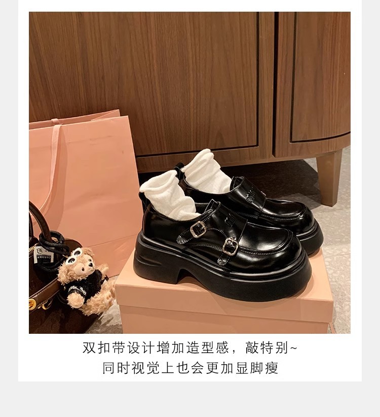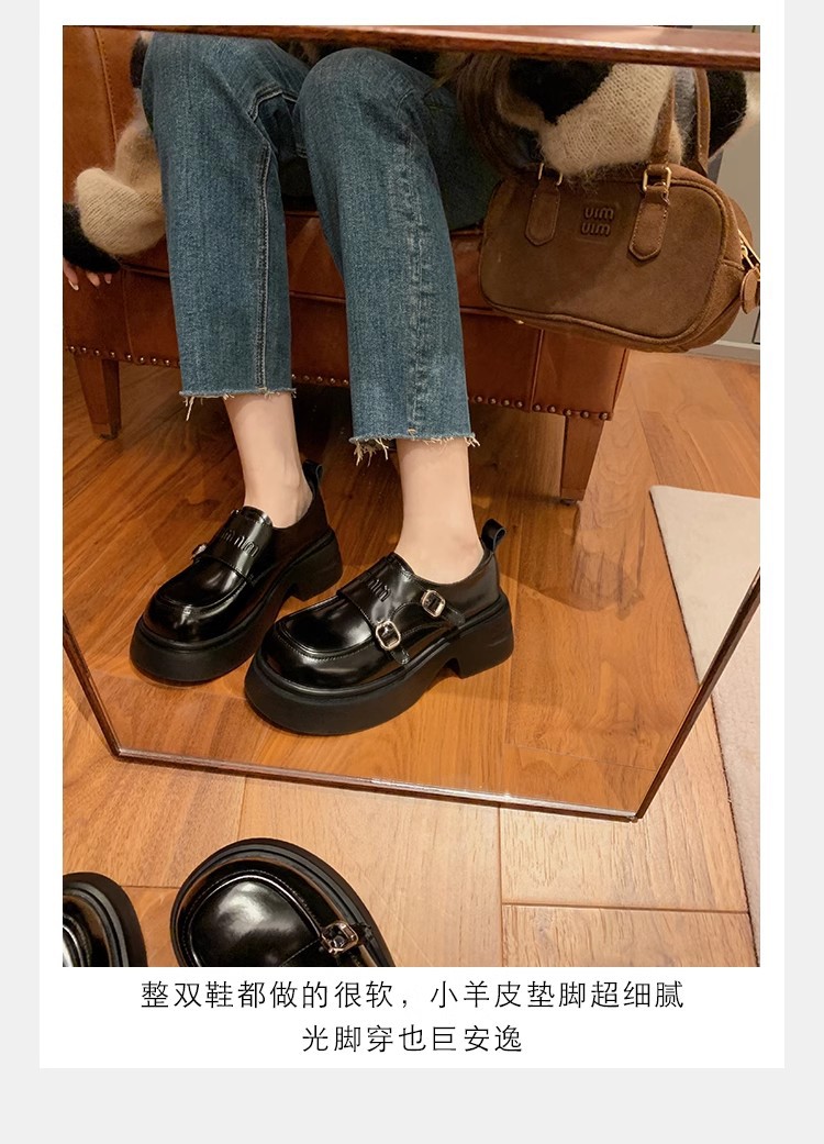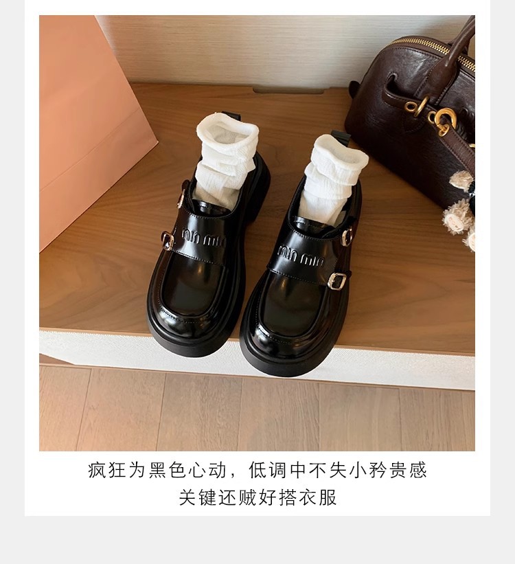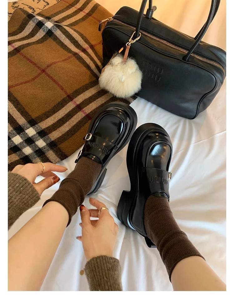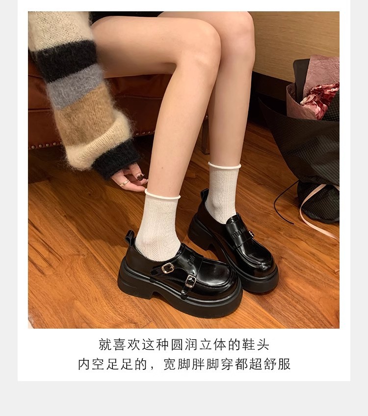 Grape Mom primavera nuevo estilo Amiu hebilla doble punta redonda estilo británico más plataforma de terciopelo Lefu zapatos de cuero zapatos individuales mujer