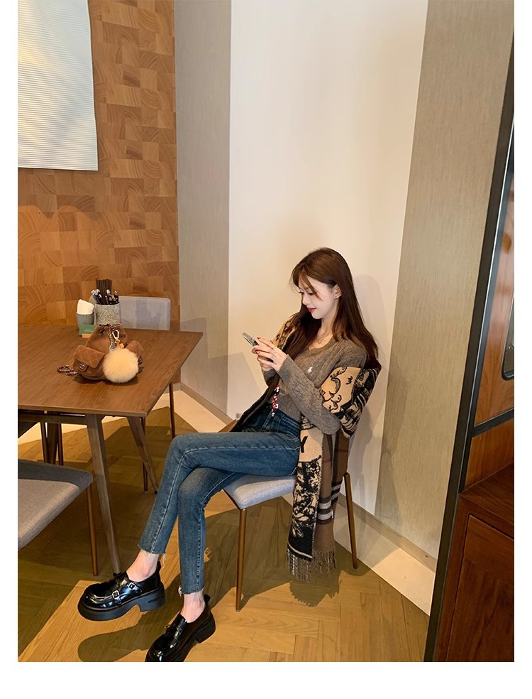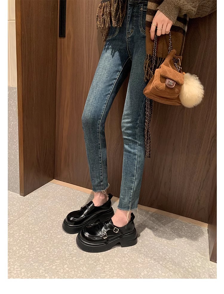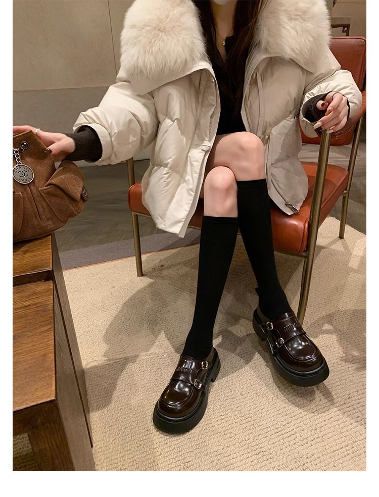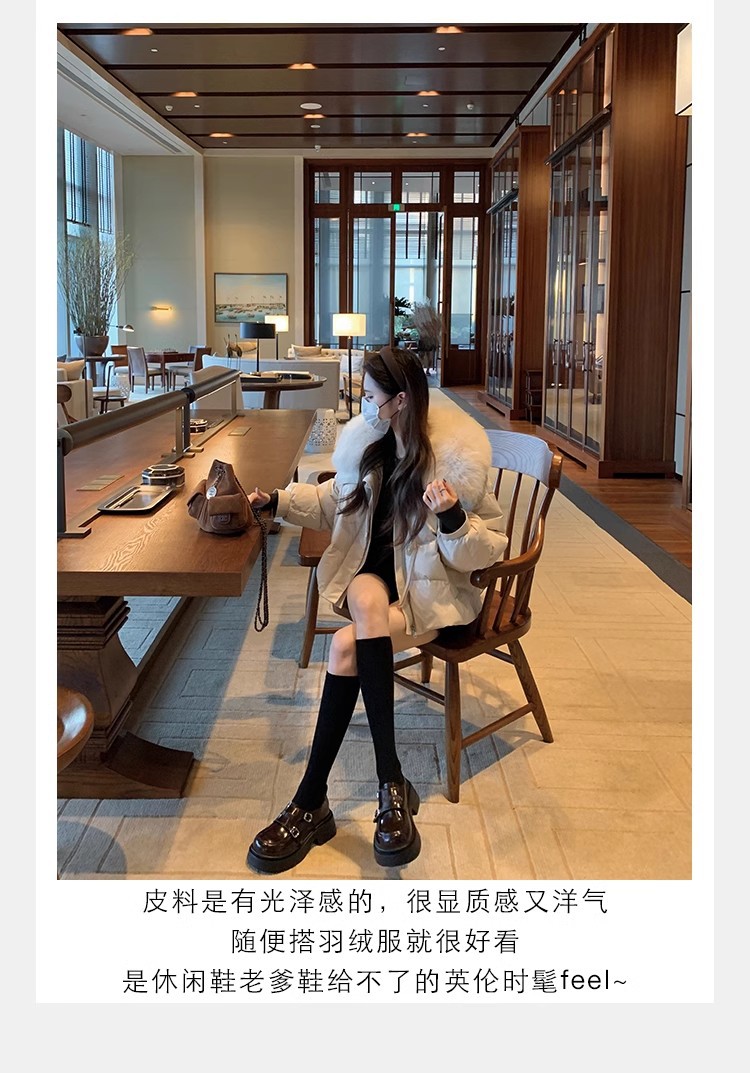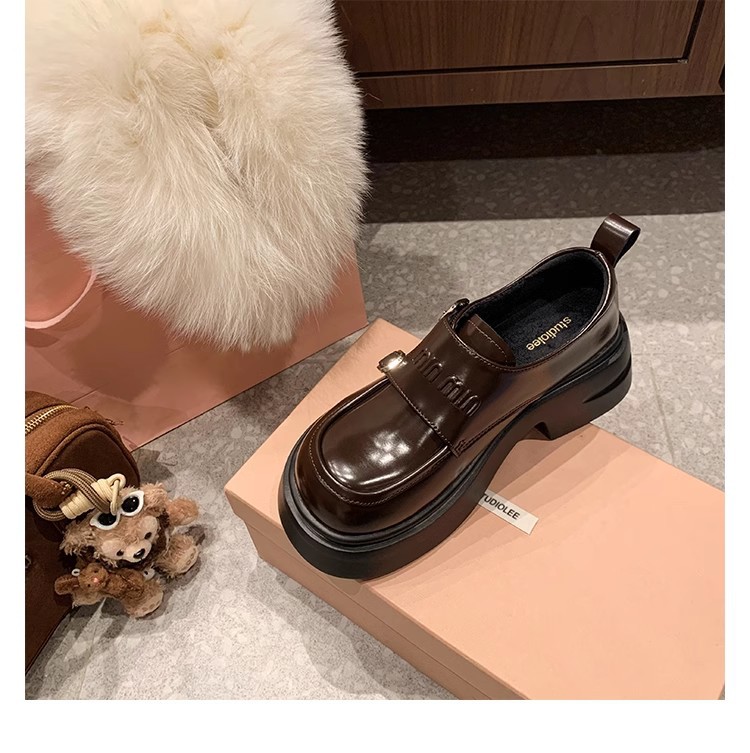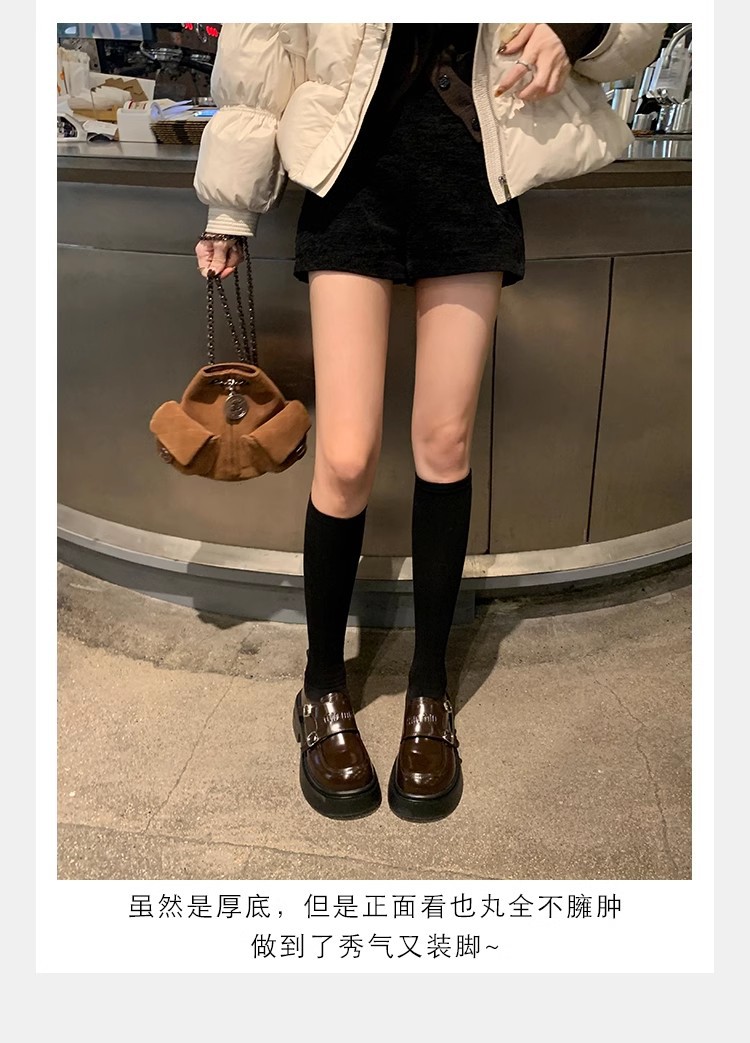 Grape Mom primavera nuevo estilo Amiu hebilla doble punta redonda estilo británico más plataforma de terciopelo Lefu zapatos de cuero zapatos individuales mujer