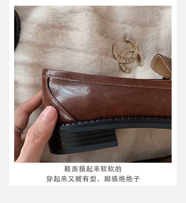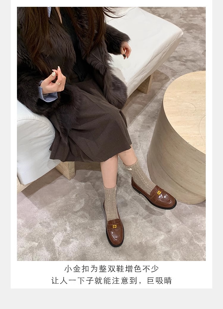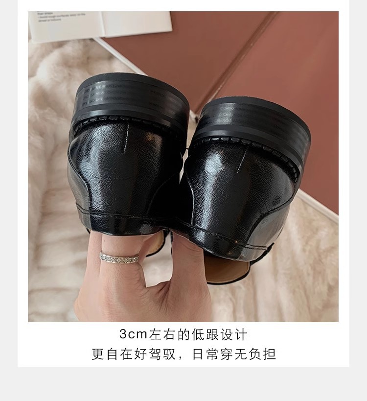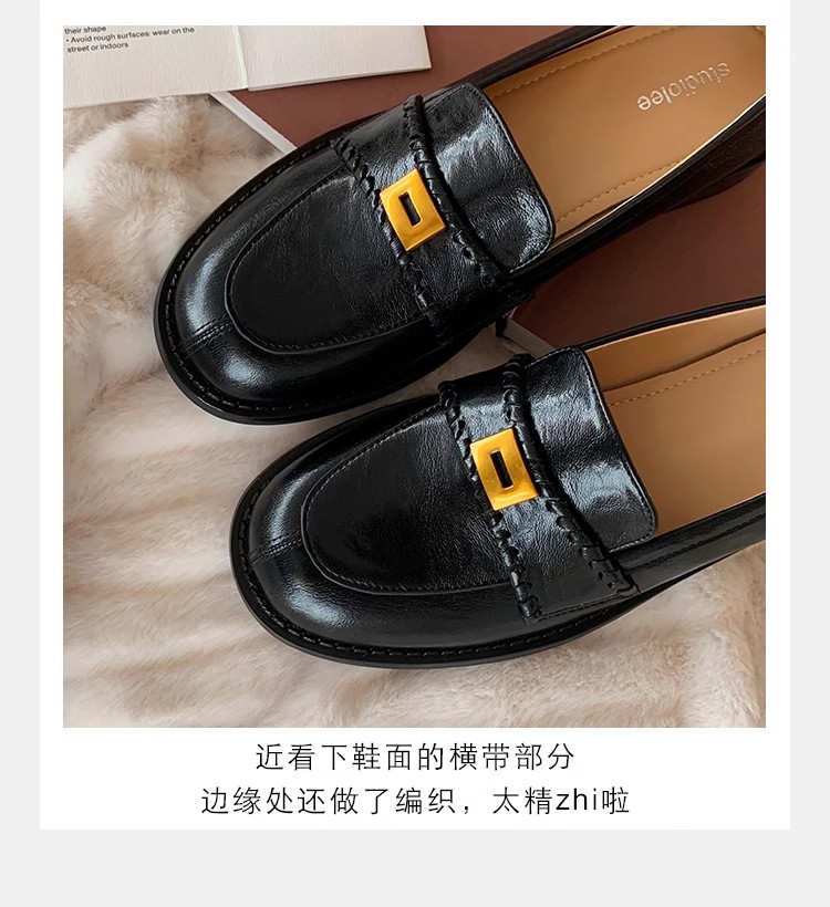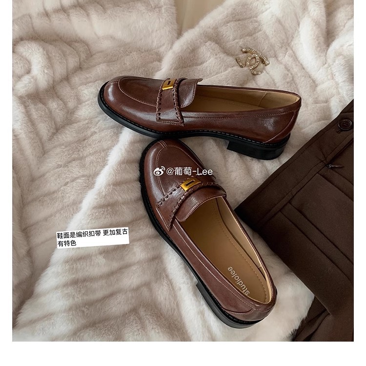 Grape Mom primavera nuevo estilo británico retro pequeña hebilla dorada cabeza redonda perezosa tacón grueso zapatos de cuero Love mujer