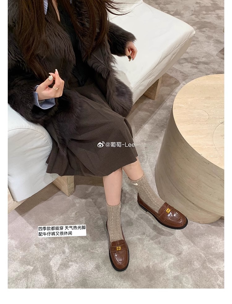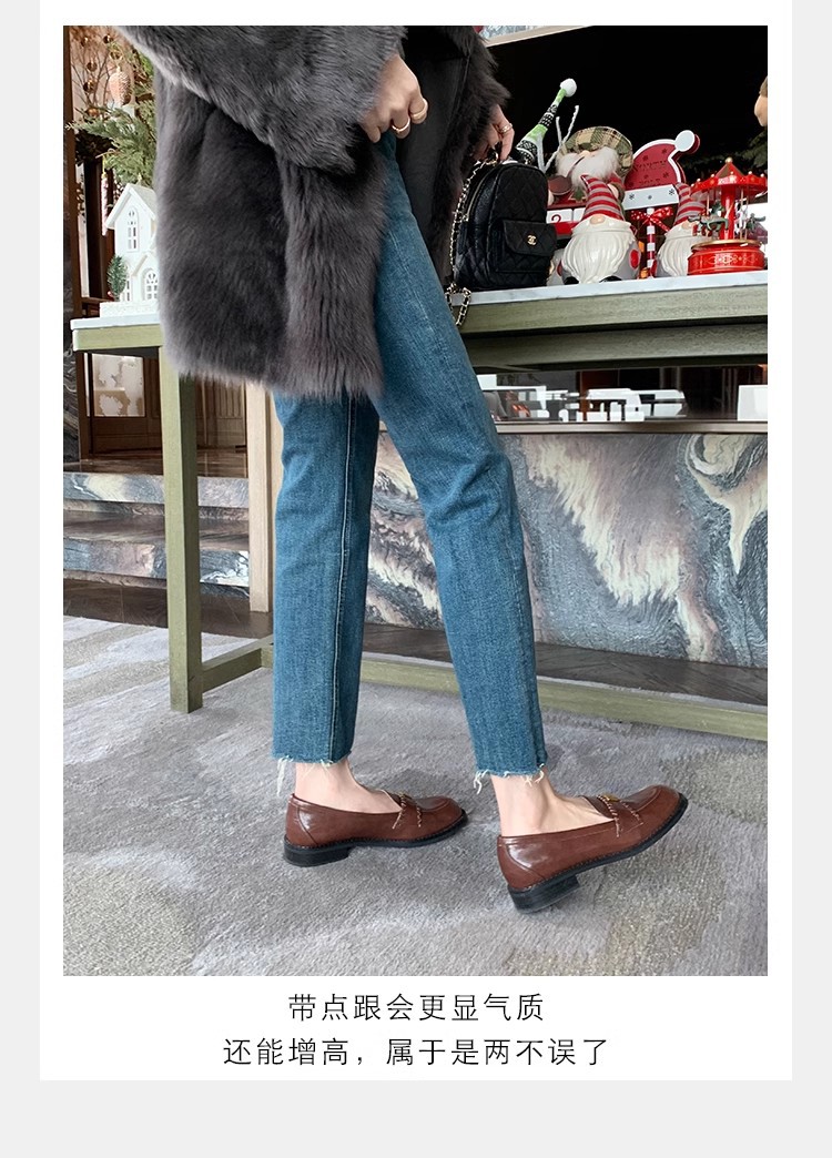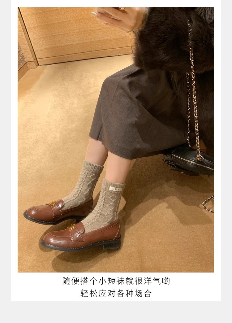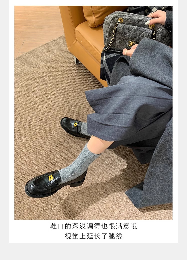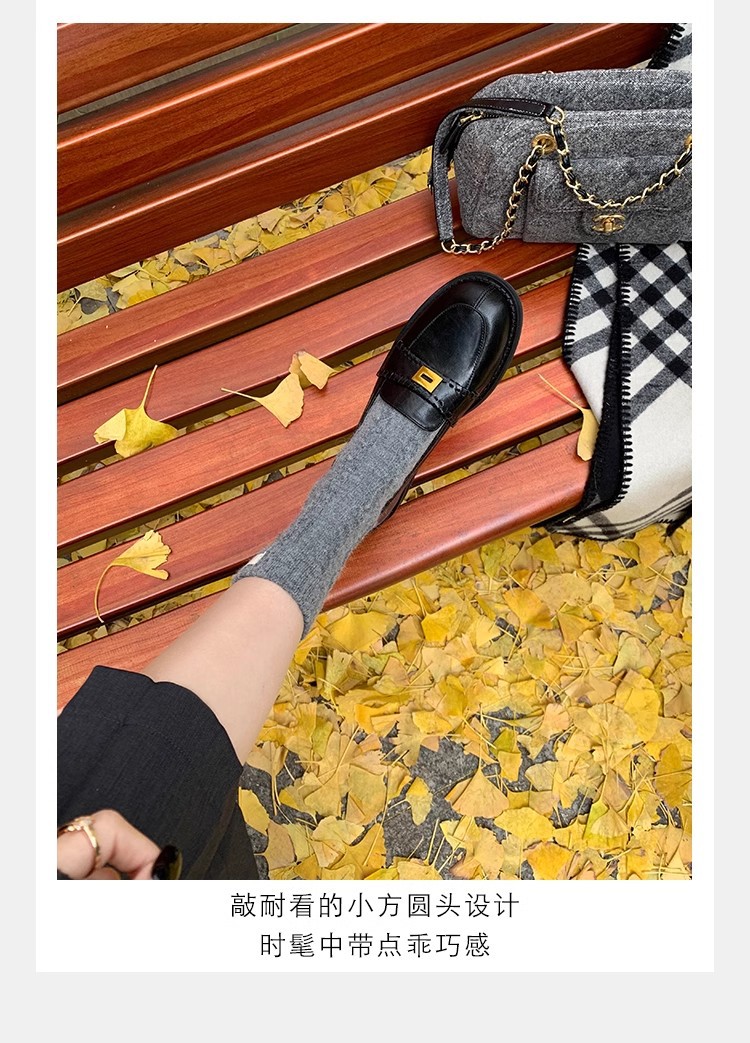 Grape Mom primavera nuevo estilo británico retro pequeña hebilla dorada cabeza redonda perezosa tacón grueso zapatos de cuero Love mujer