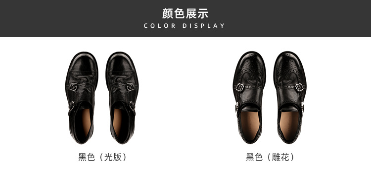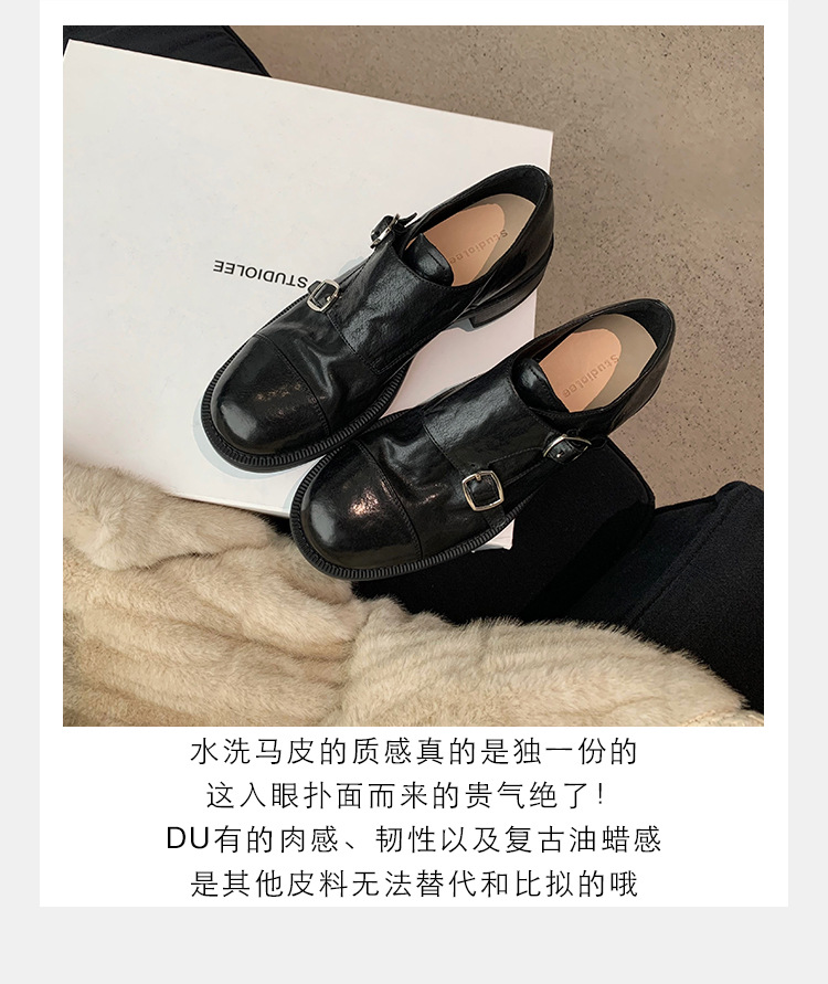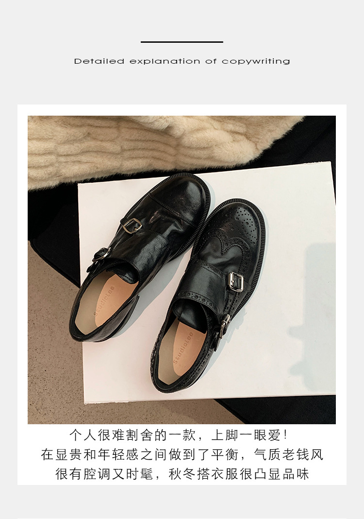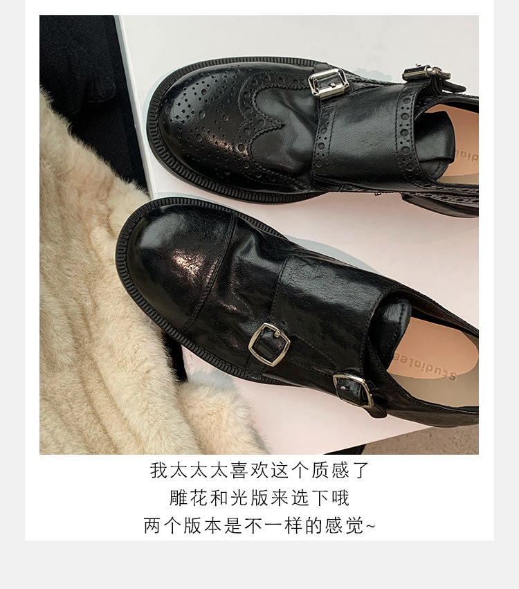 Grape Mom otoño e invierno nuevo Hatton College ~ Zapatos de cuero de estilo británico de todo fósforo de tacón grueso de punta redonda con hebilla doble