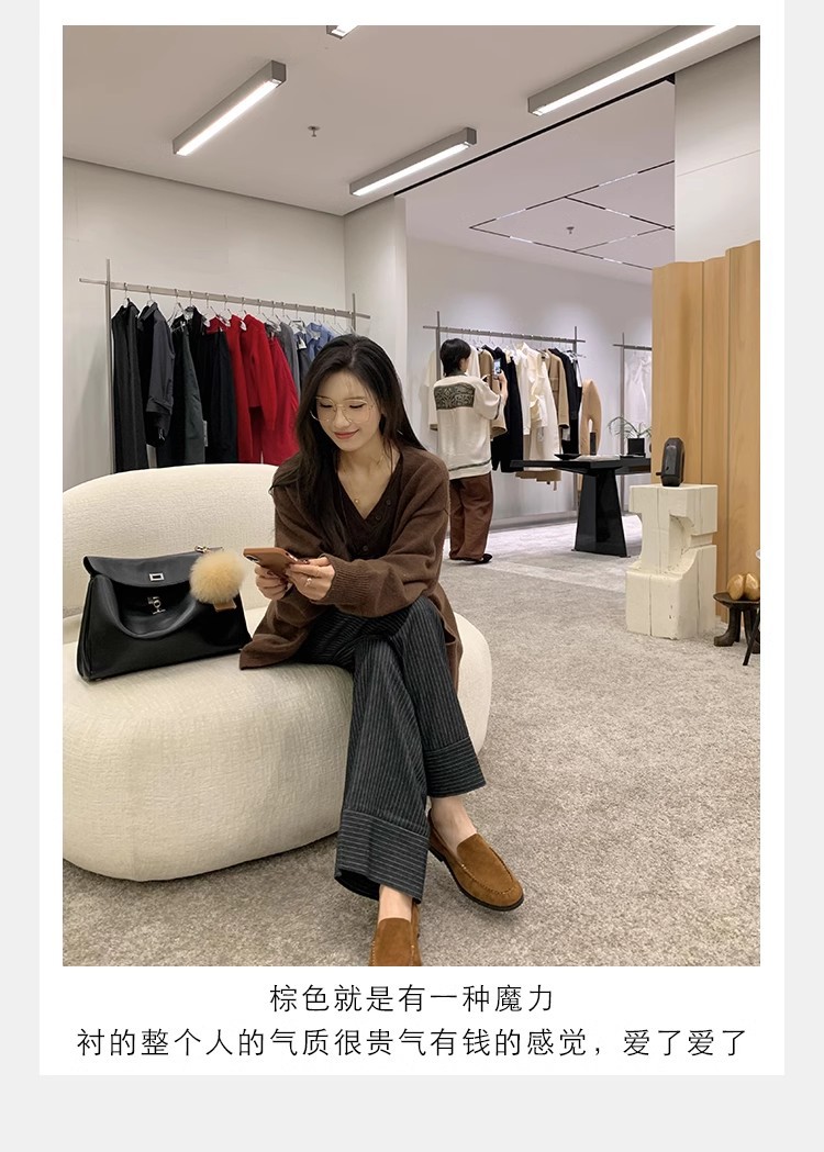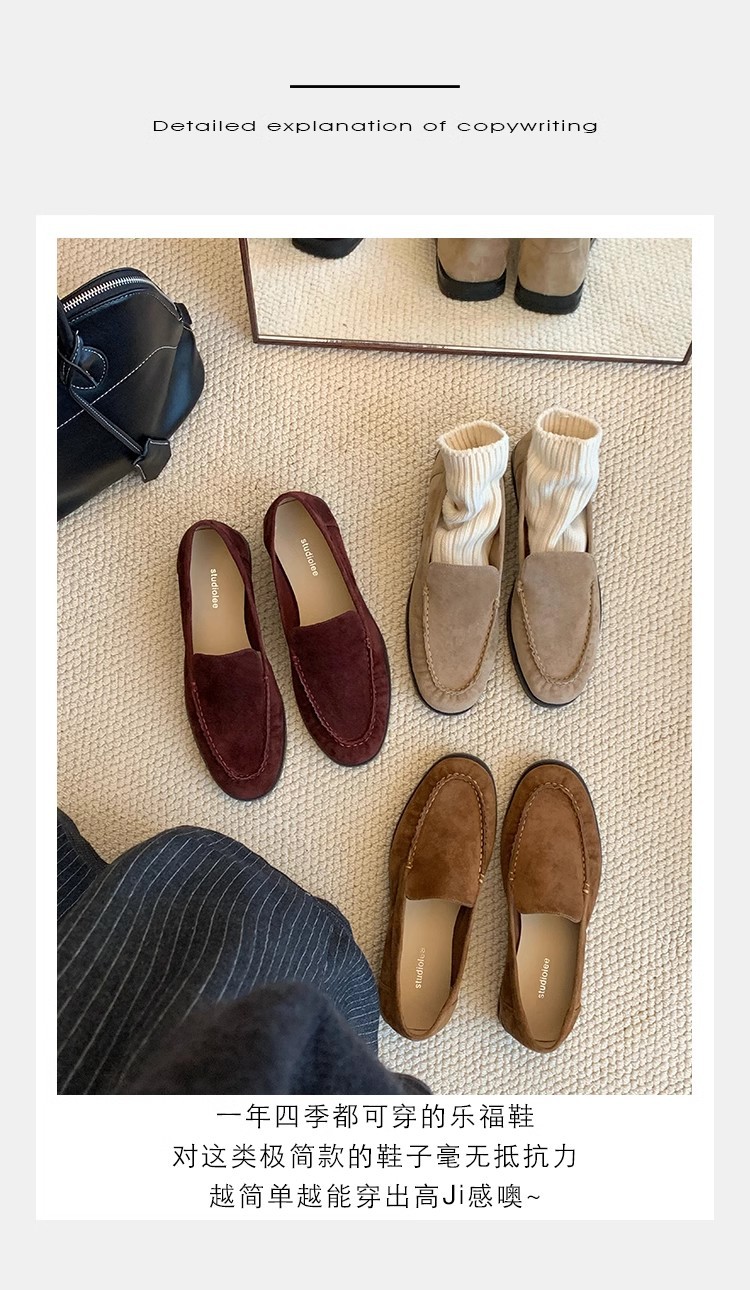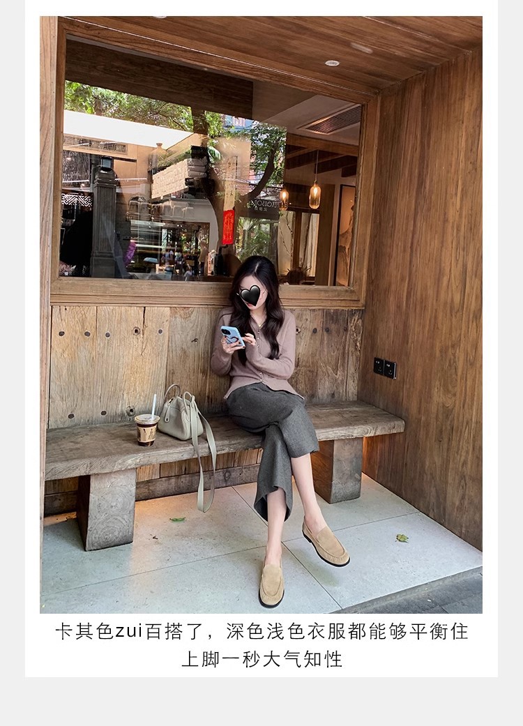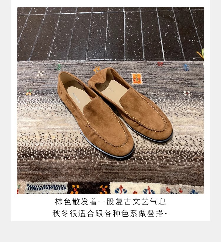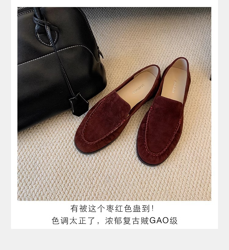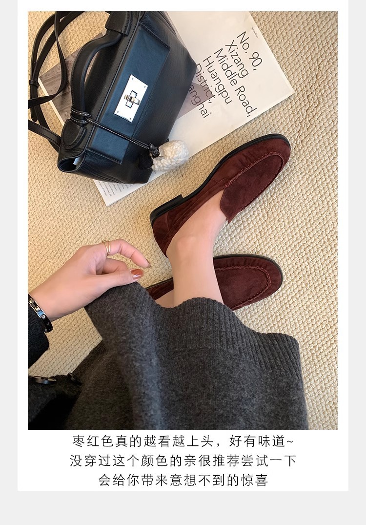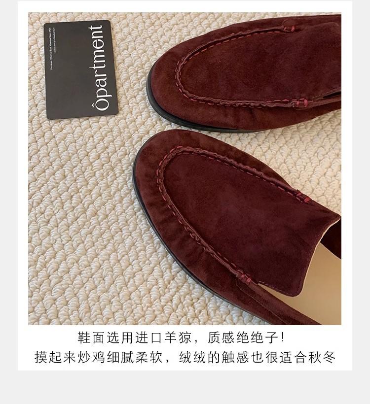 El nuevo otoño e invierno de Grape Mom es muy bueno para usar ~ Cabeza de oveja de punta redonda francesa, suela plana, zapato de amor perezoso, mujer