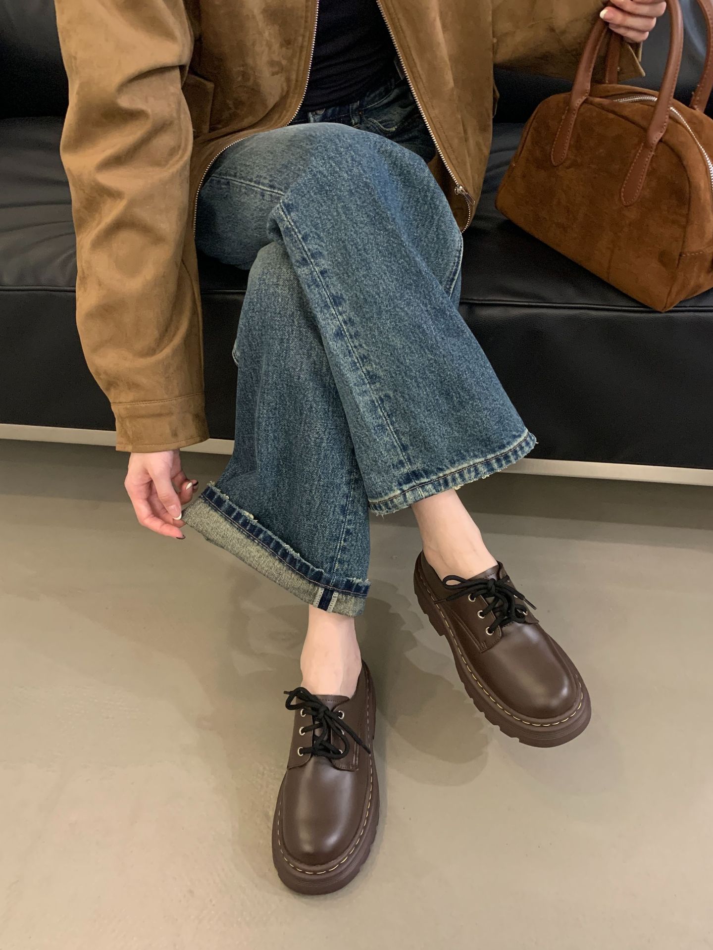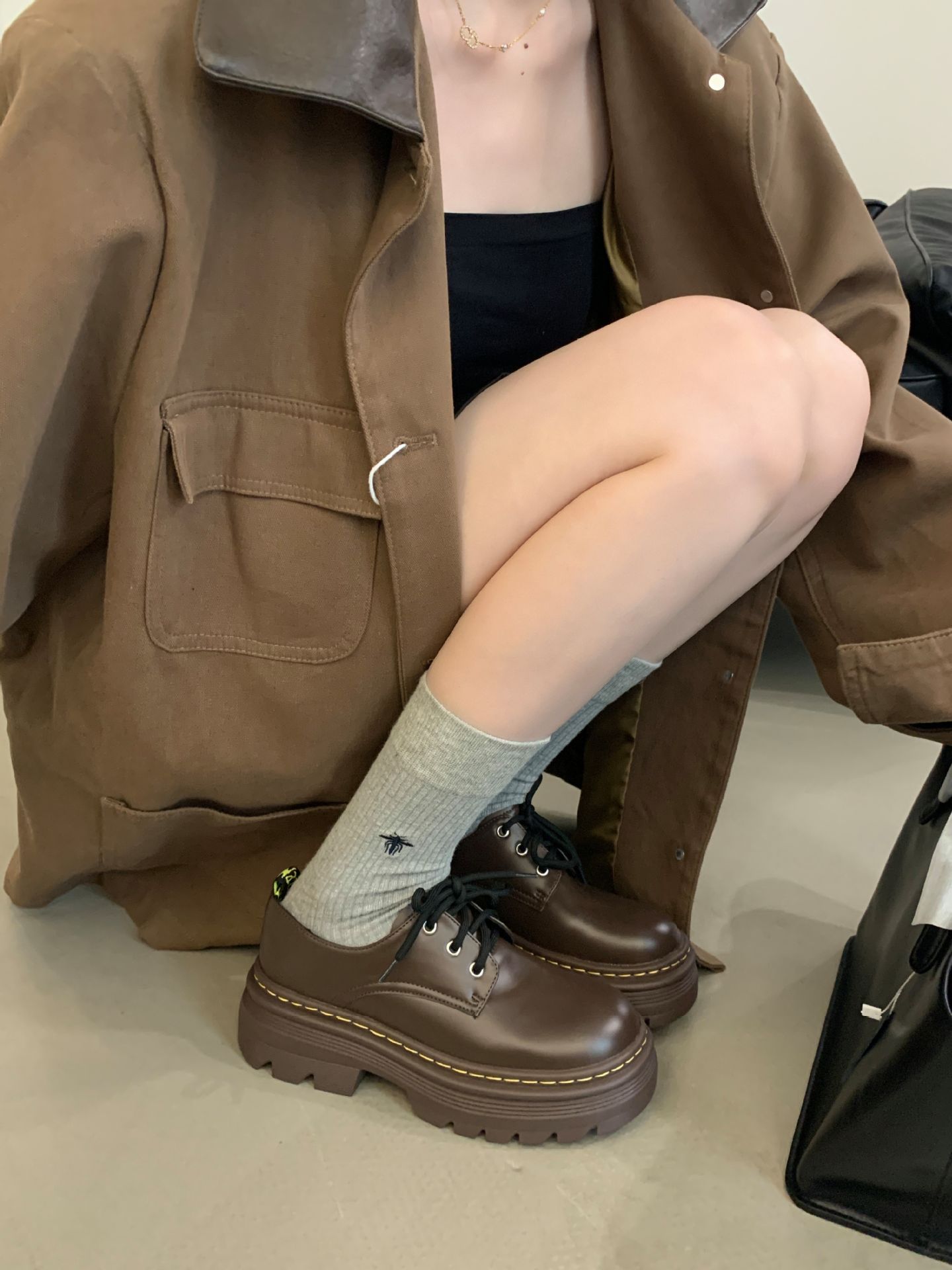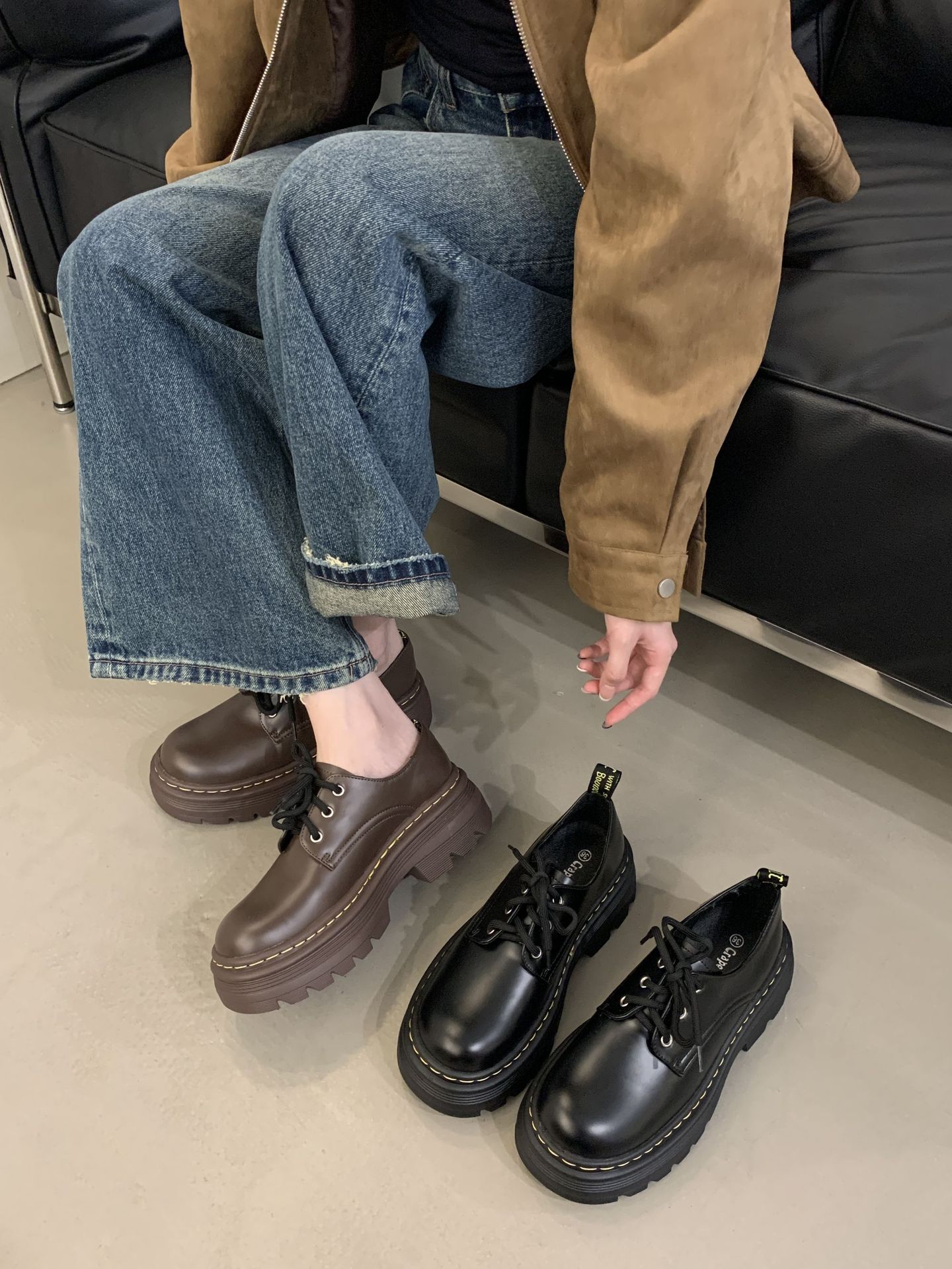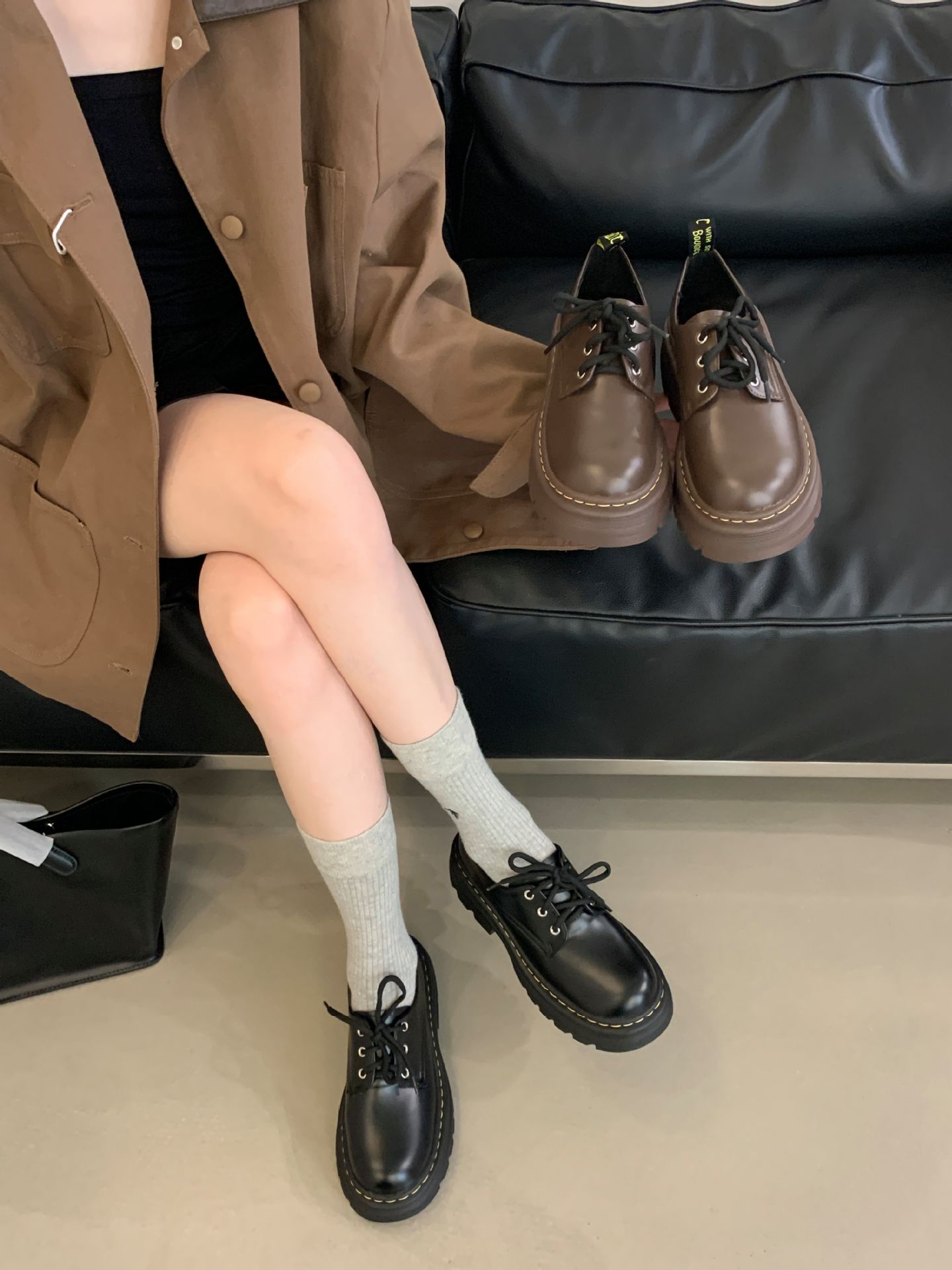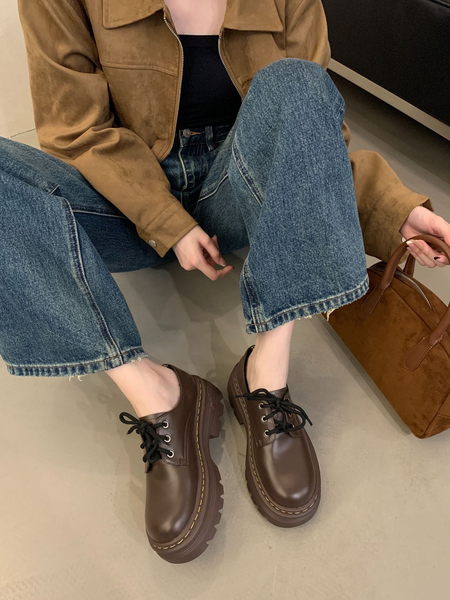 Grape Mom Otoño Nuevo estilo estilo británico con cordones para aumentar los zapatos Lofu de plataforma de tacón grueso Zapatos de cuero pequeños de punta redonda Otoño femenino