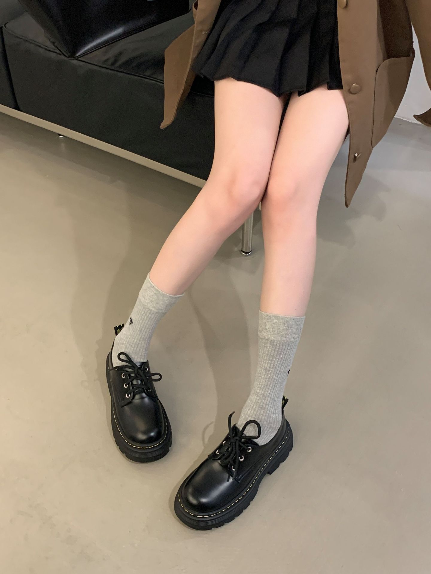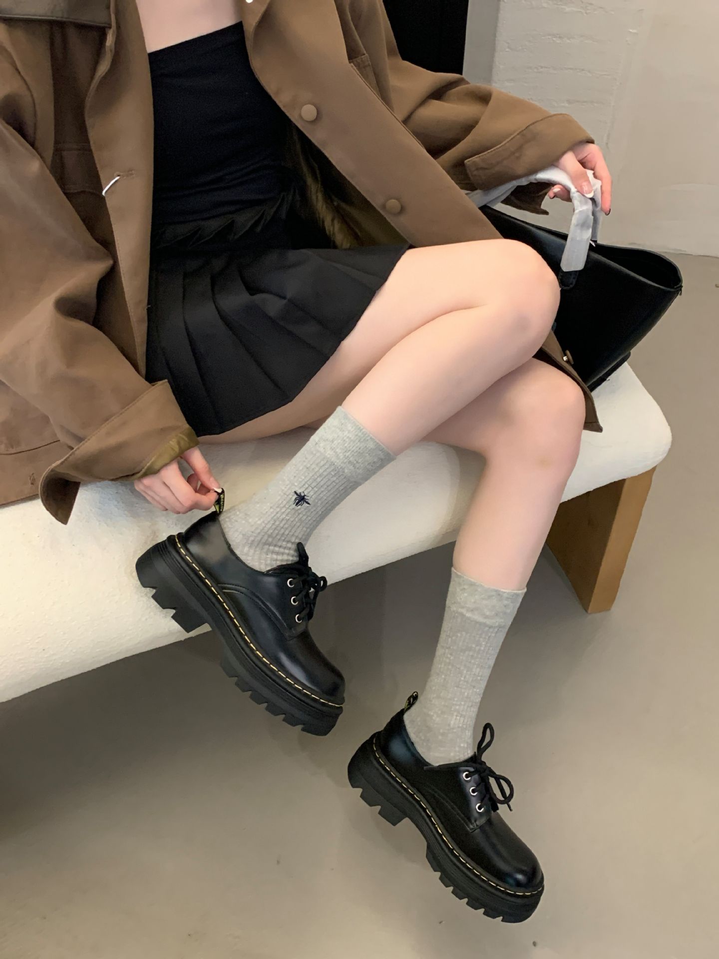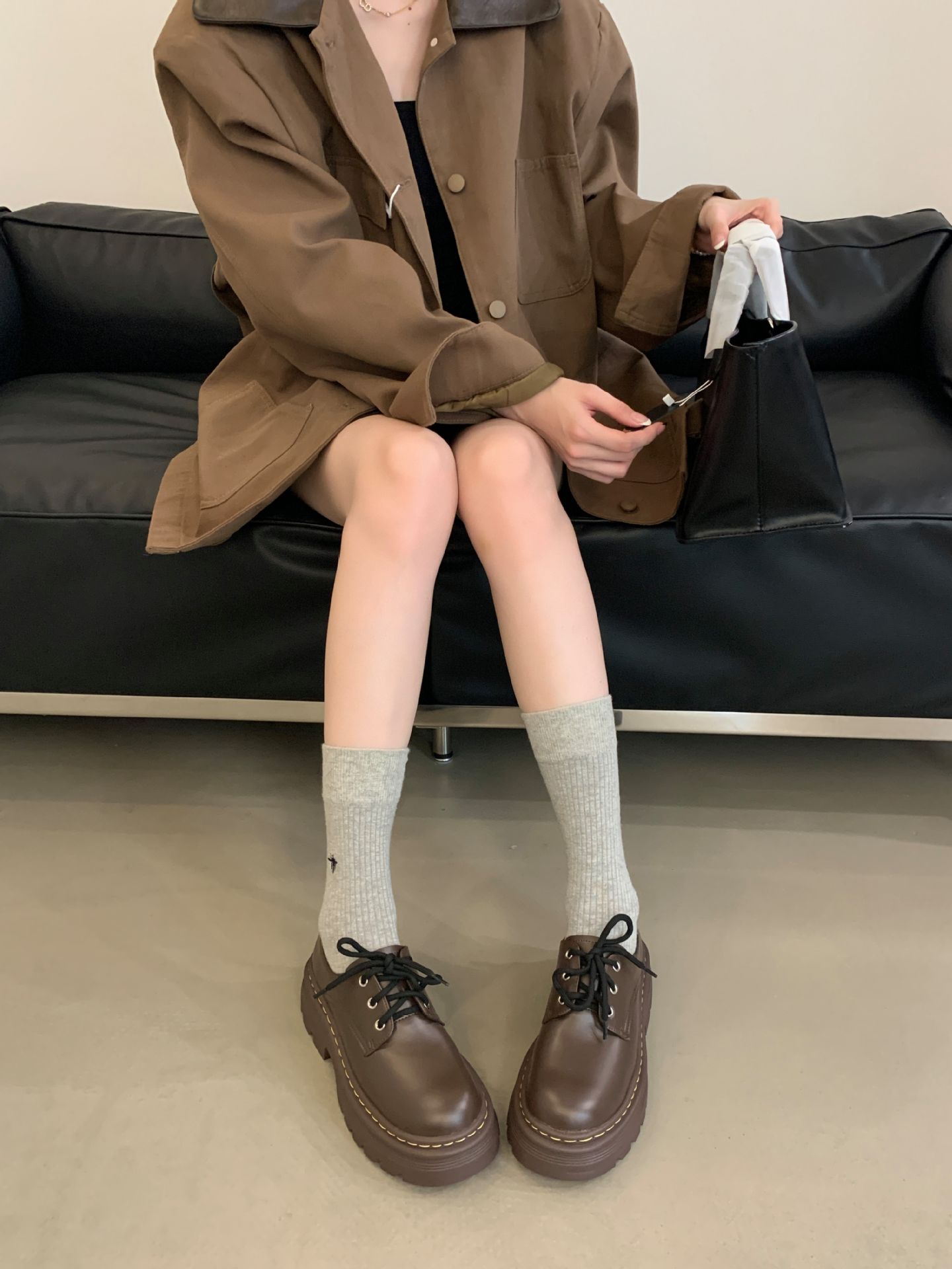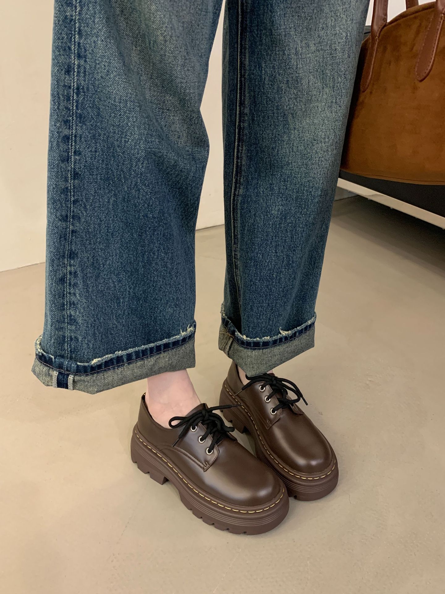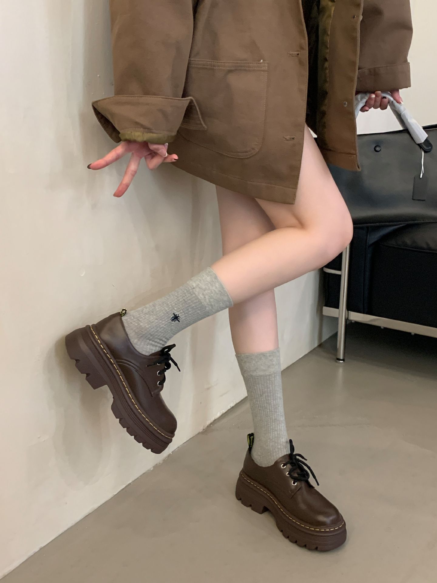 Grape Mom Otoño Nuevo estilo estilo británico con cordones para aumentar los zapatos Lofu de plataforma de tacón grueso Zapatos de cuero pequeños de punta redonda Otoño femenino