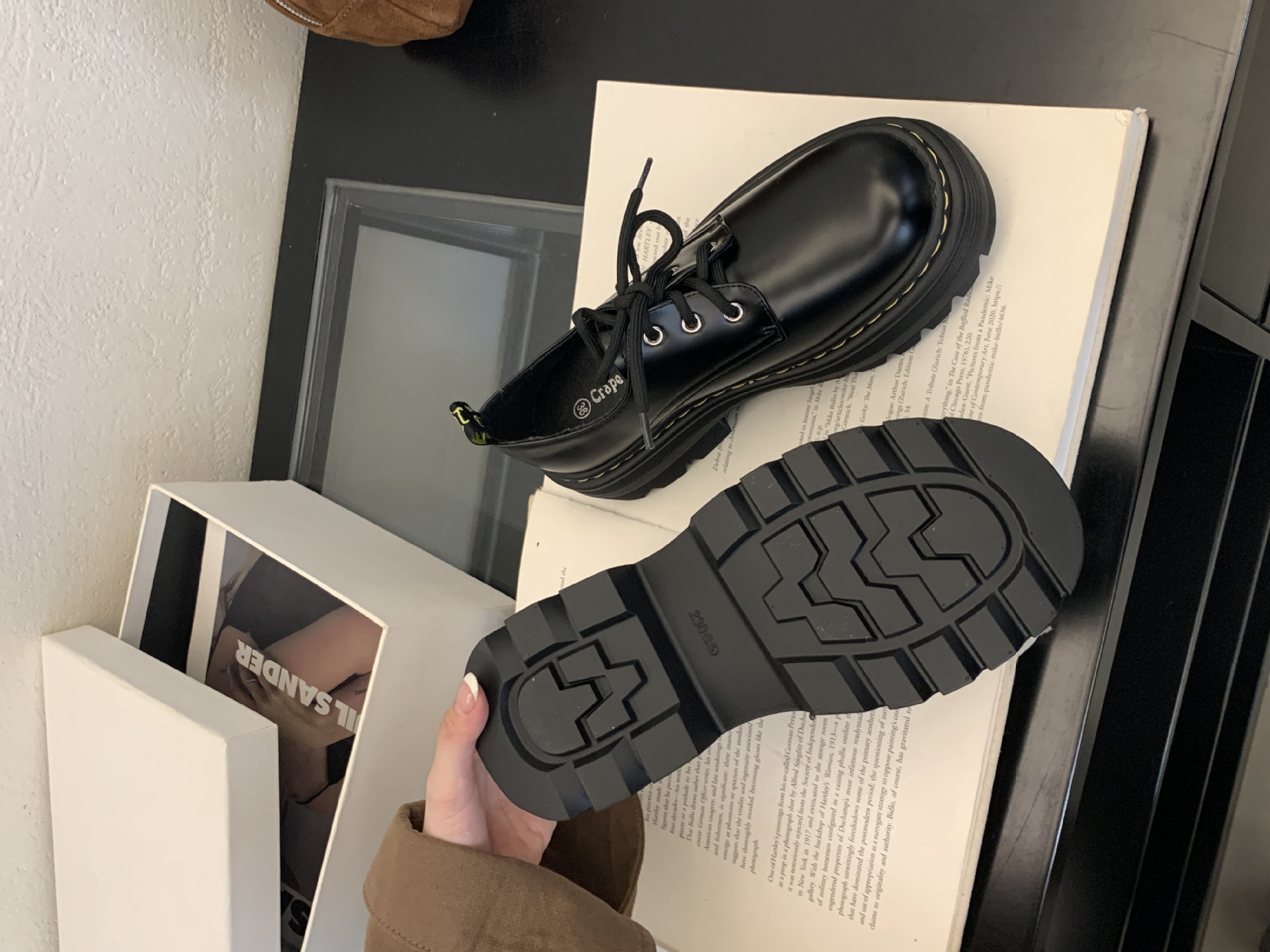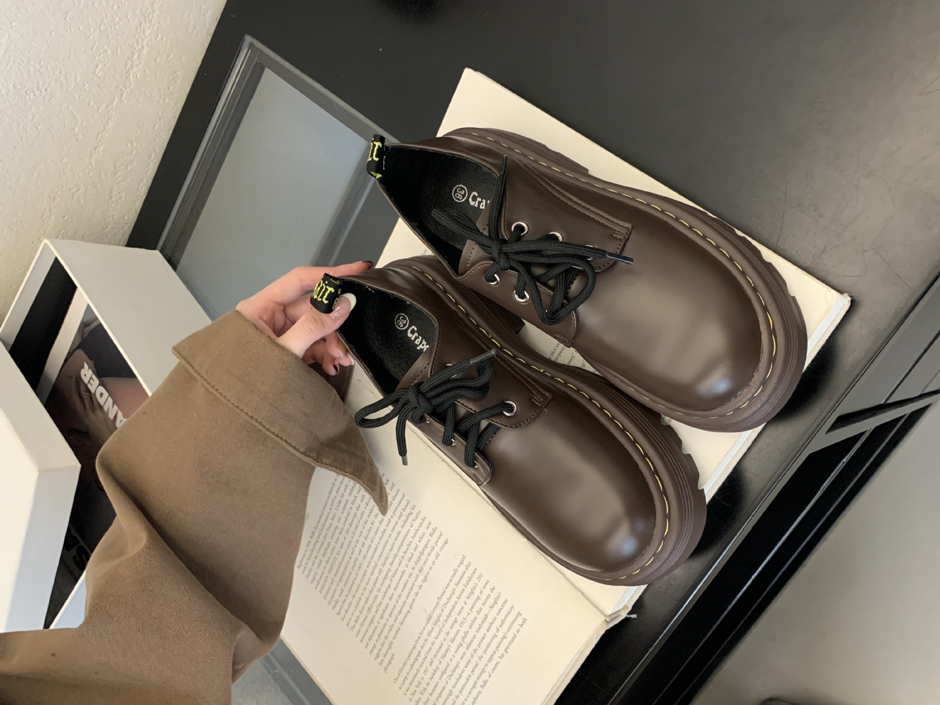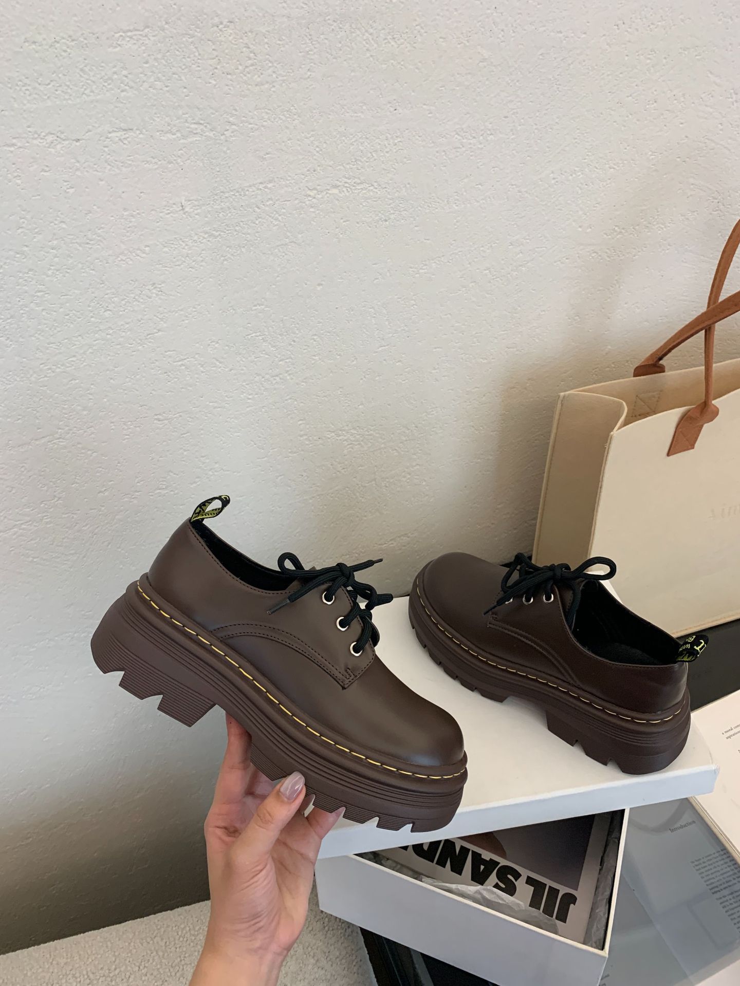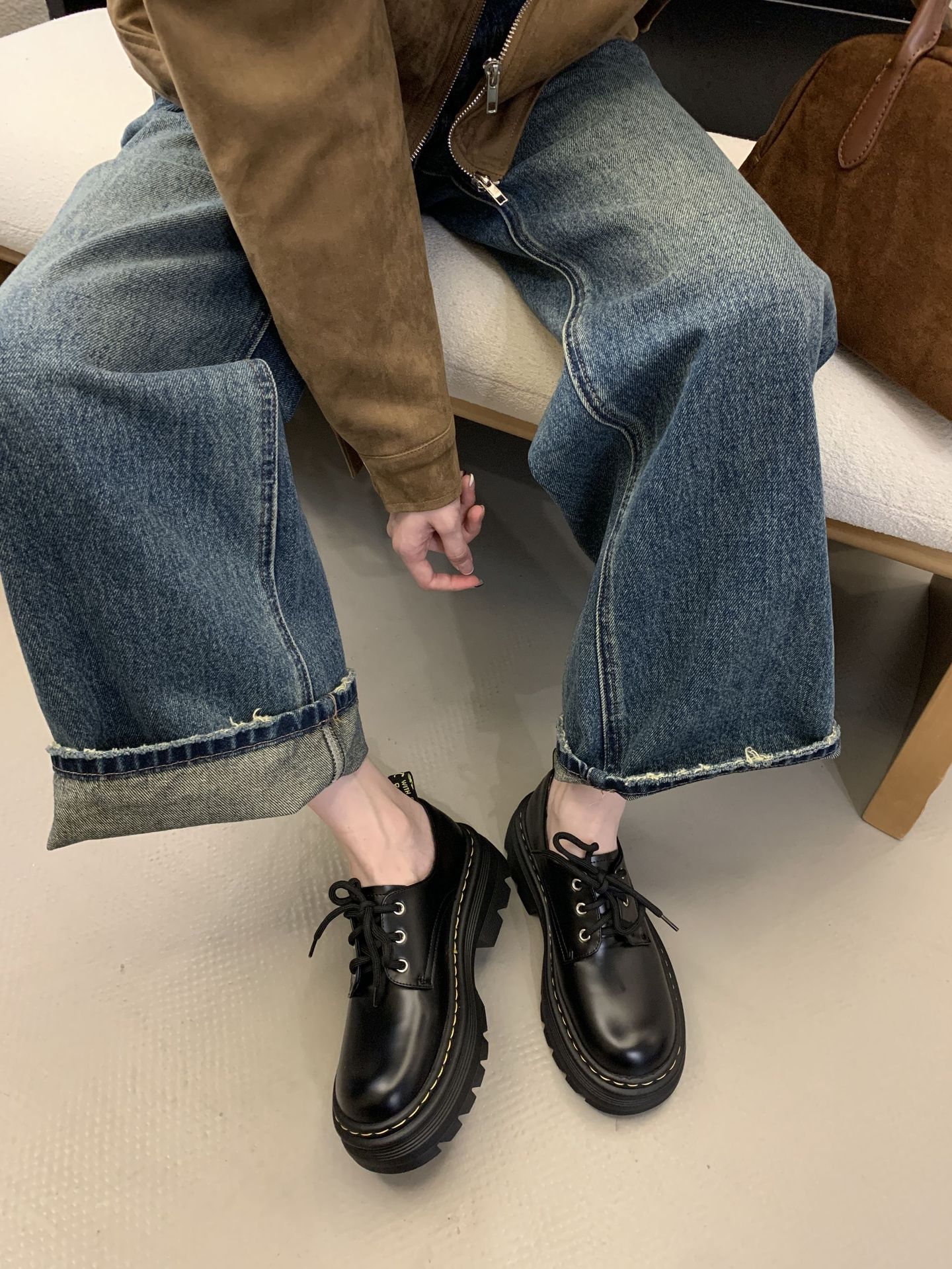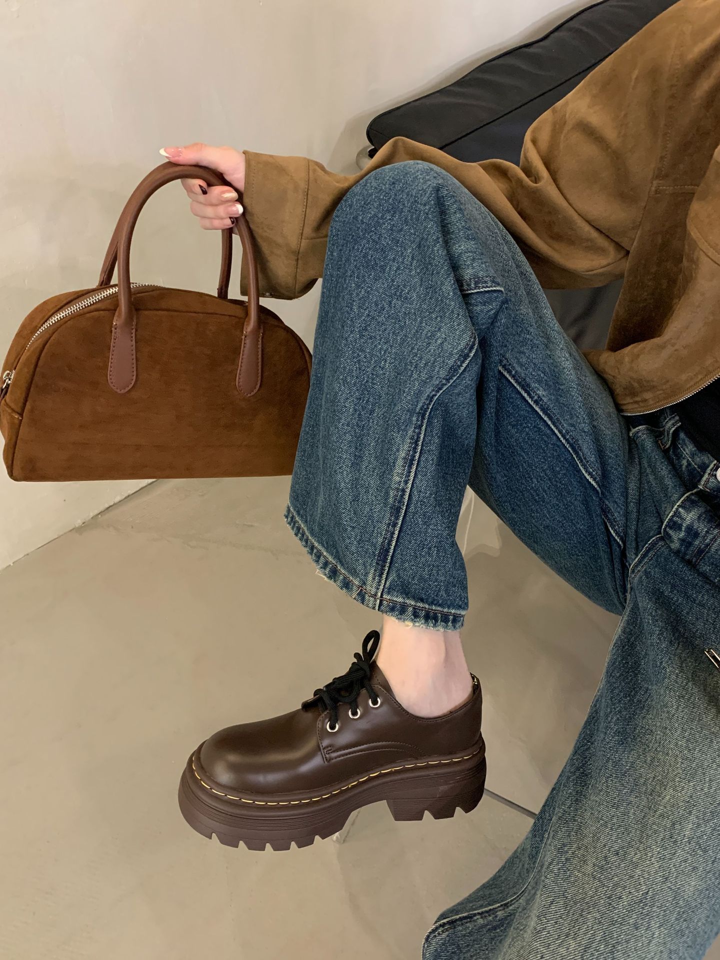 Grape Mom Otoño Nuevo estilo estilo británico con cordones para aumentar los zapatos Lofu de plataforma de tacón grueso Zapatos de cuero pequeños de punta redonda Otoño femenino