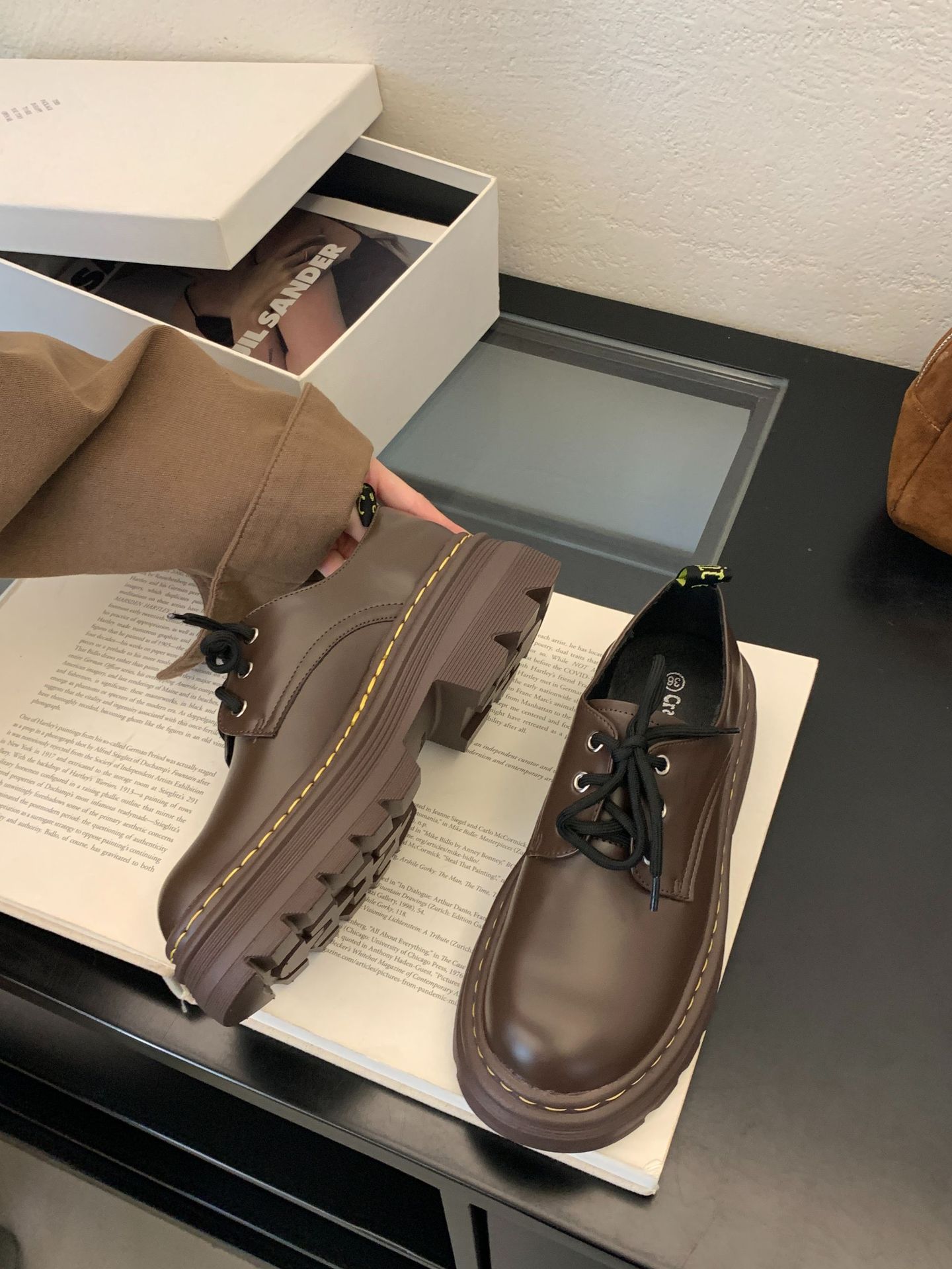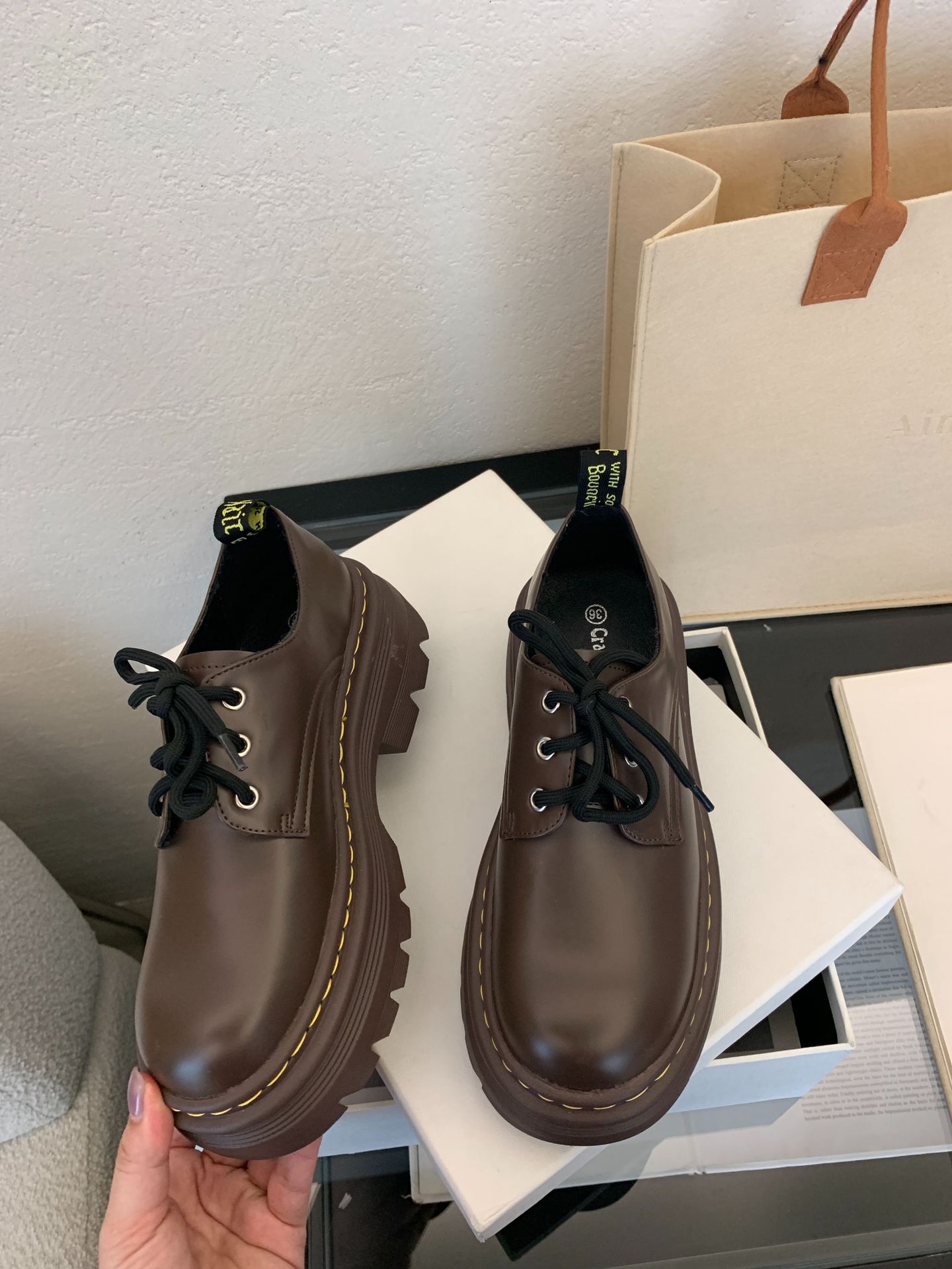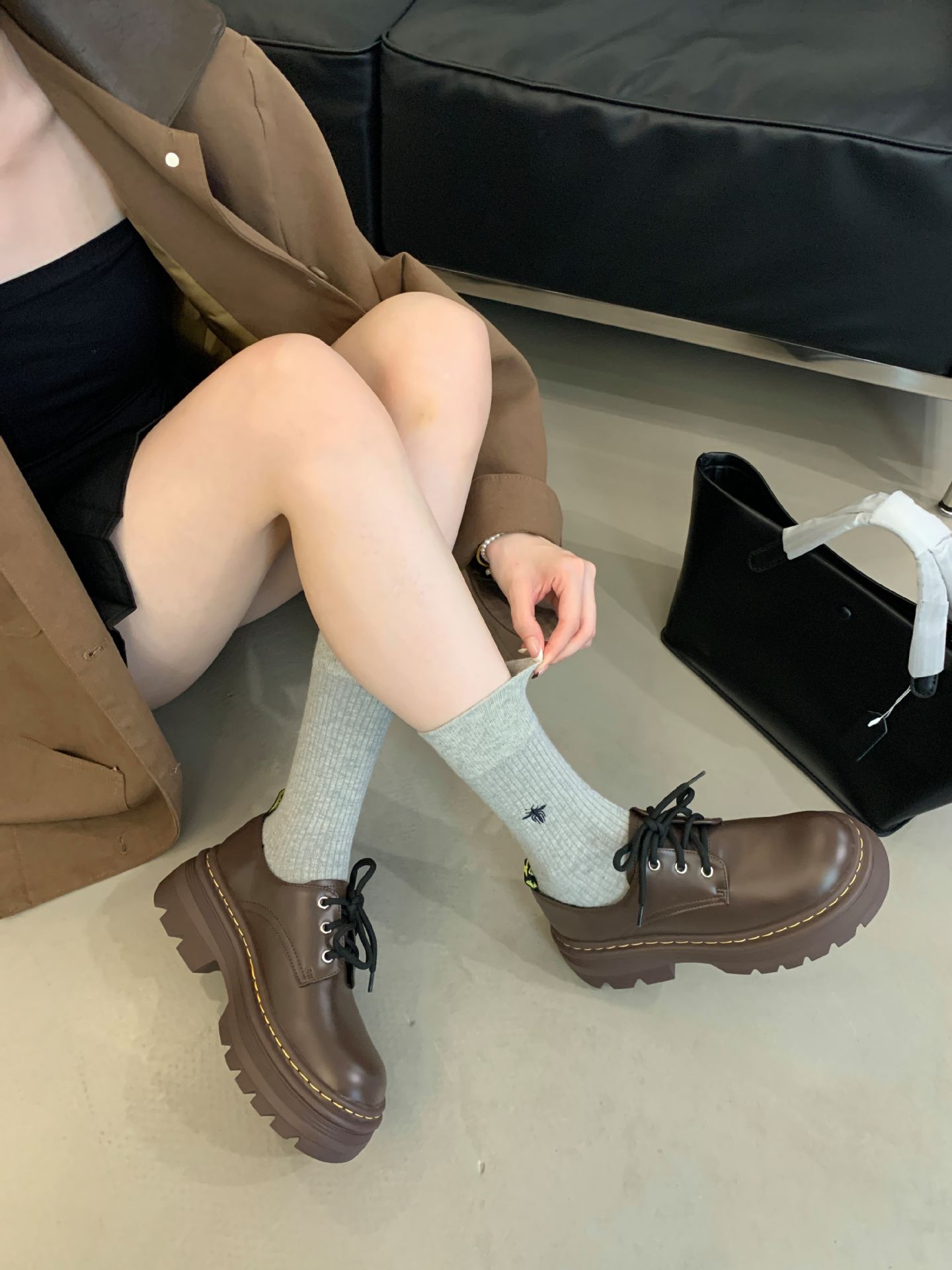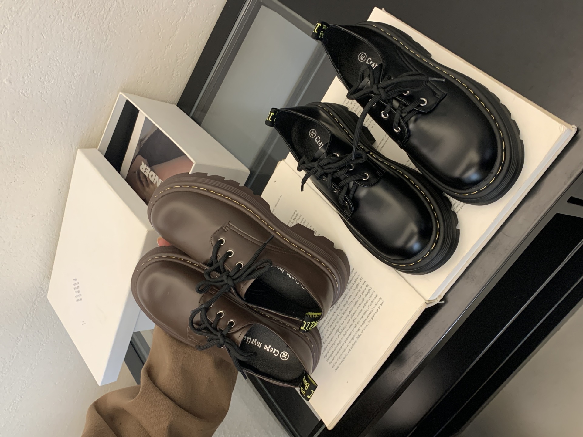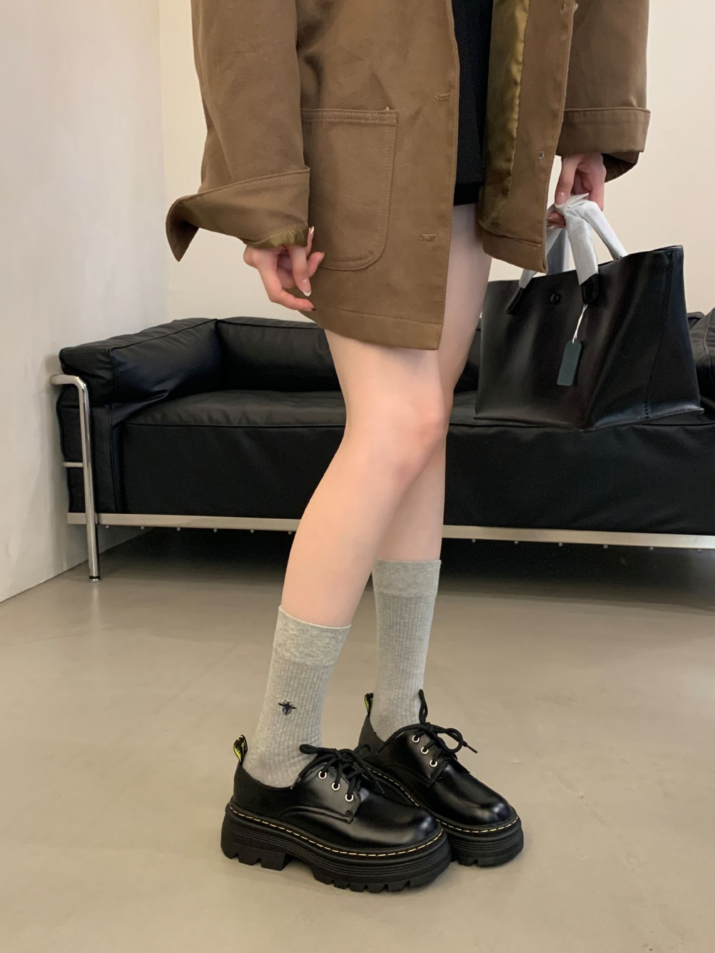 Grape Mom Otoño Nuevo estilo estilo británico con cordones para aumentar los zapatos Lofu de plataforma de tacón grueso Zapatos de cuero pequeños de punta redonda Otoño femenino