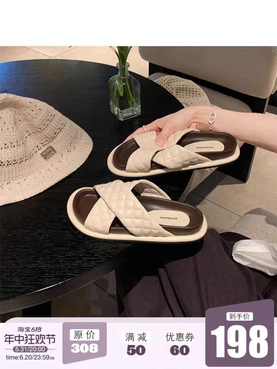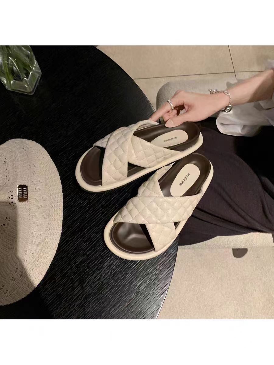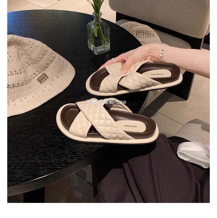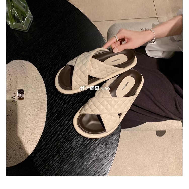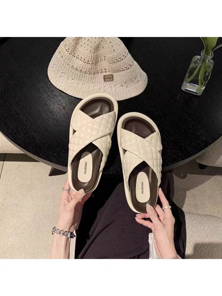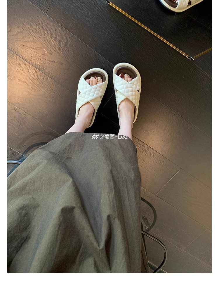 Grape Mom Summer New Cloud Puffs ~ Sandalias y pantuflas de suela gruesa con banda cruzada de rombo ceroso suave a juego