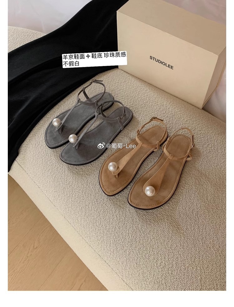 Uvas de la uva de la perla blanca de la perla simple clip de pie con sandalias de fondo plano en T para mujeres