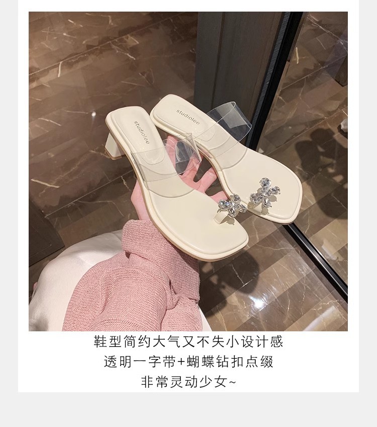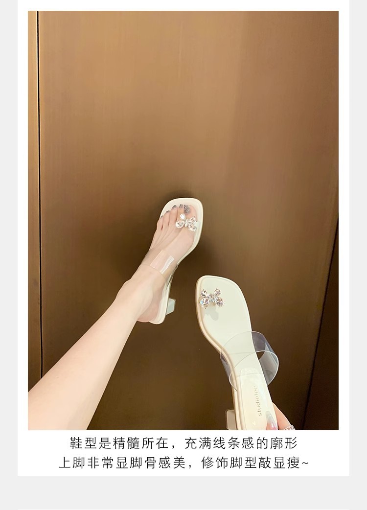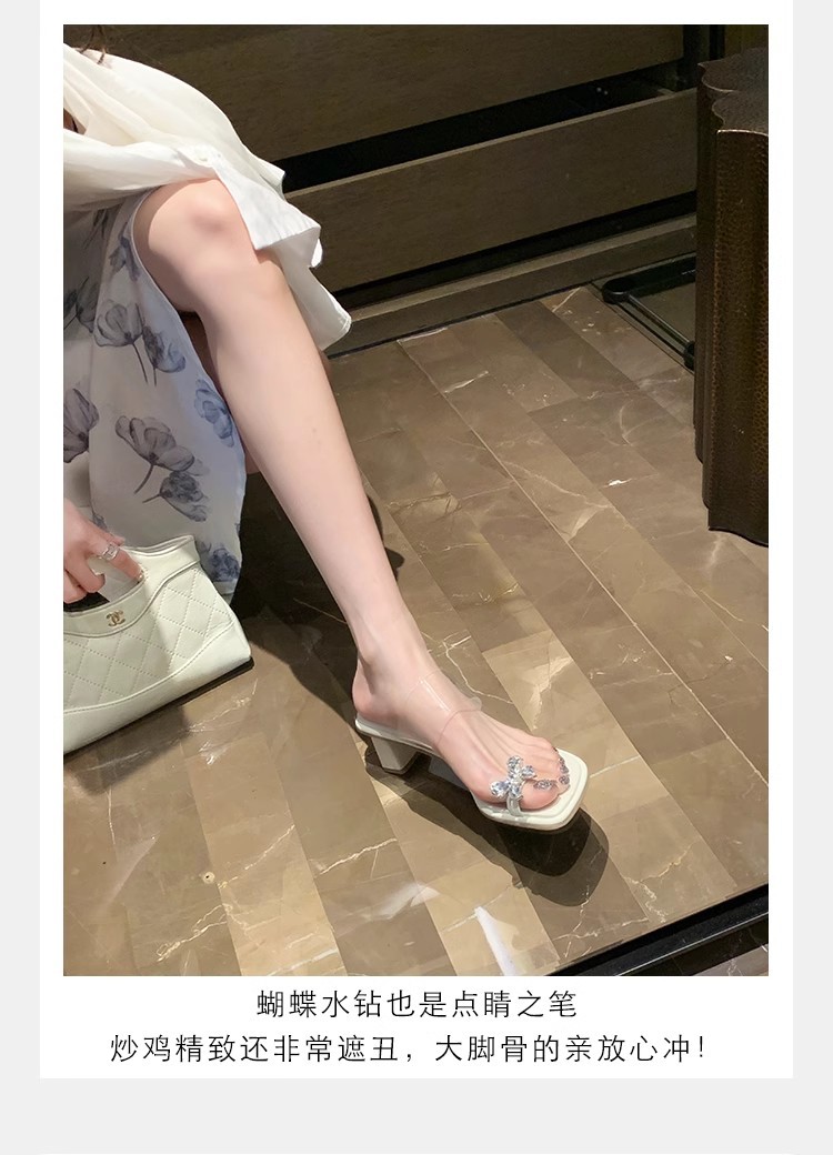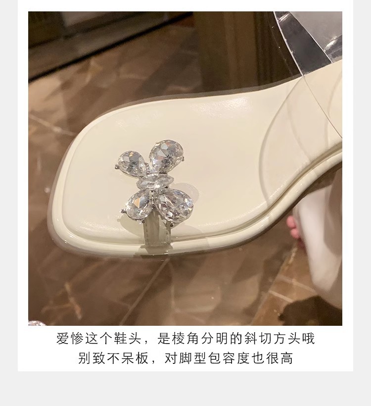 Grava Madre nueva mariposa delicada agua de diamante temperamento cuadrado con zapatillas frías de tacón alto transparentes para mujeres de verano