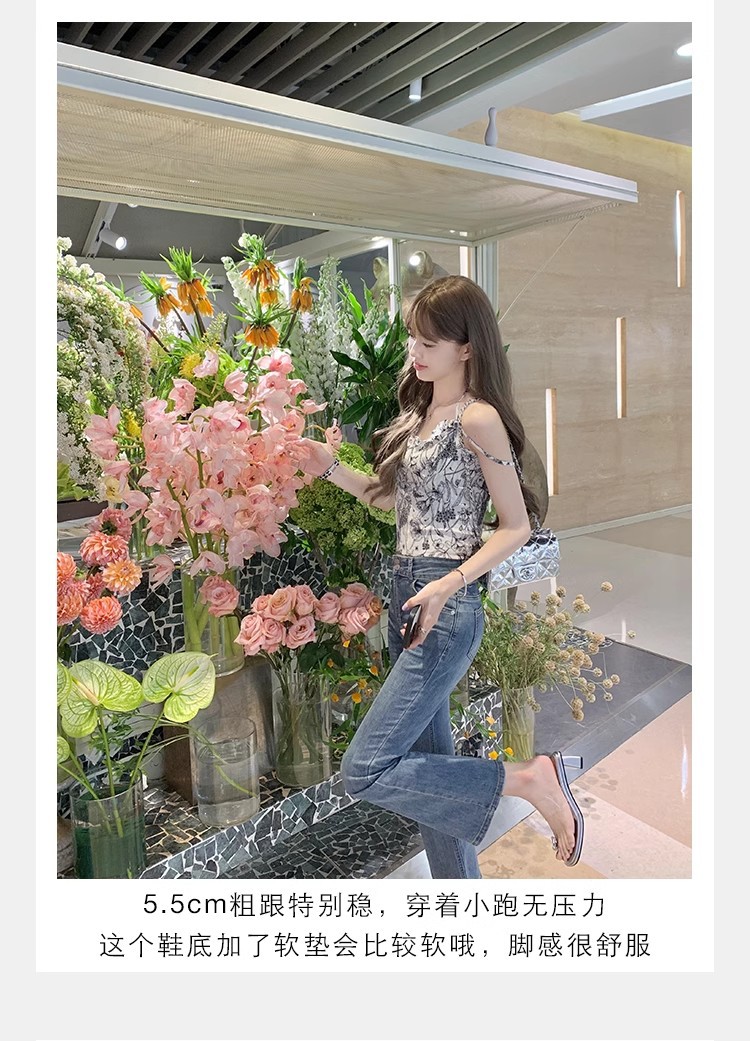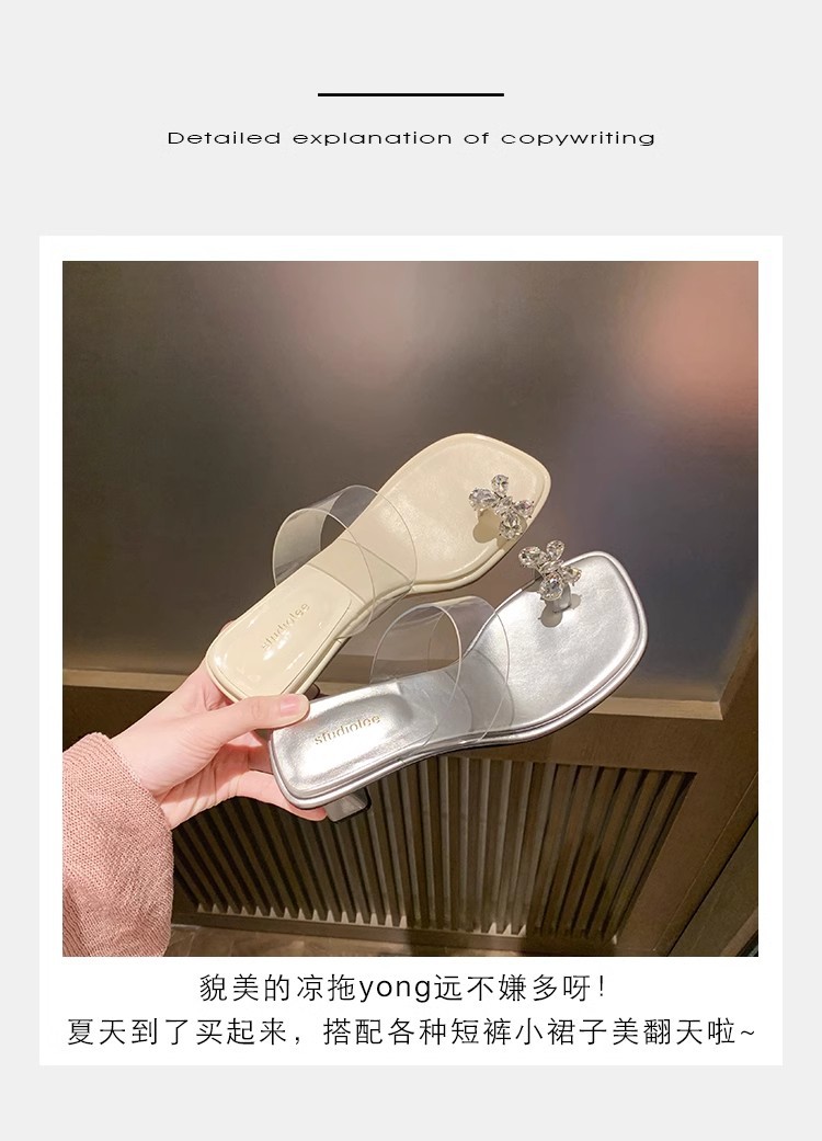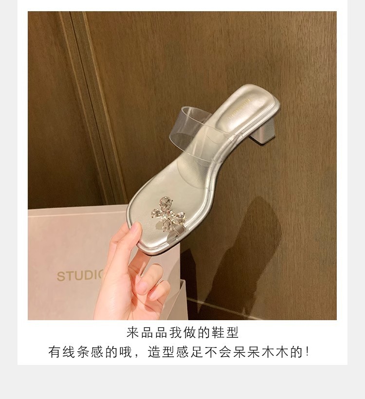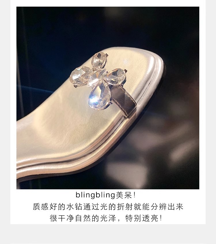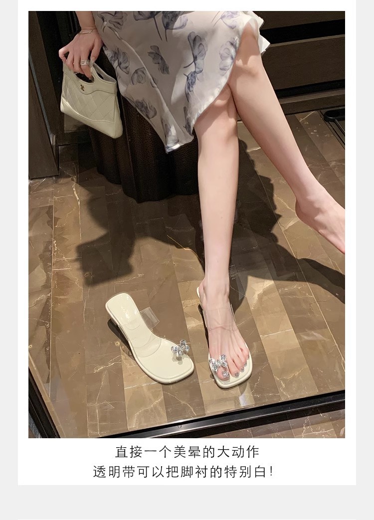Grava Madre nueva mariposa delicada agua de diamante temperamento cuadrado con zapatillas frías de tacón alto transparentes para mujeres de verano