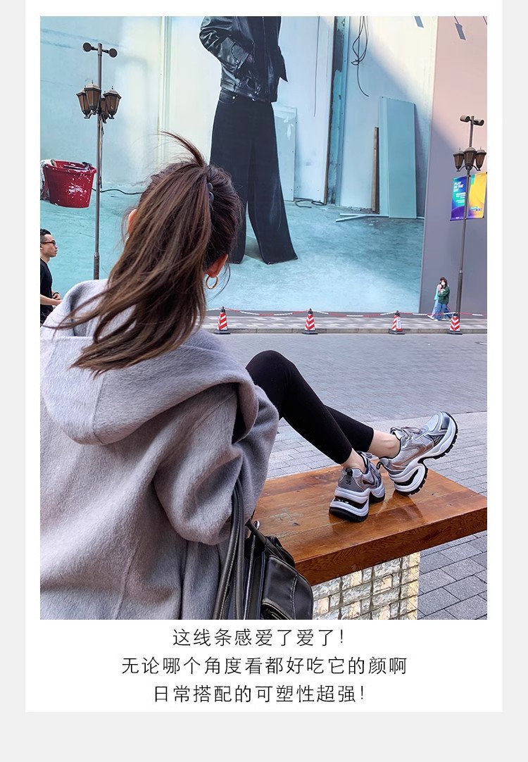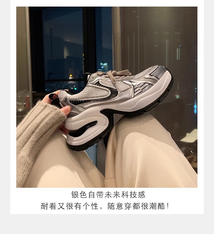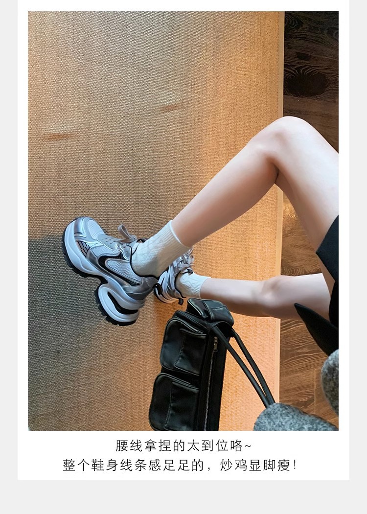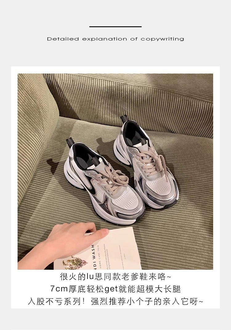 Grape Mom El mismo estilo de moda de verano con cordones, zapatos deportivos casuales, malla transpirable, suela gruesa, zapatos de papá altos, mujeres