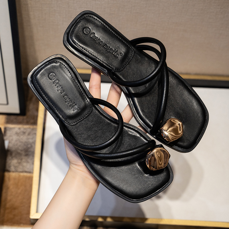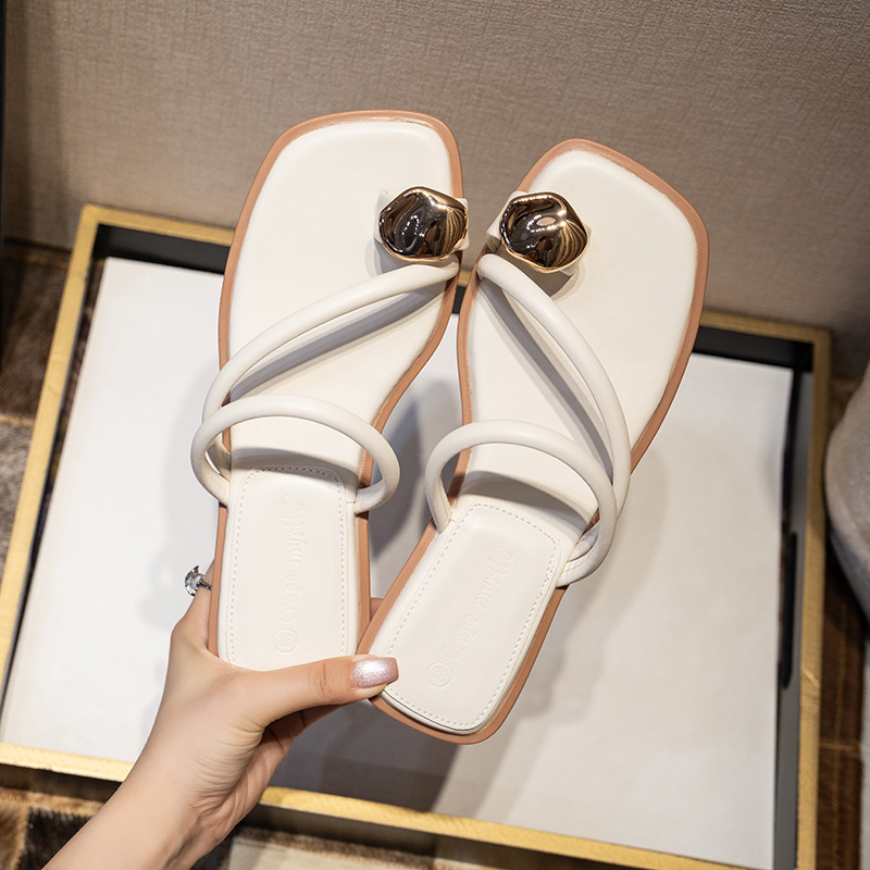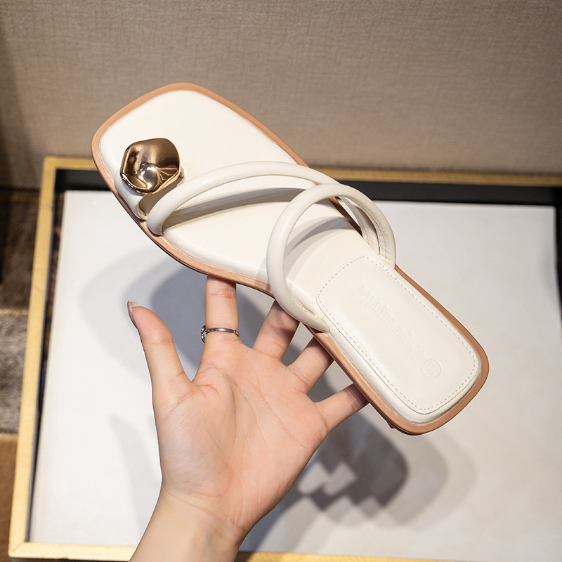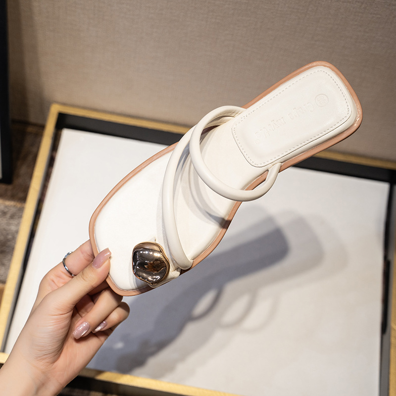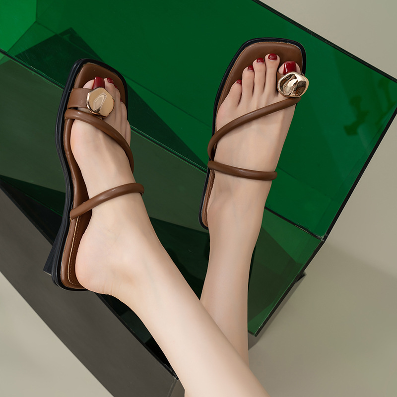 Sandalias planas de una pieza con puntera cuadrada, decorativas de metal, estilo francés, estilo veraniego 2024 para mujer