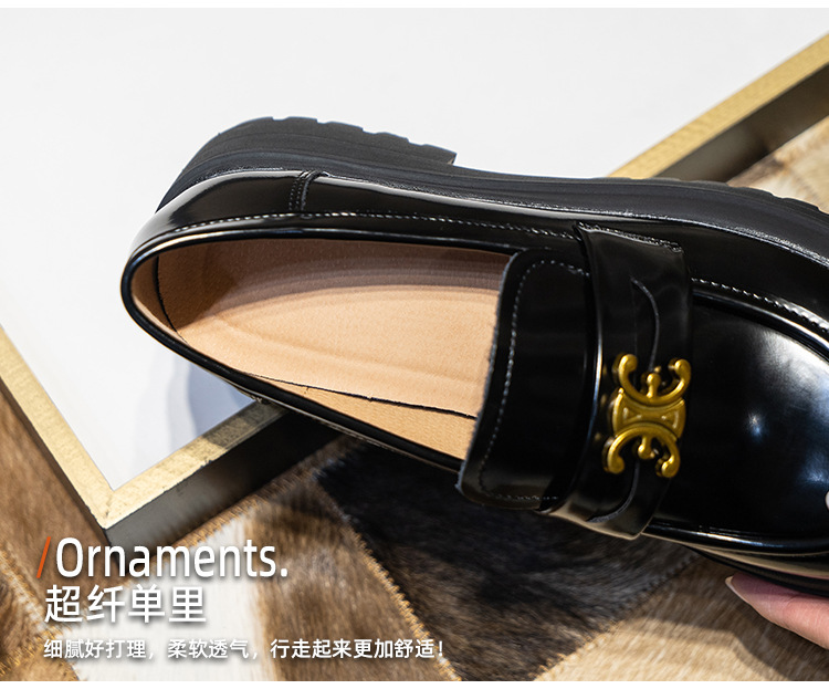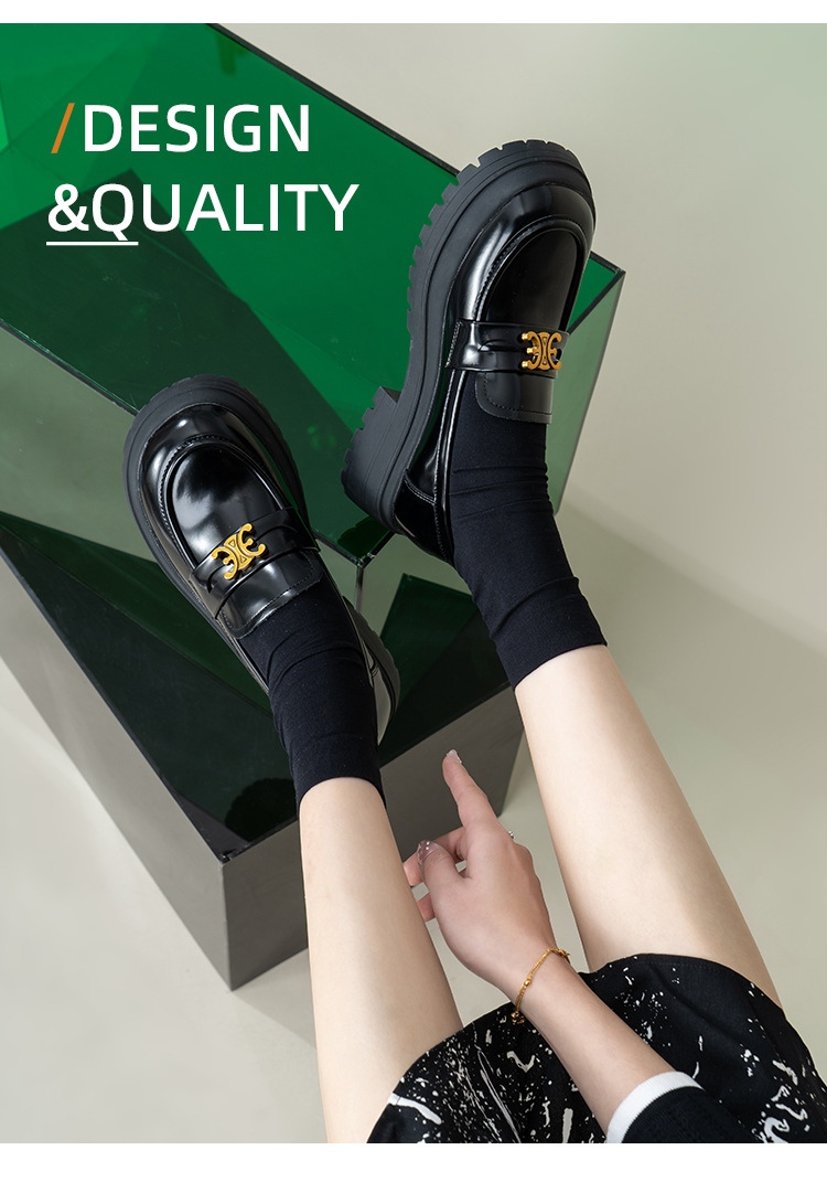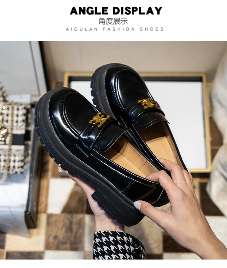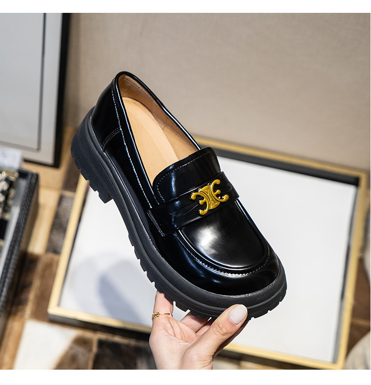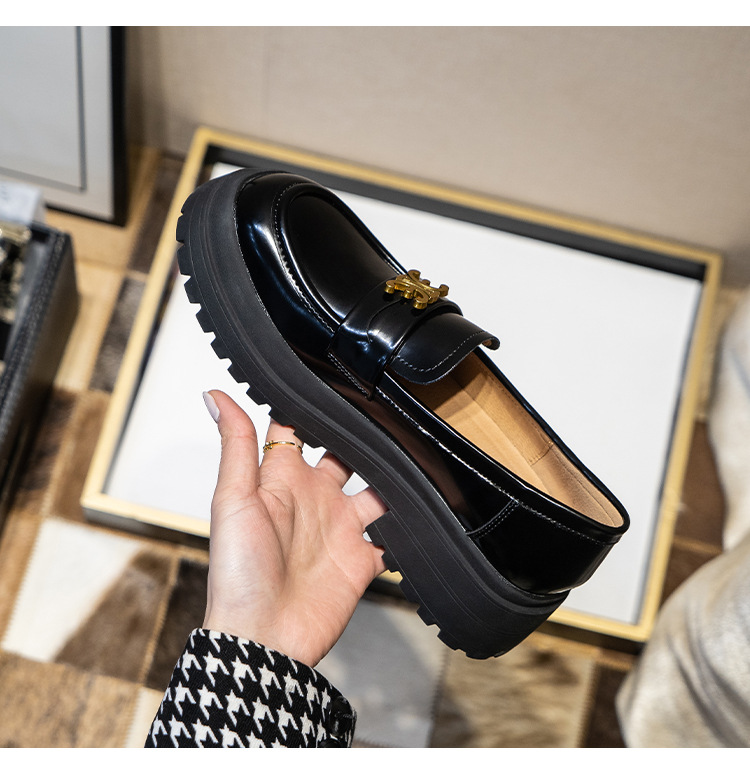 Mocasines de suela gruesa con hebilla dorada y punta redonda de cuero genuino para mujer, zapatos planos informales y versátiles, primavera 2025.