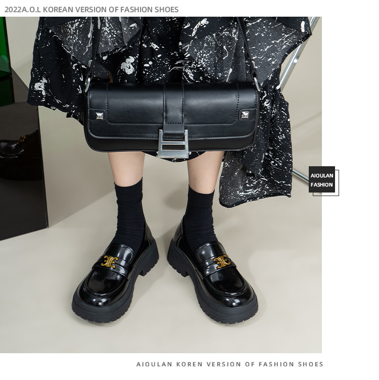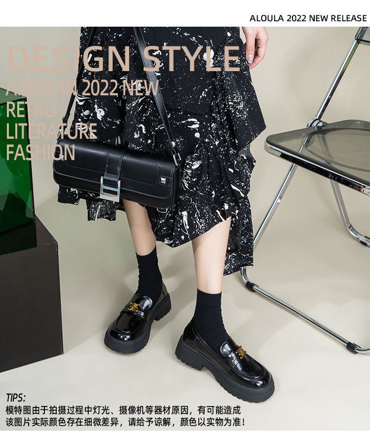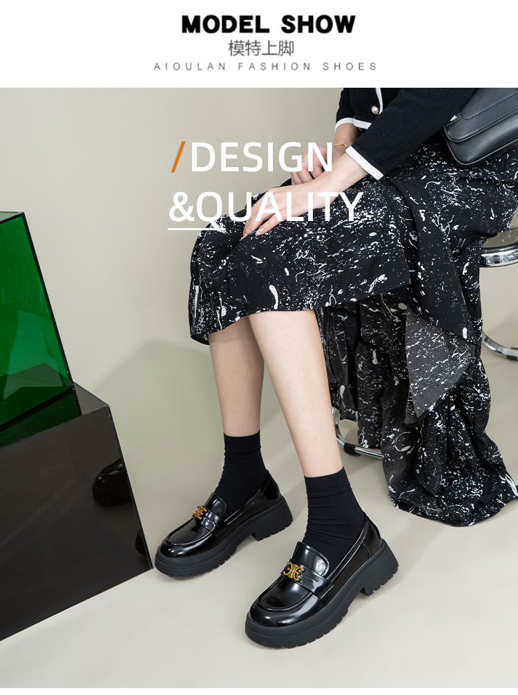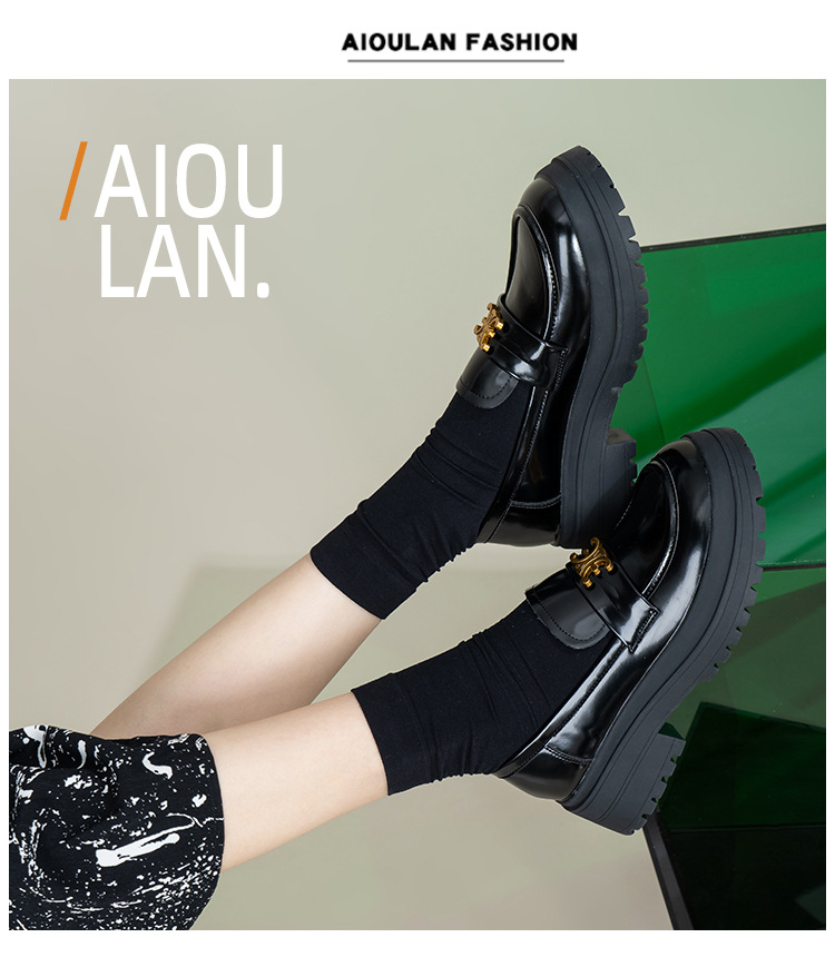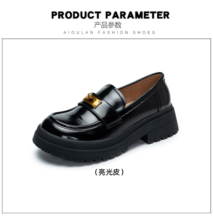 Mocasines de suela gruesa con hebilla dorada y punta redonda de cuero genuino para mujer, zapatos planos informales y versátiles, primavera 2025.