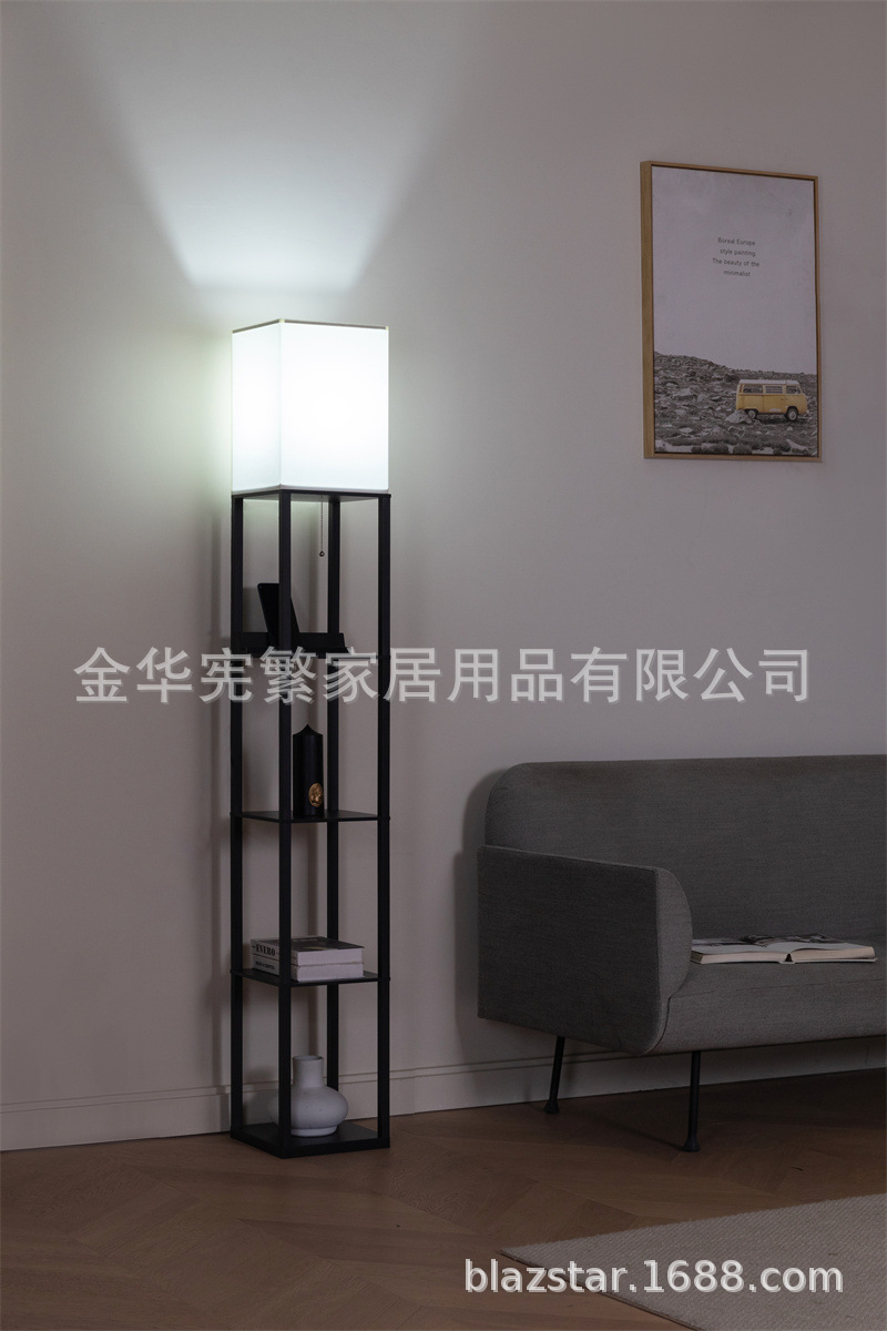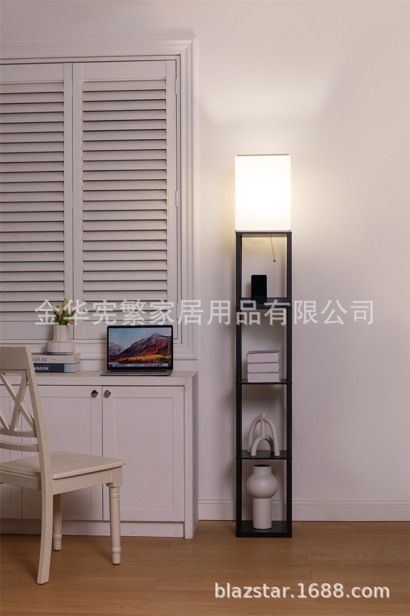 Transfronterizo Amazon Temu tubo cuadrado cubierta de tela lámpara de pie de 5 capas con USB lado del sofá estante del Gabinete lámpara de tracción decorativa