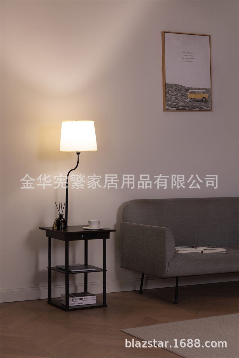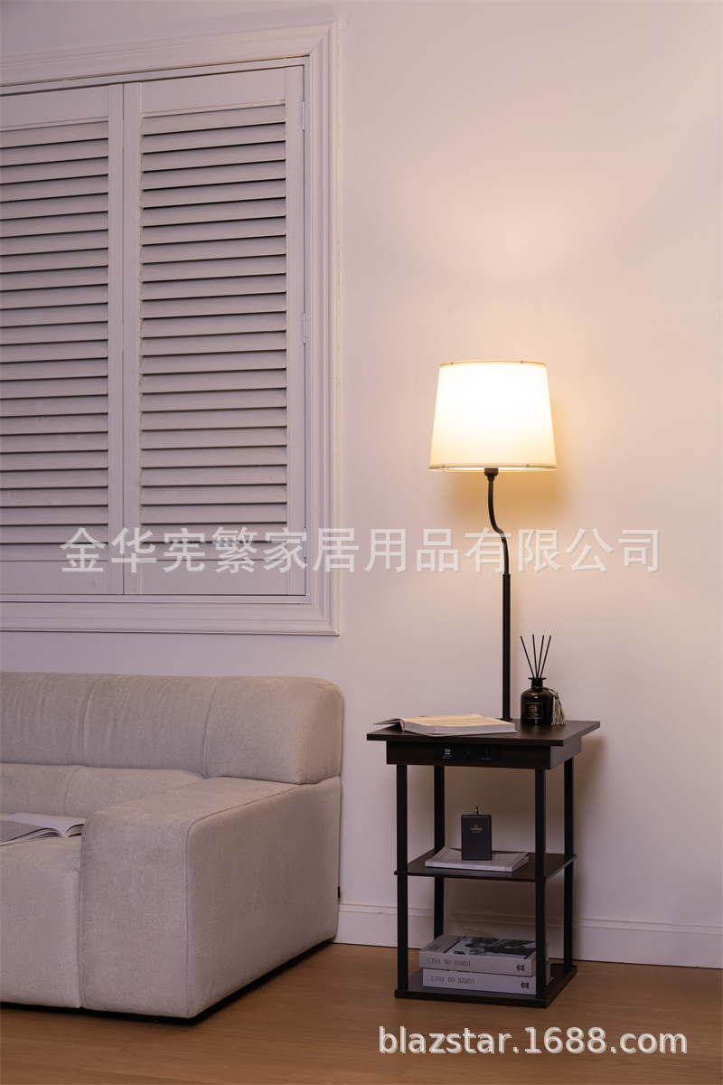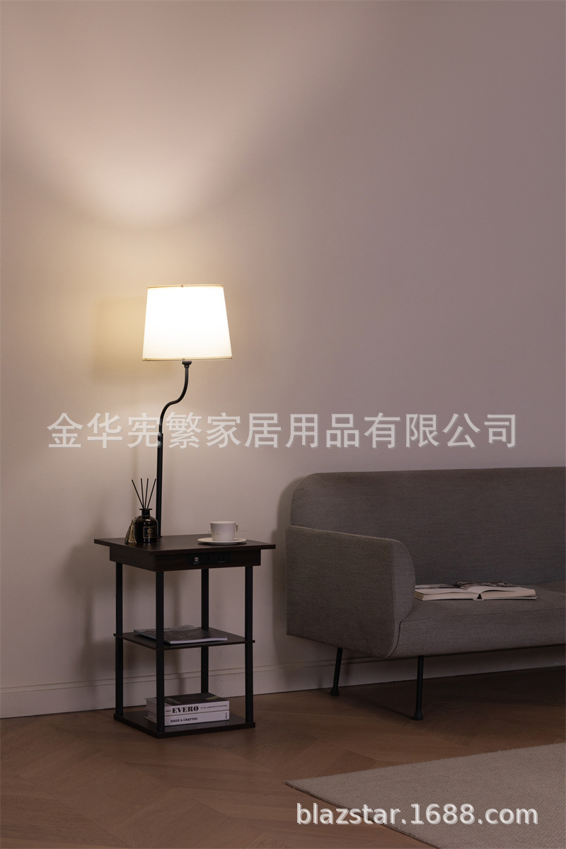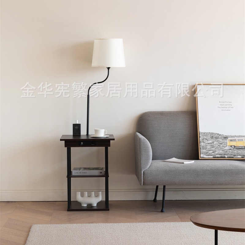Amazon Temu transfronteriza Europea y Americana cubierta de tela lámpara de pie dormitorio sala de estar sofá de noche lado estante de almacenamiento del Gabinete USB