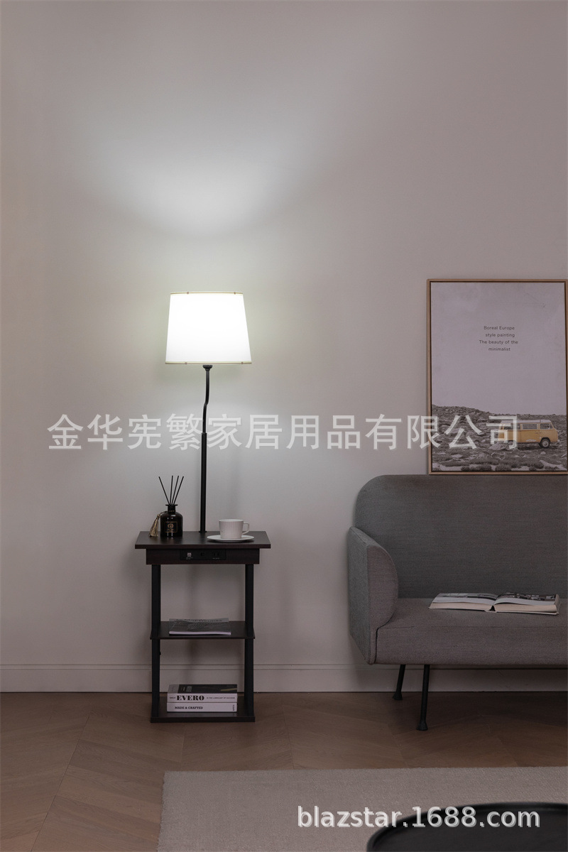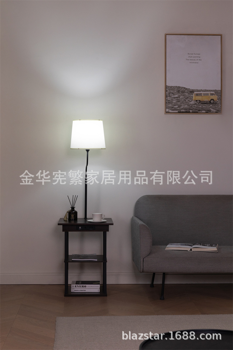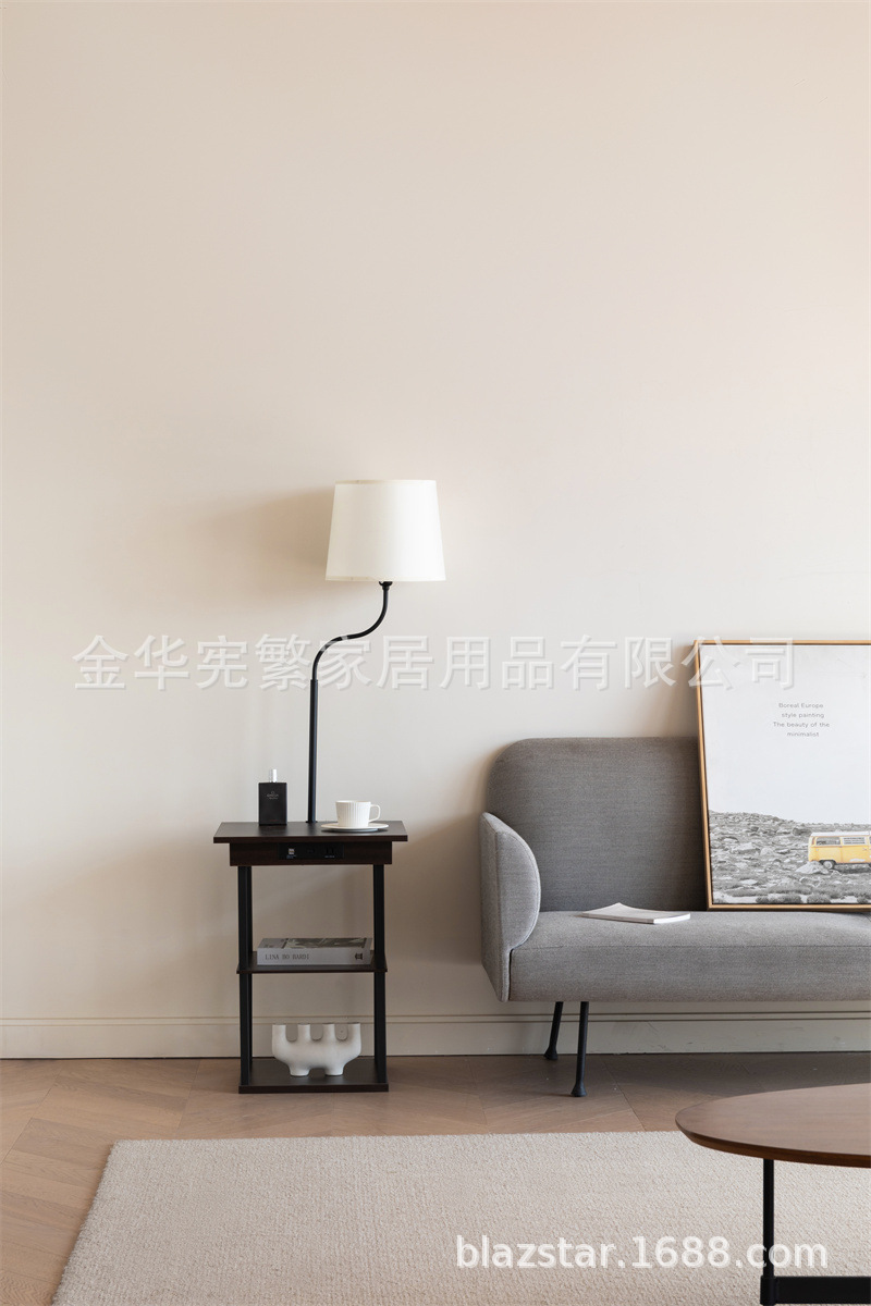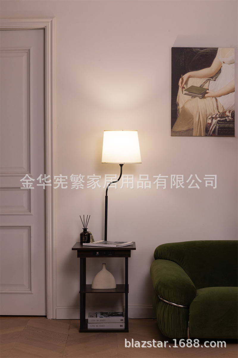 Amazon Temu transfronteriza Europea y Americana cubierta de tela lámpara de pie dormitorio sala de estar sofá de noche lado estante de almacenamiento del Gabinete USB