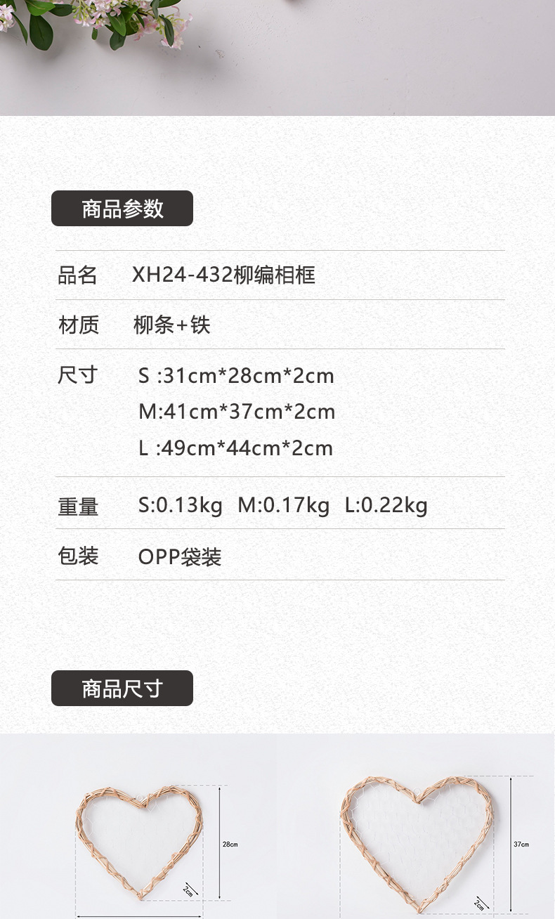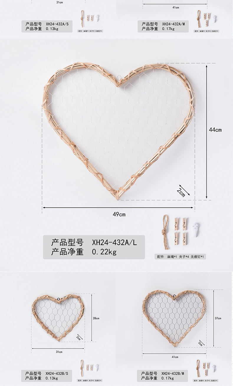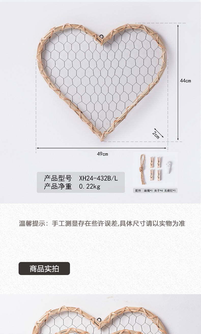 Marco de fotos decorativo tejido a mano en forma de corazón Advanced Advanced Interior Photo Decoration Pared de fotos colgante simple y creativo