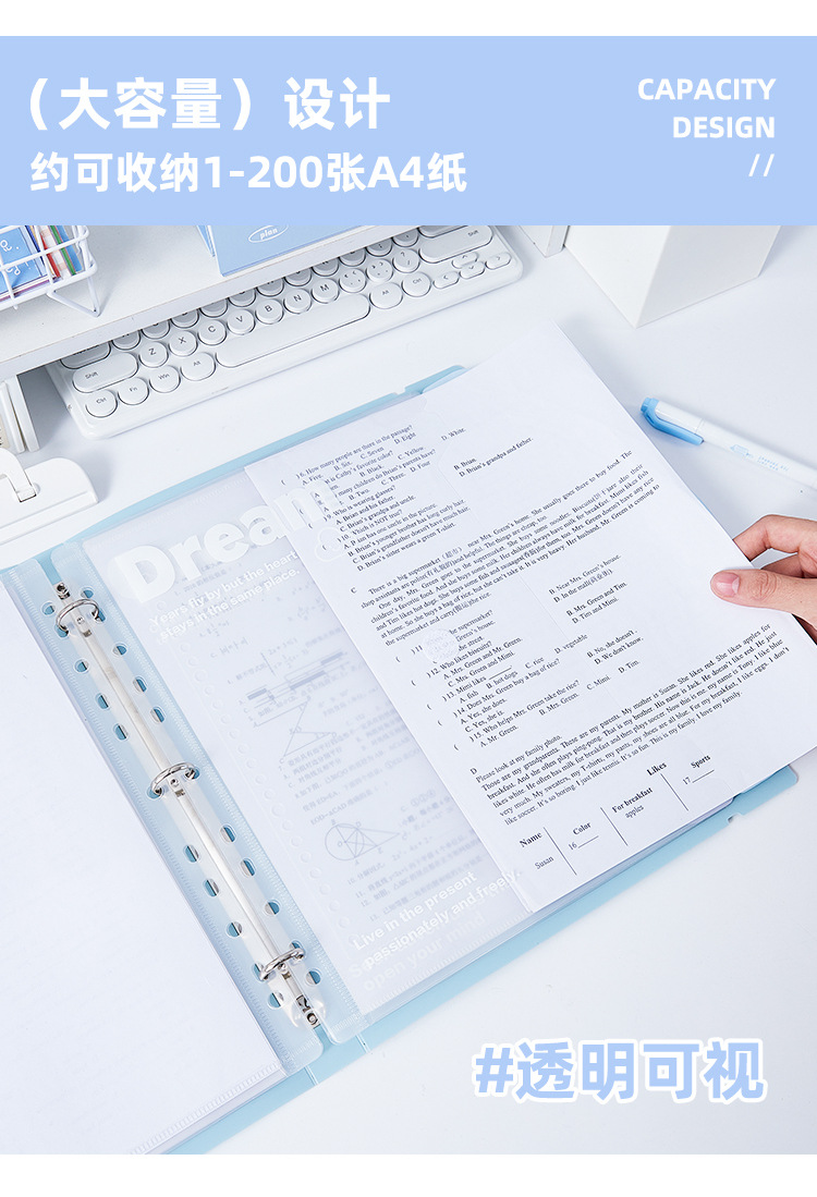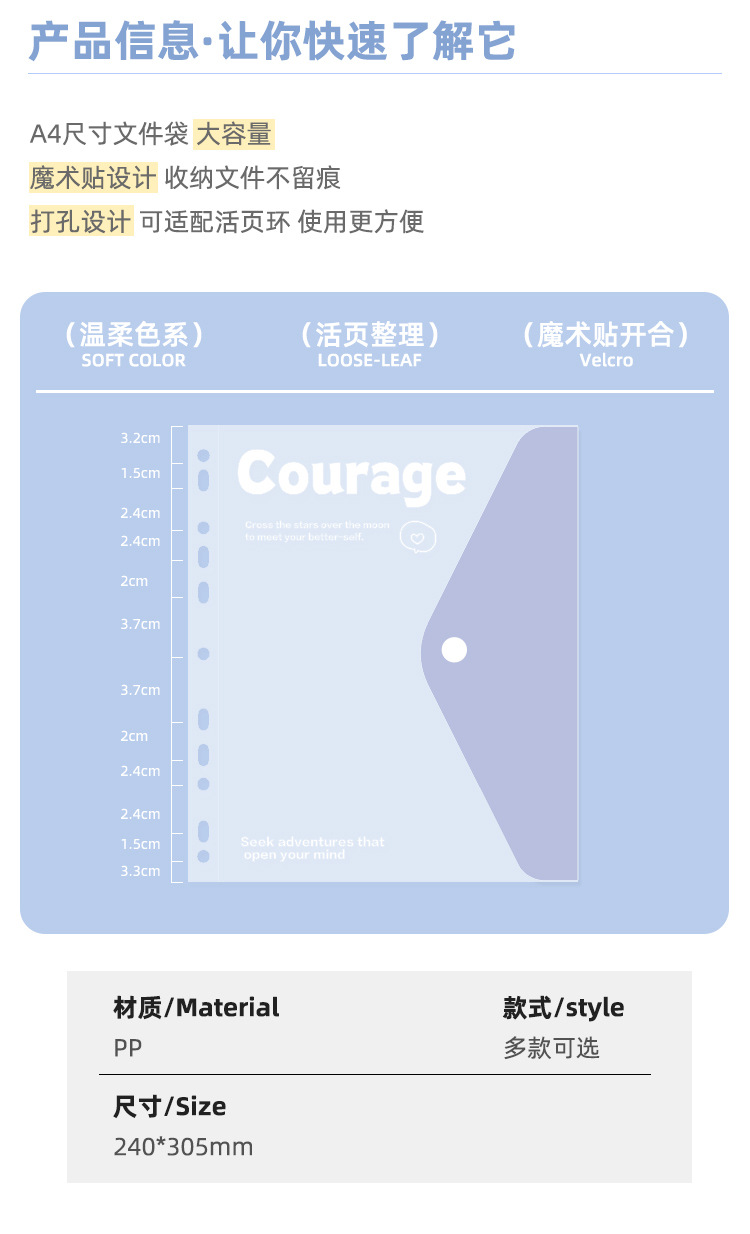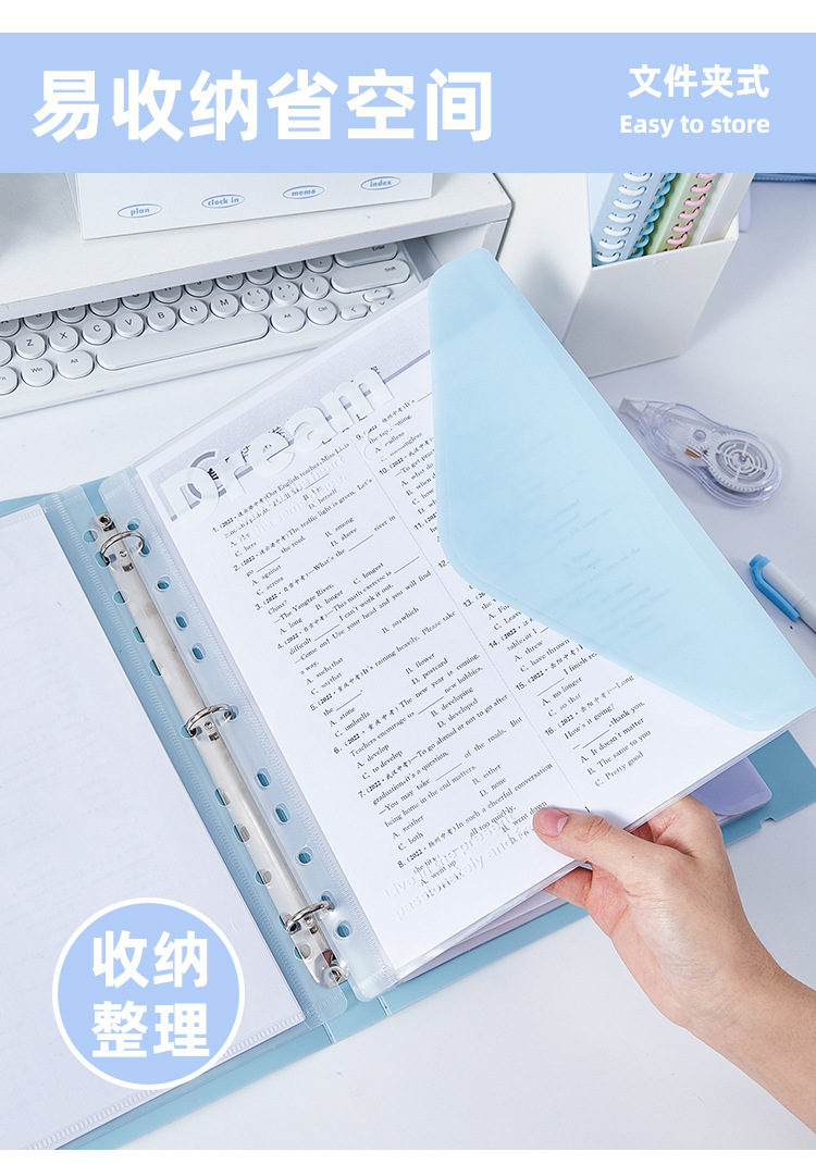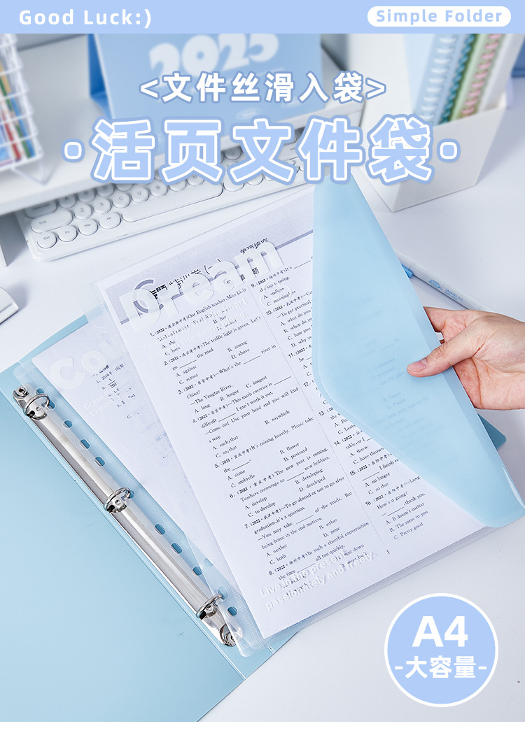 Pequeña bolsa de archivos A4 fresca, libro de datos de hojas sueltas, bolsa de almacenamiento de papel de prueba para estudiantes, libro de almacenamiento de oficina de estilo ins de alto valor