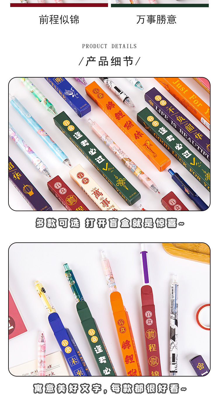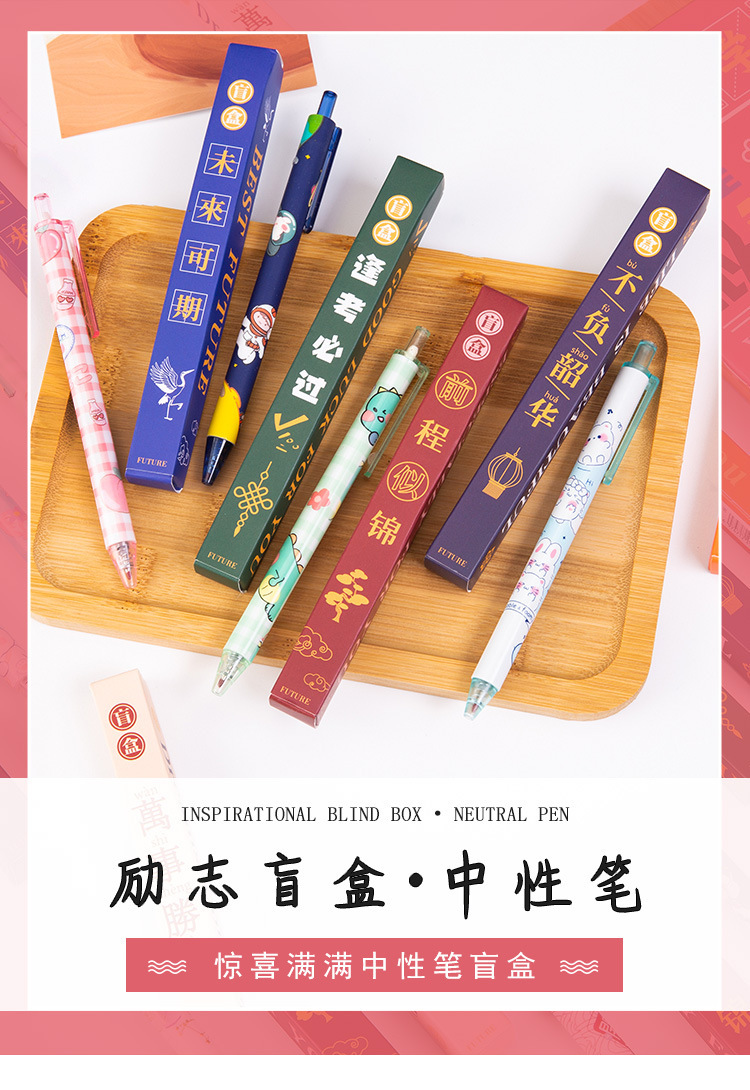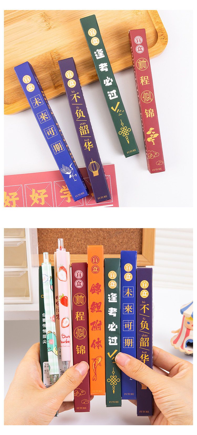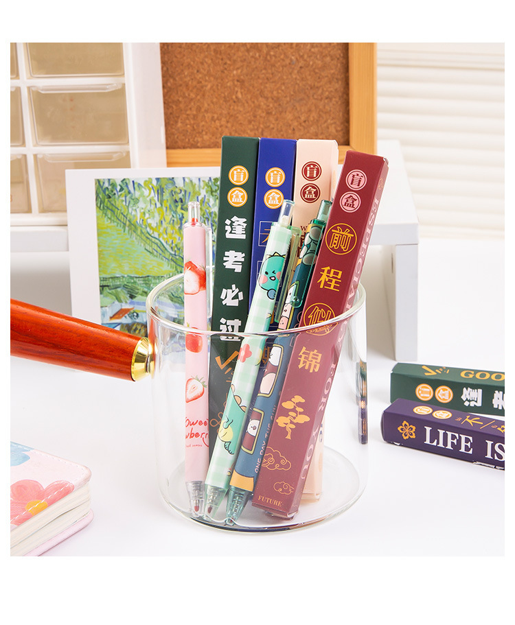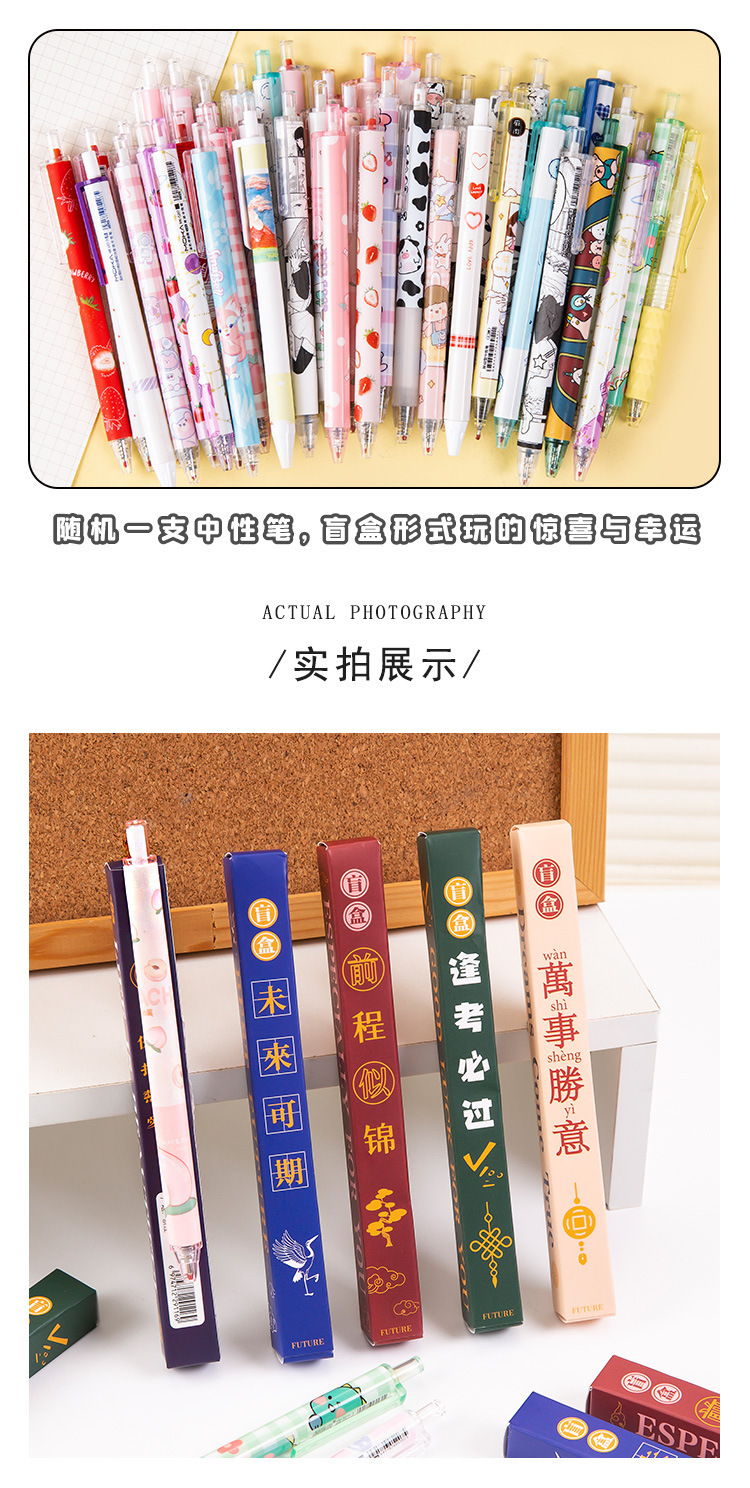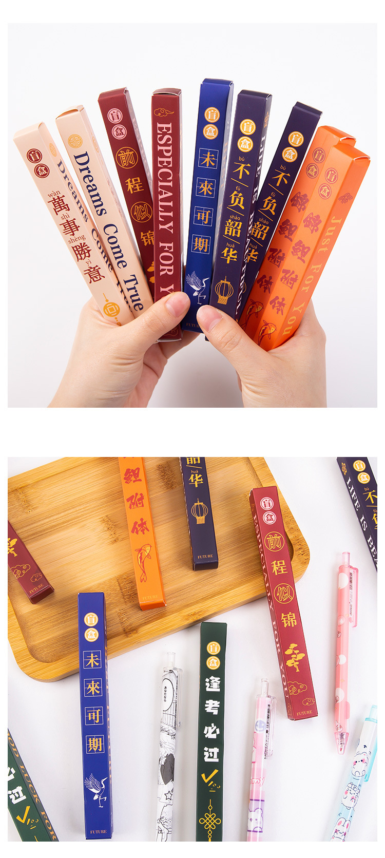 Caja ciega pluma de dibujos animados de empuje pluma de gel neto rojo de alto aspecto estudiante de secado rápido negro agua pluma Premio regalo de cumpleaños