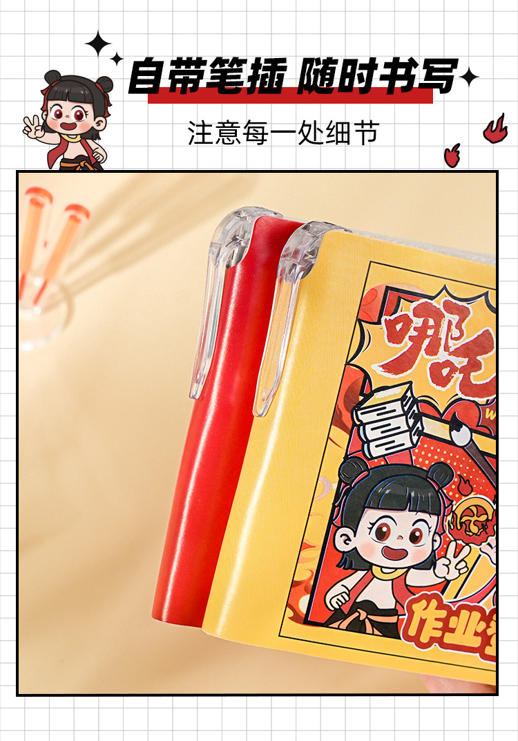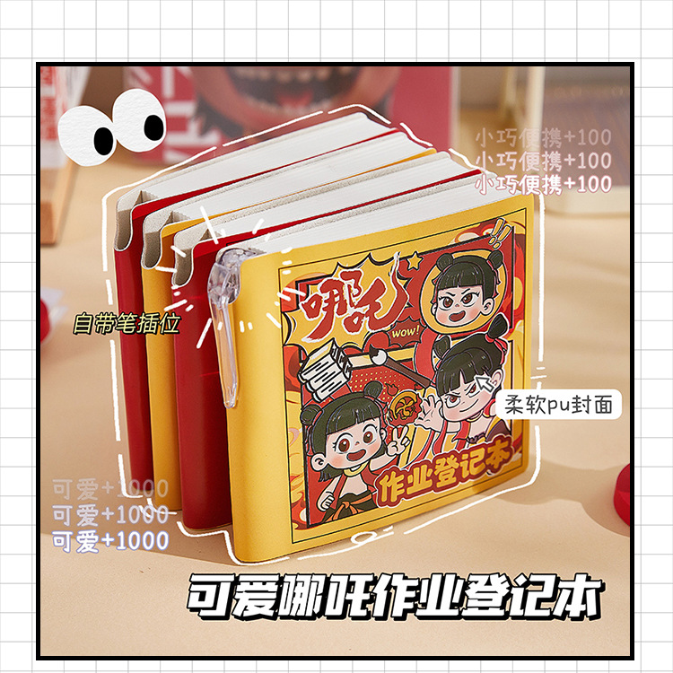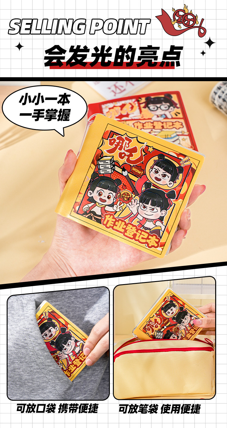Nuevo libro de registro de tareas de Nezha fácil de aprender, lindo cuaderno de gran capacidad, cuaderno para estudiantes, mini cuaderno portátil