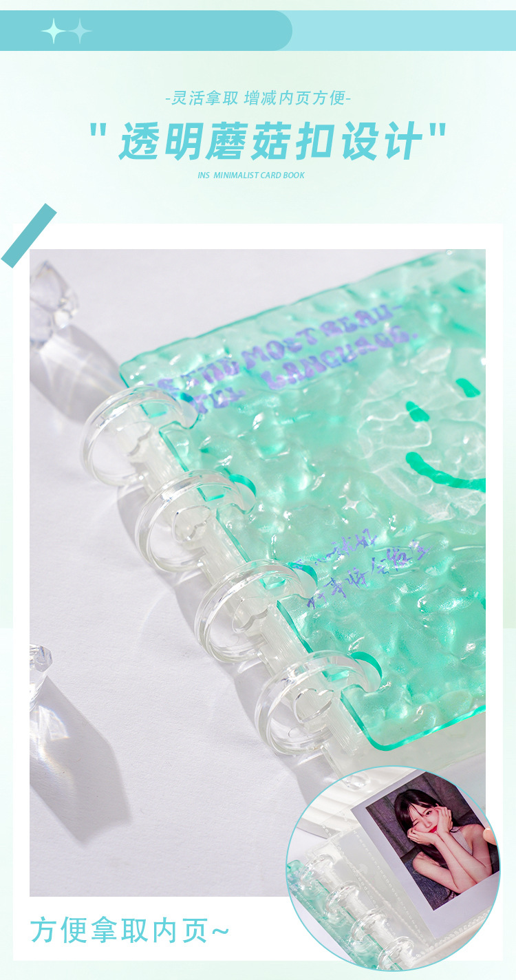 Gradiente de vitalidad, ondulación de agua, libro de tarjetas de cuadrícula de un palacio, color transparente de alto valor, mini botón de hongo fresco de 3 pulgadas