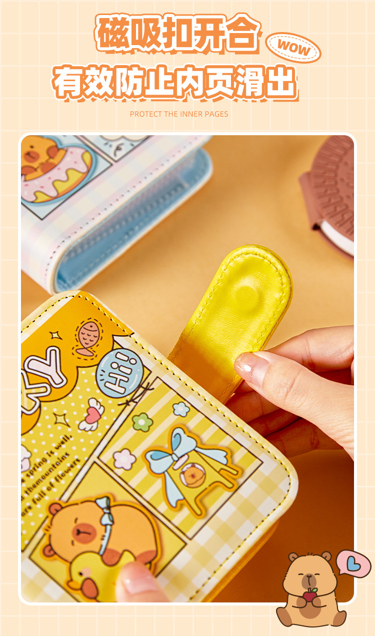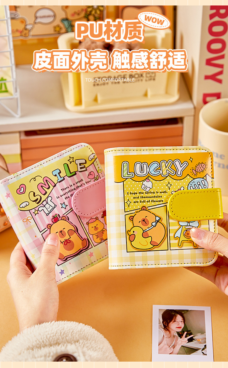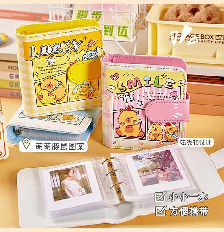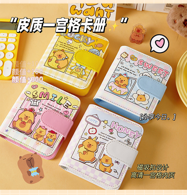 El nuevo libro de tarjetas de cuero Kapibala, hebilla magnética de alto valor, cuadrícula de un palacio, álbum de fotos pequeño portátil, libro de almacenamiento de tarjetas pequeñas Idol