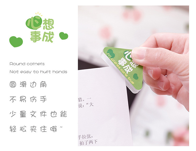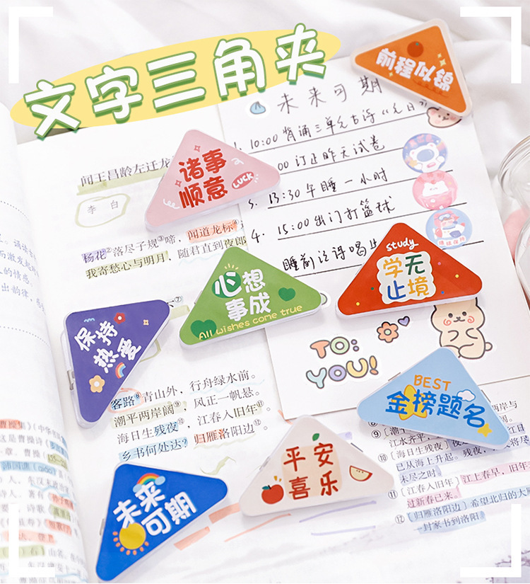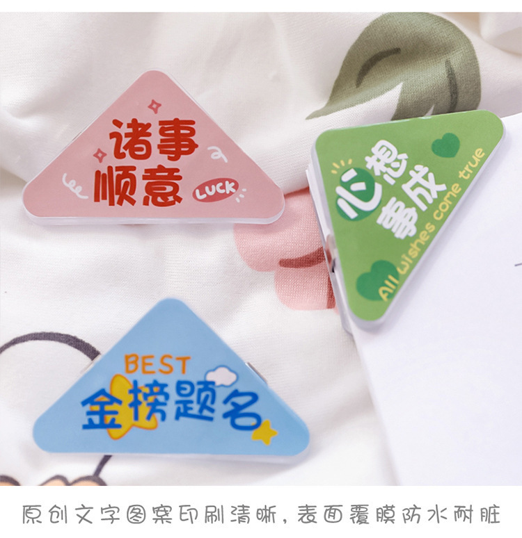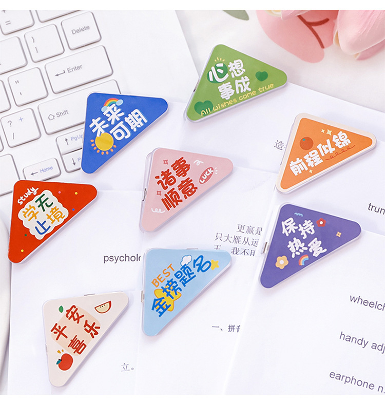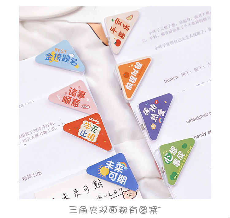Clip de libro de triángulo de texto inspirador creativo clip de libro fijo Clip de esquina lateral de libro clip de papel de prueba almacenamiento y archivo de organización clip de cola larga