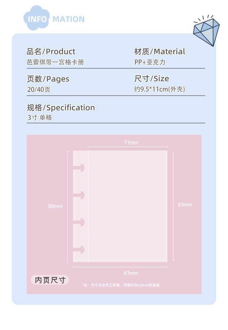 | Número de artículo | Álbum de tarjetas de acrílico con correa de ballet |