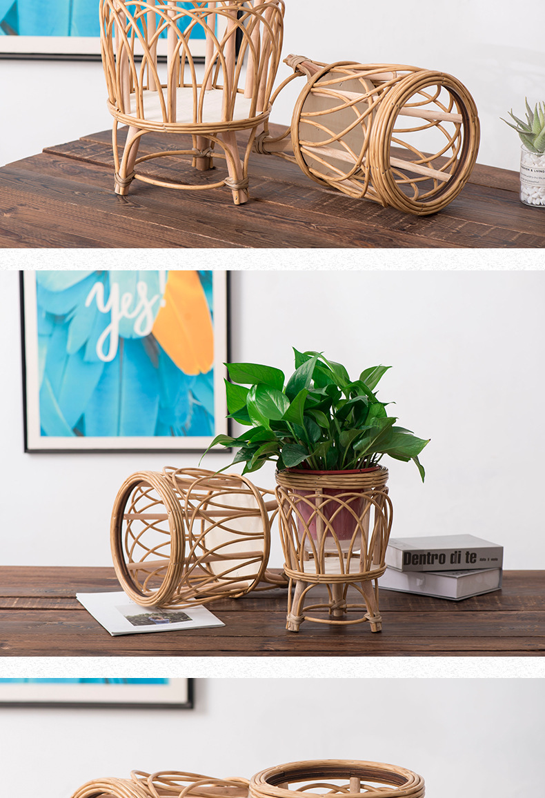 Pequeño pedido de estilo nórdico pastoral de viento de caña estante de maceta tipo estante de suelo para dibujar un gran descuento a medida