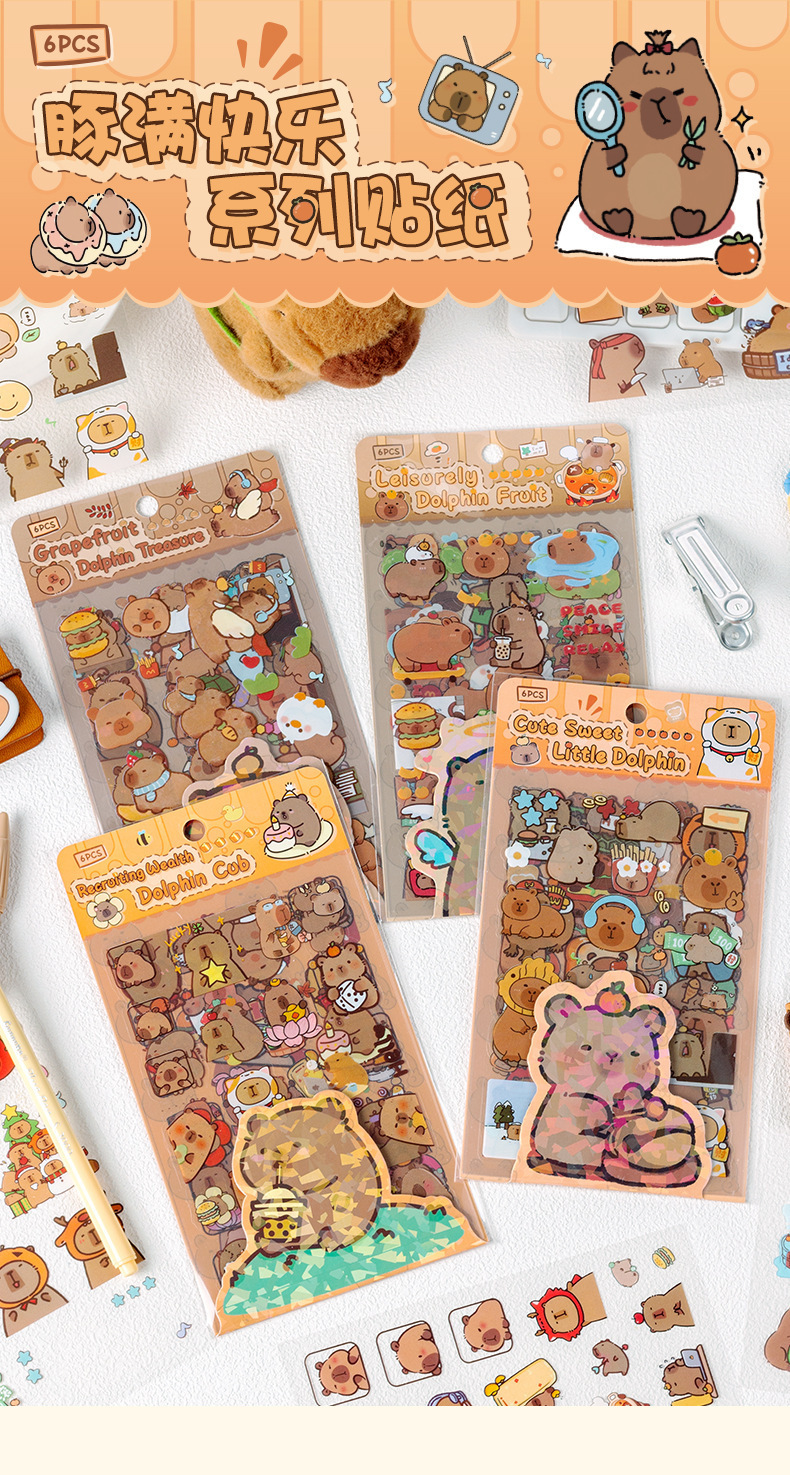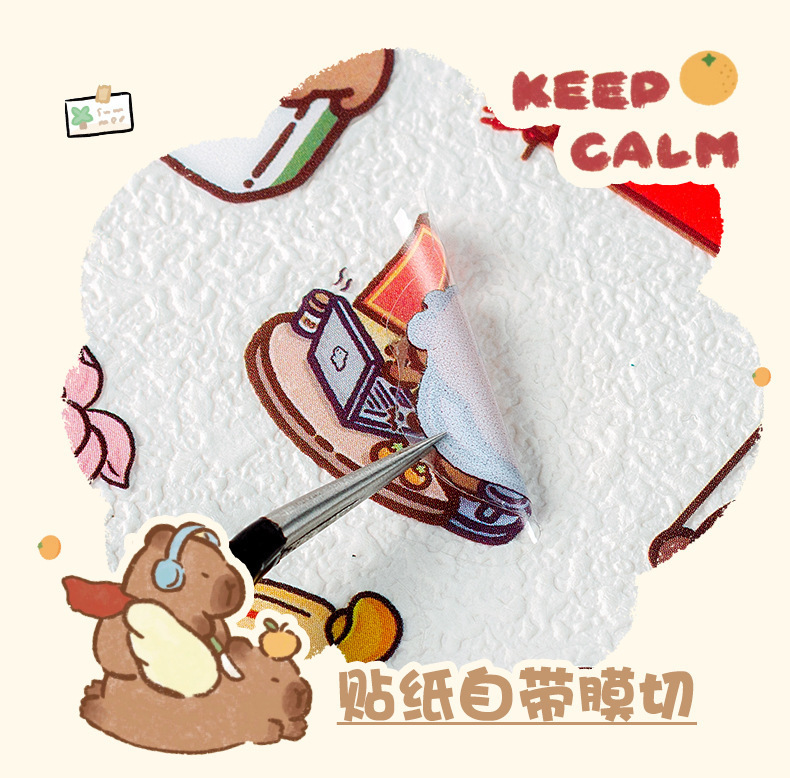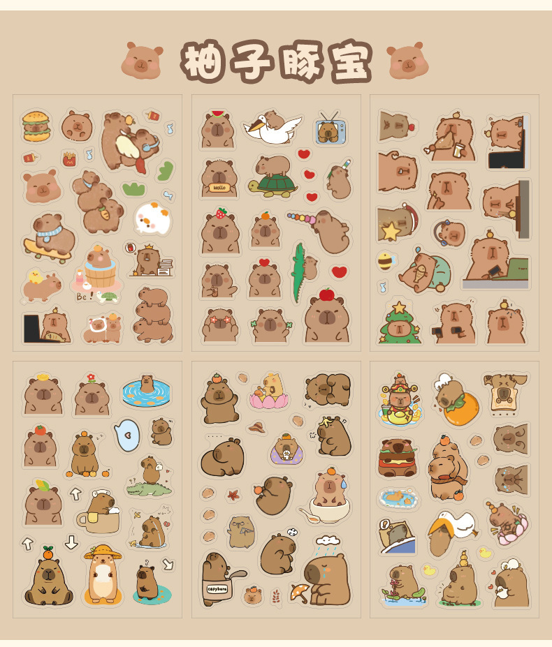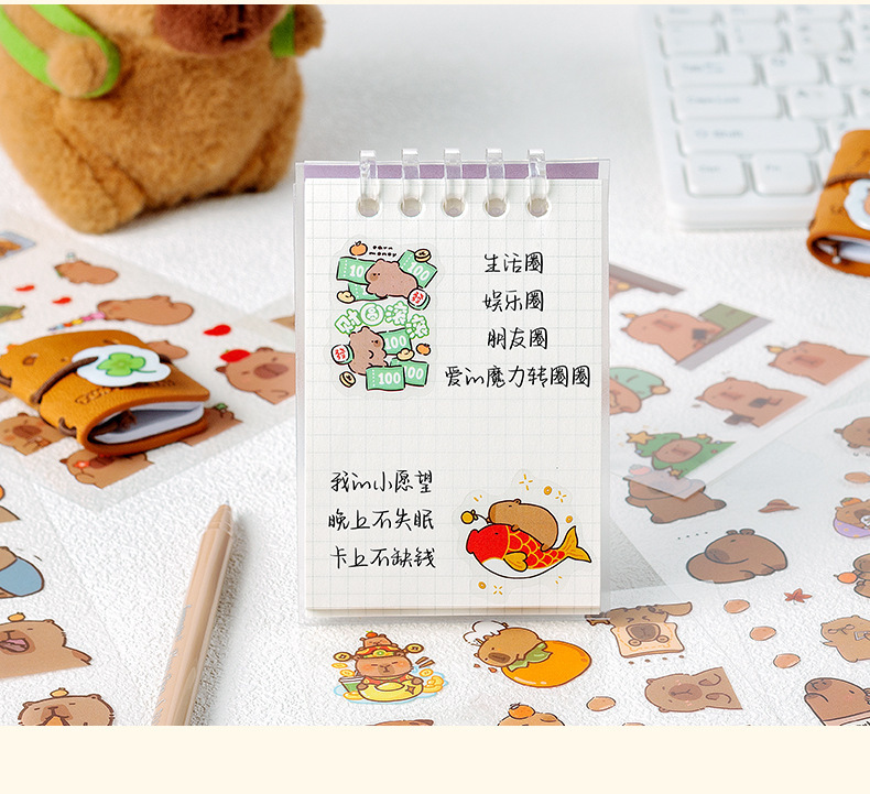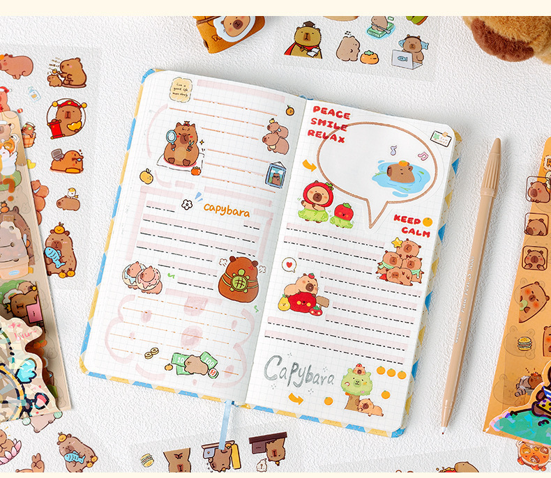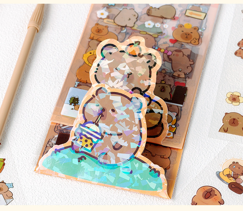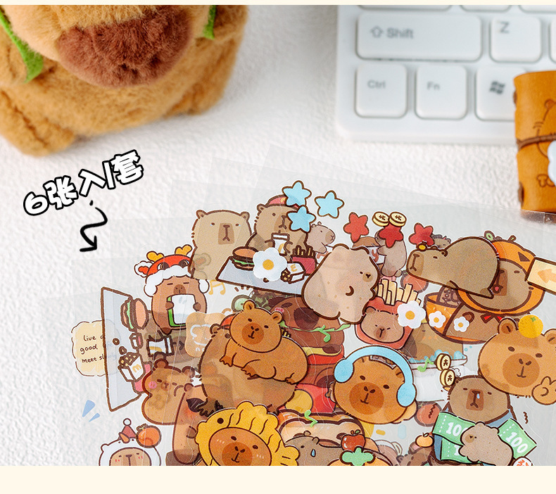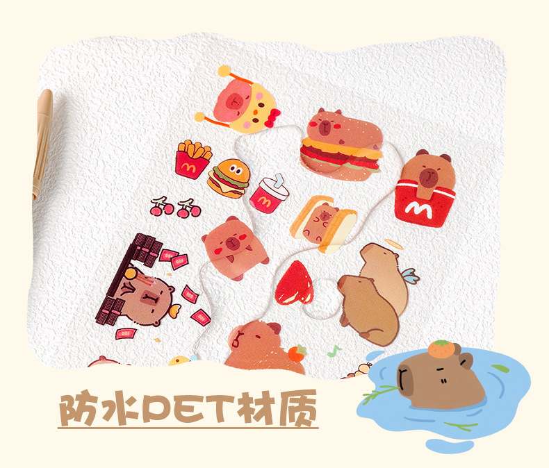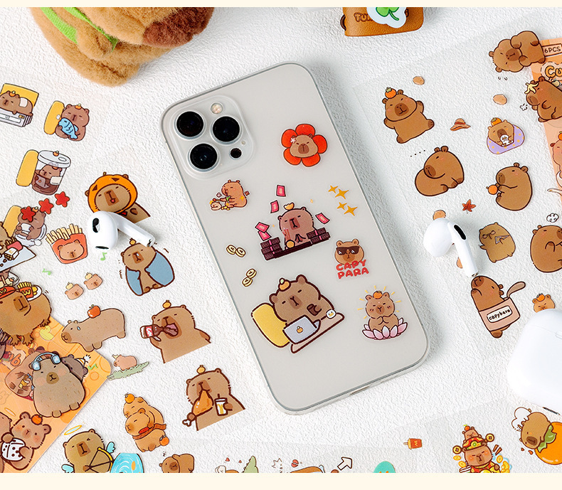 Kapibala pegatinas dibujos animados niños lindos niña mano tienda PET impermeable carcasa del teléfono móvil material de decoración pegatinas de bricolaje