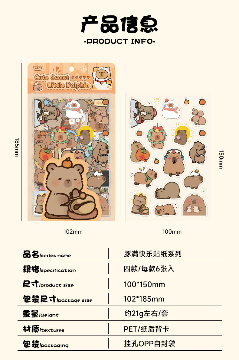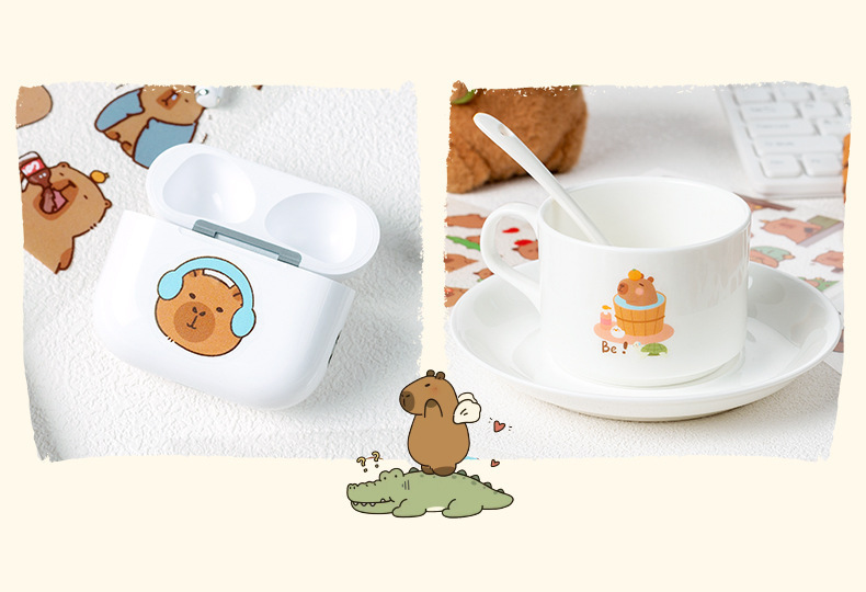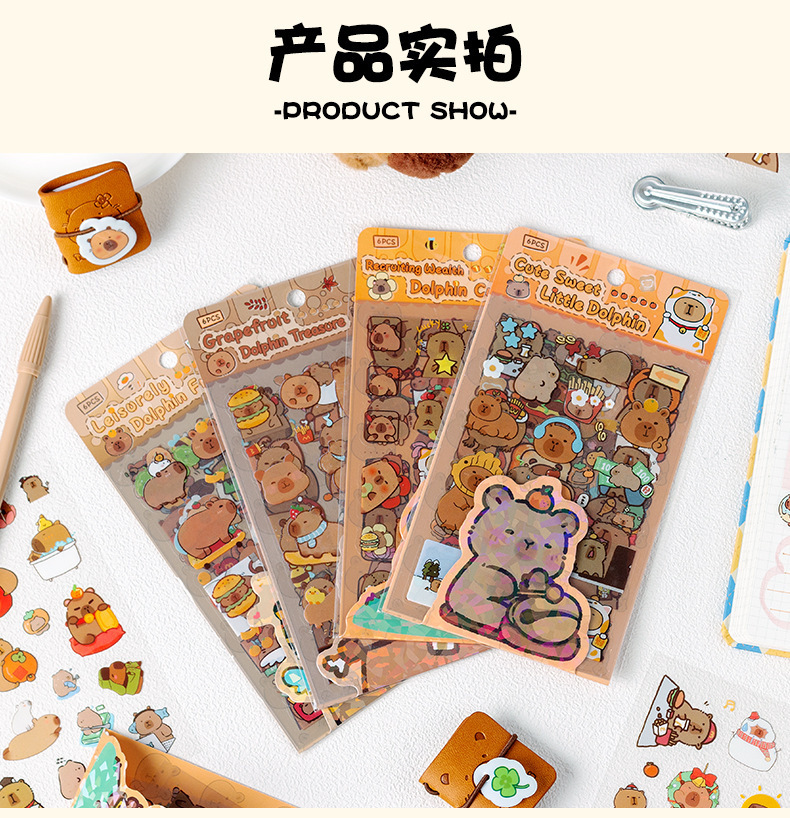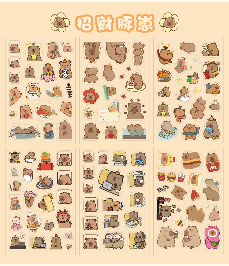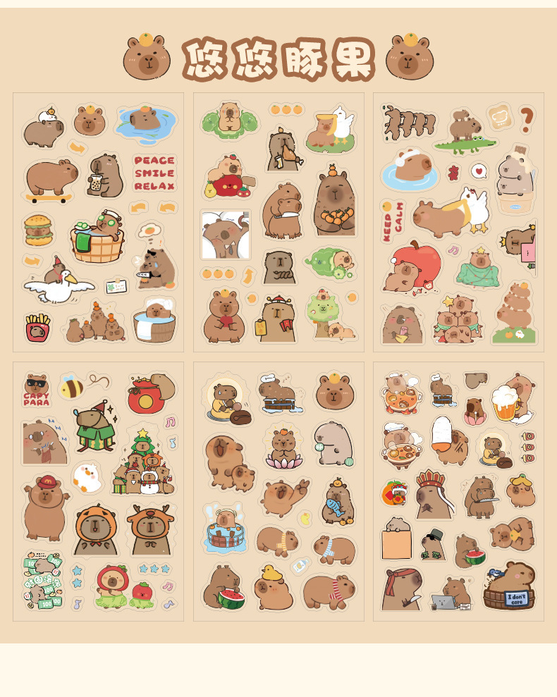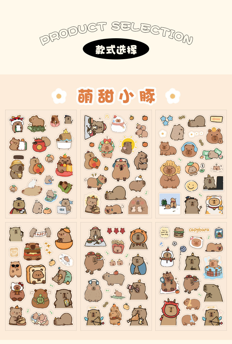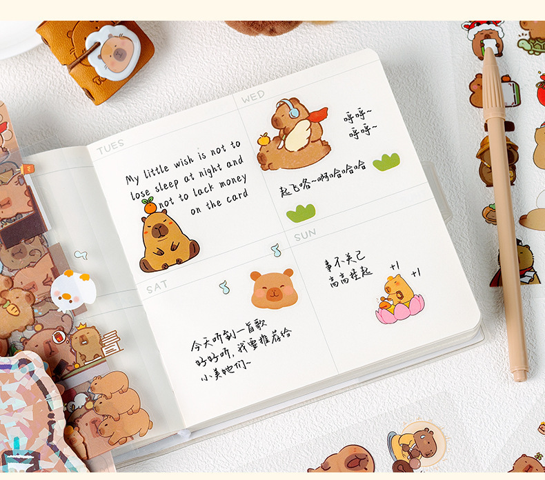 Kapibala pegatinas dibujos animados niños lindos niña mano tienda PET impermeable carcasa del teléfono móvil material de decoración pegatinas de bricolaje