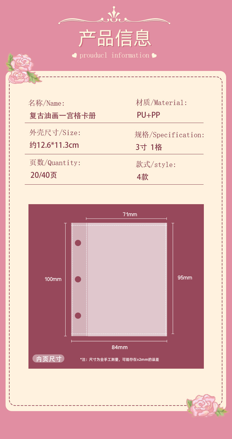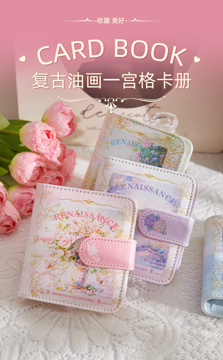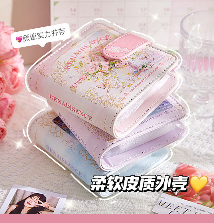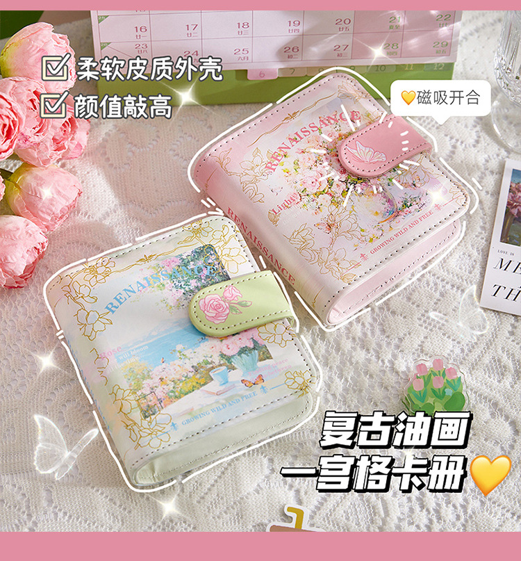 Pintura al óleo retro Cuero Primer palacio Libro de tarjetas de cuadrícula Álbum de 3 pulgadas Polaroid Star Tarjeta pequeña Álbum de almacenamiento de fotos Álbum conmemorativo