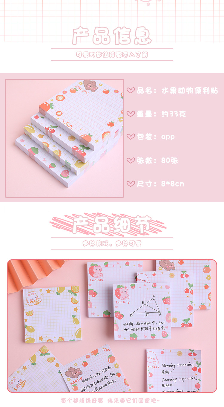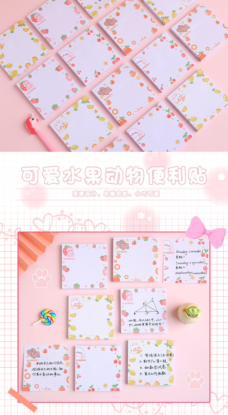 Cute Post-it Fruit Bear Rabbit Student Notes Mensaje Papel de nota Se puede pegar Notas Notas Notas N Publicaciones
