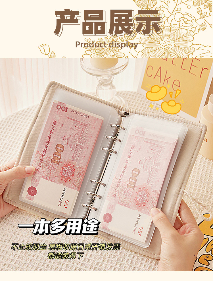 Versión coreana del libro de depósito de efectivo, bolsa de depósito de gestión financiera familiar de gran capacidad, carpeta de almacenamiento de facturas desmontable de hojas sueltas para niñas